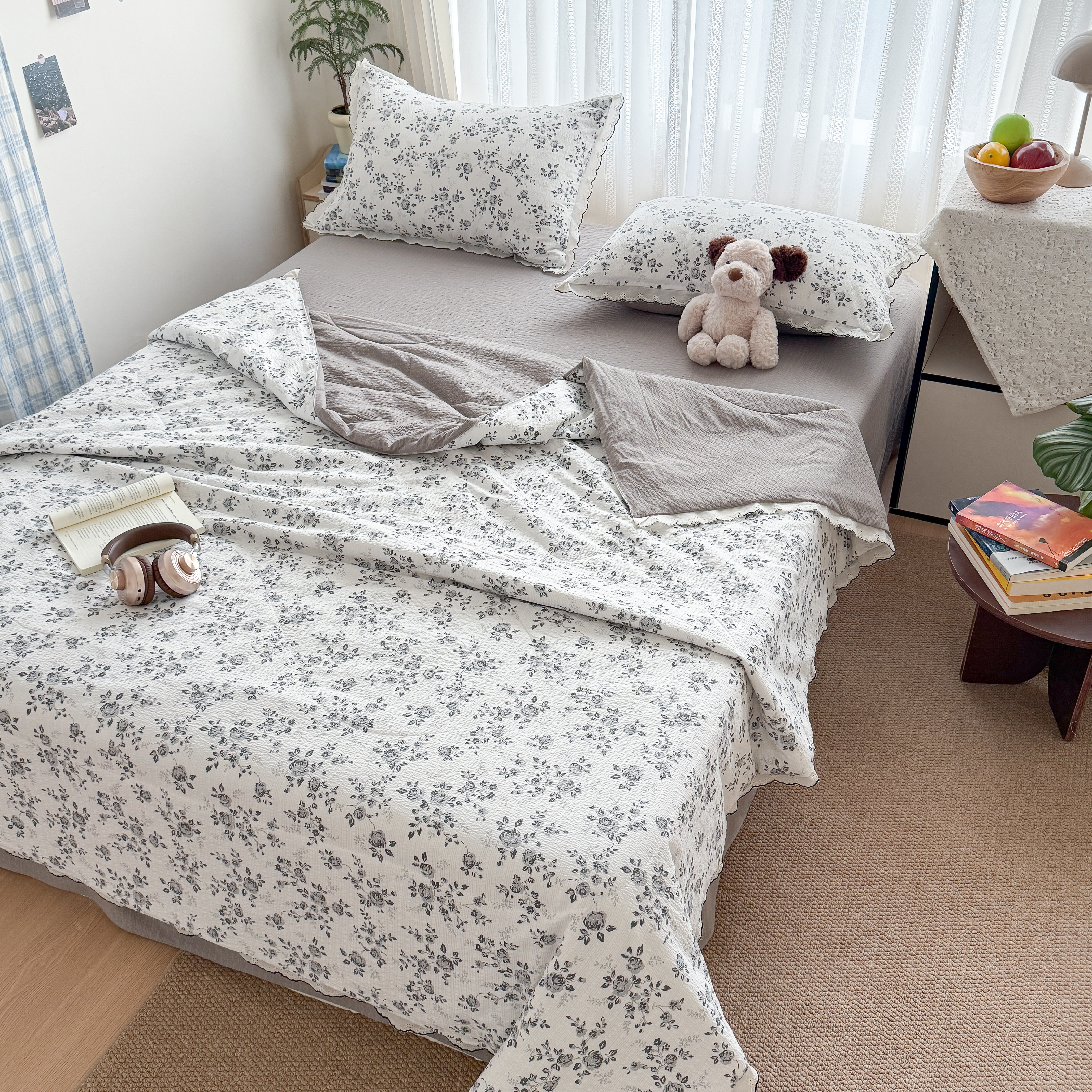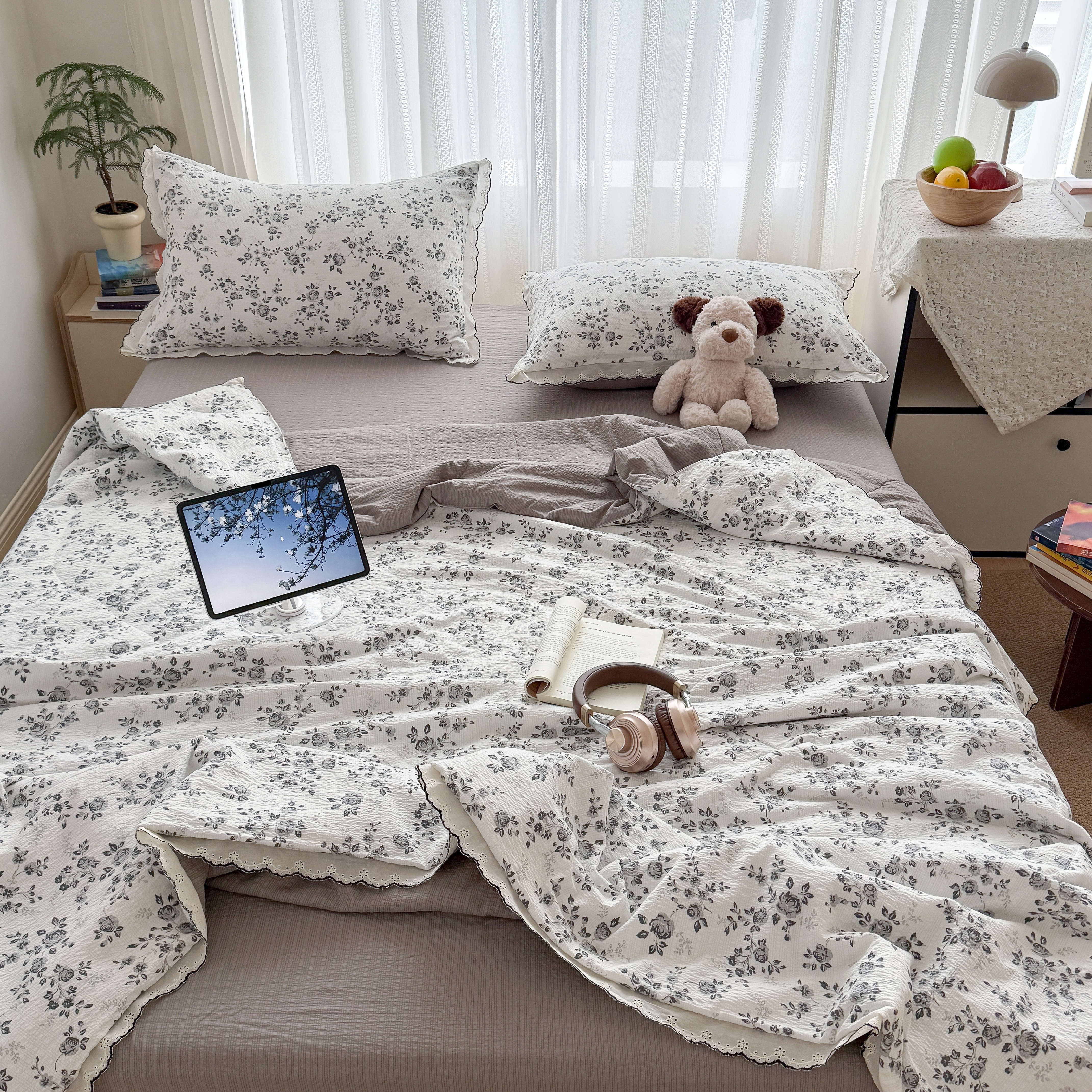 (总)欧尚 2026新款花边云感棉夏被床盖四件套,春辰绿,朵真,绯常,利莲,密朵,南朵,晴川木也