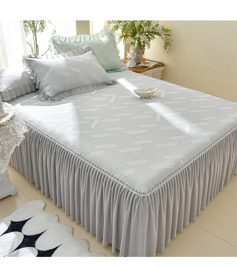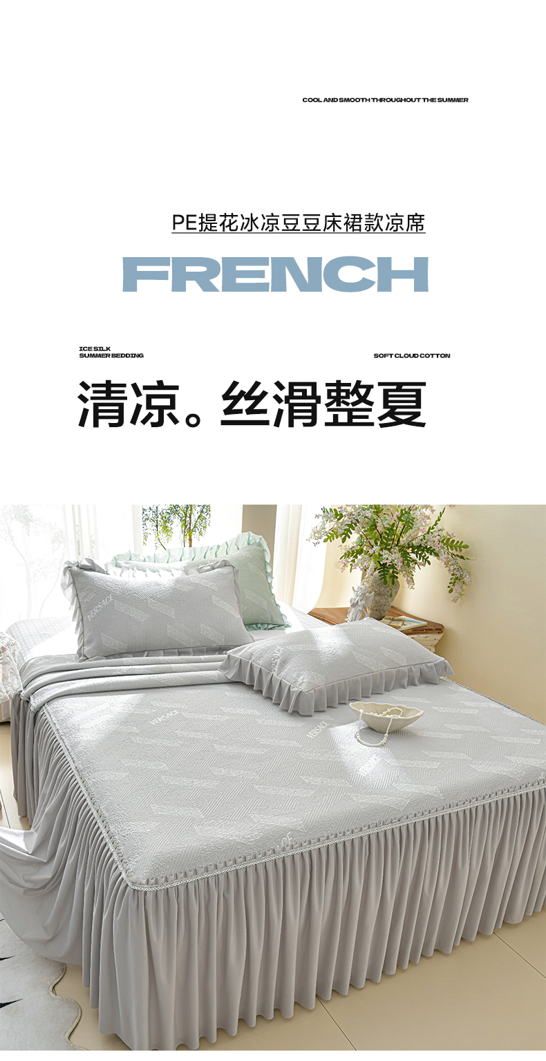 绘萱家居 2026新款PE提花冰凉豆豆床裙款凉席席子凉席 帝塞纳-灰