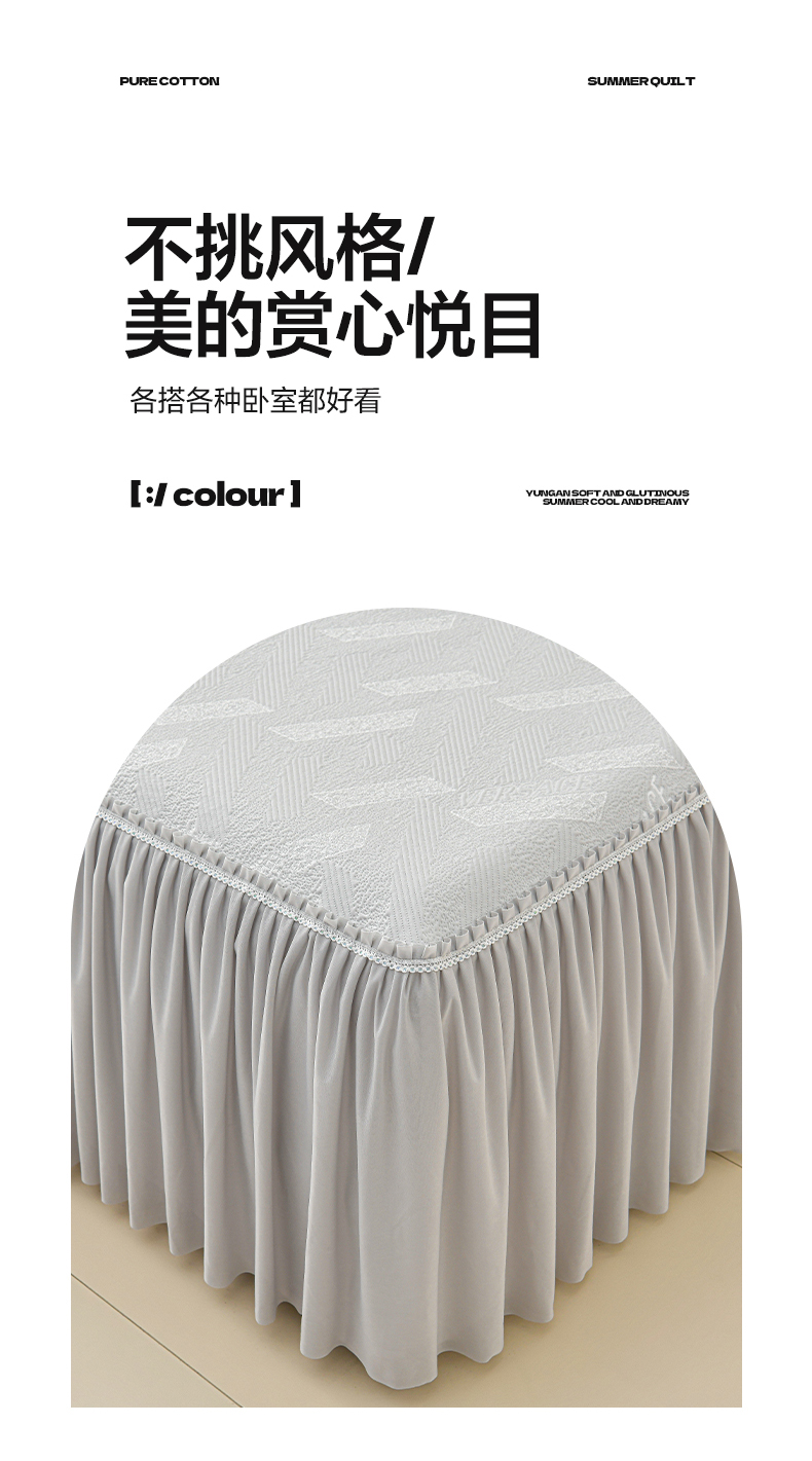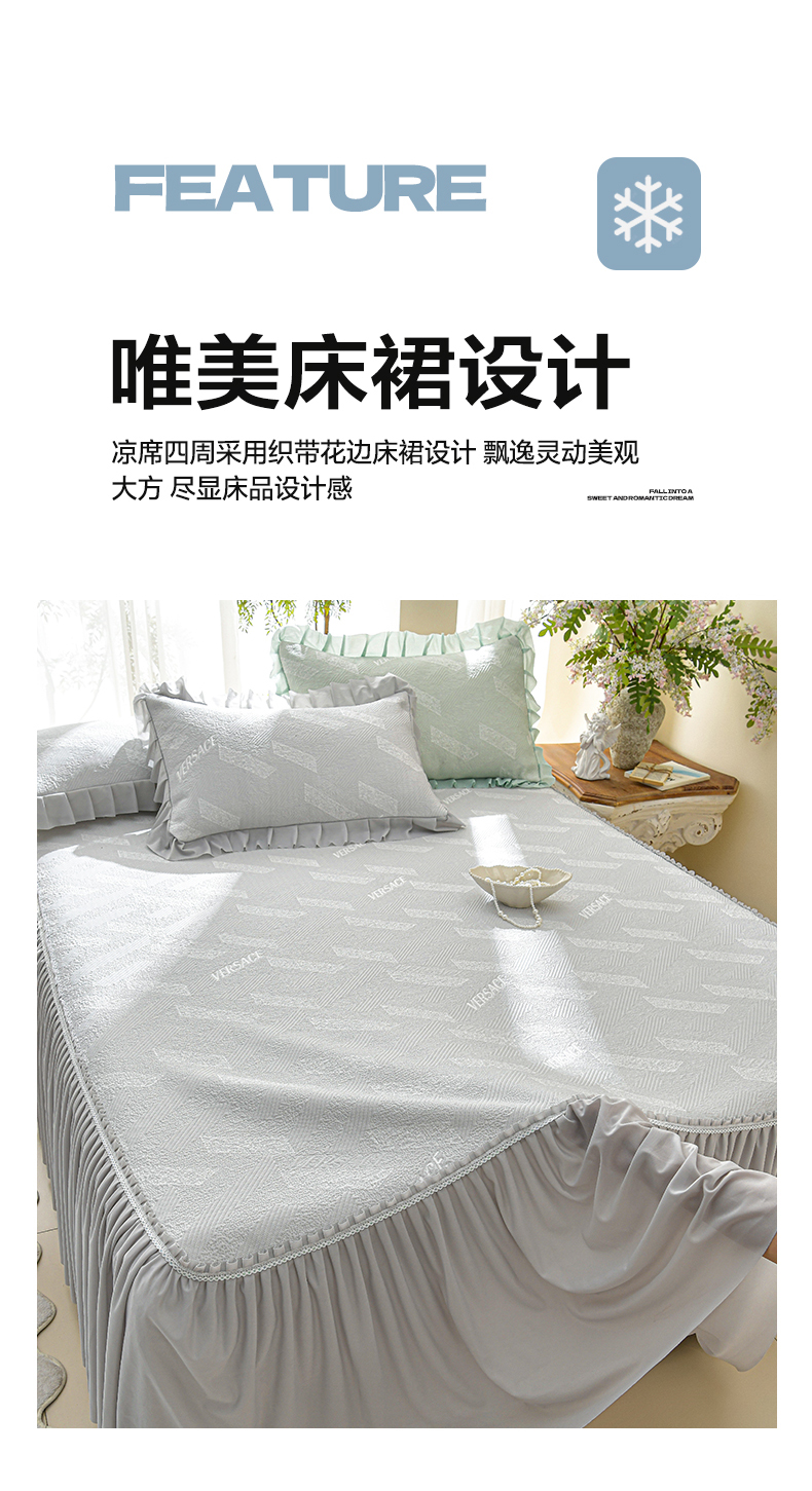 商品名称:绘萱家居 2026新款PE提花冰凉豆豆床裙款凉席席子凉席 帝塞纳-灰