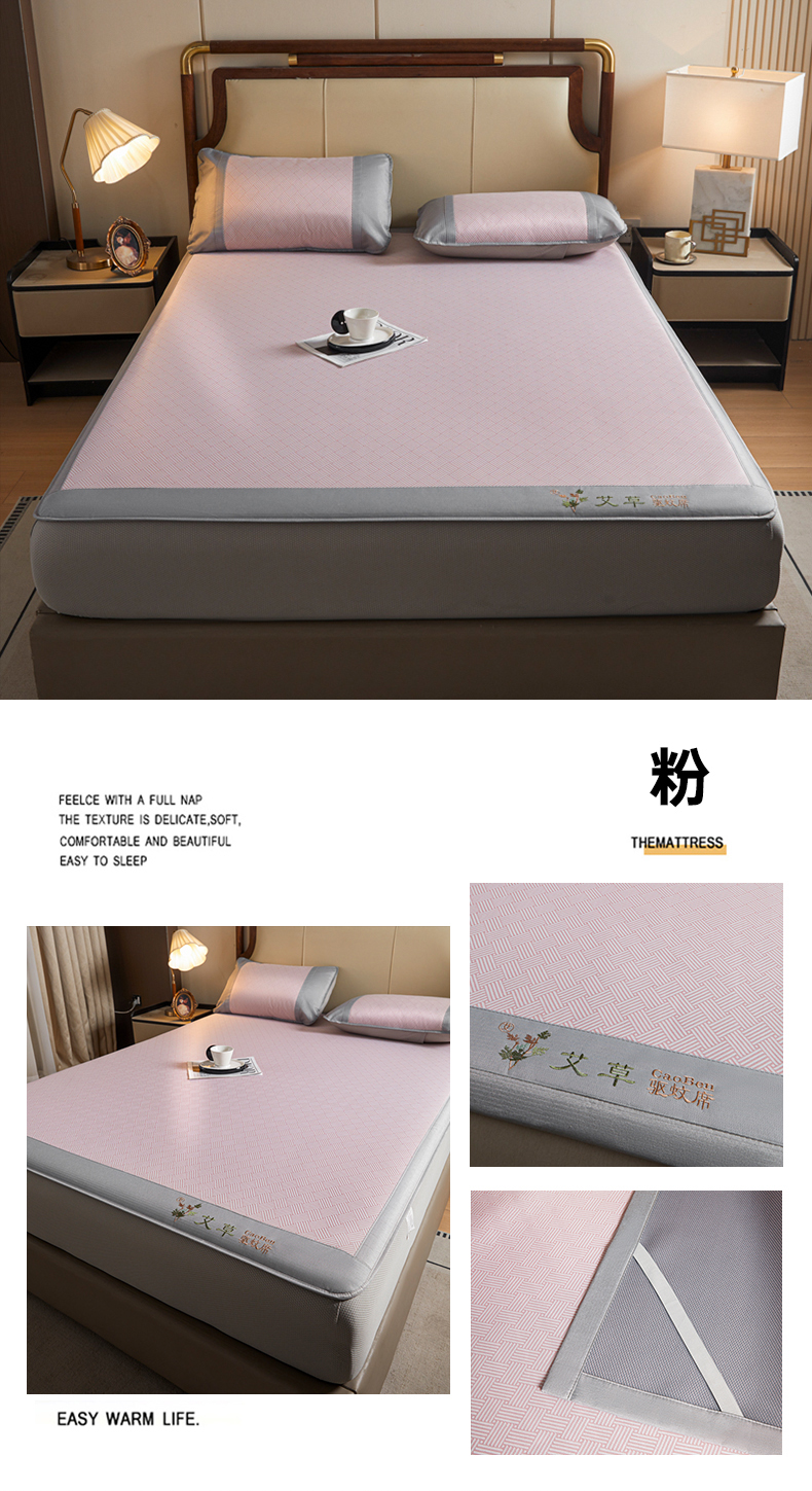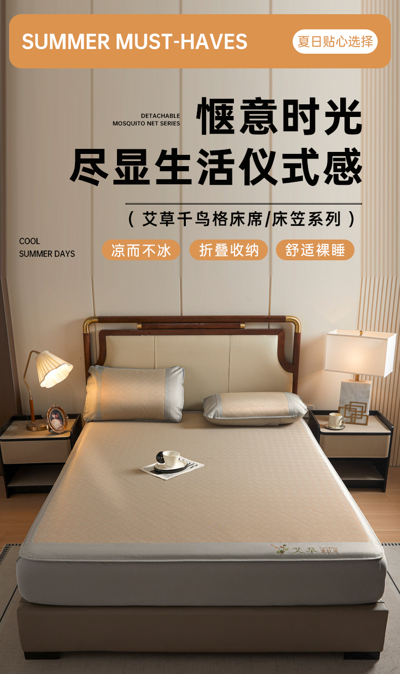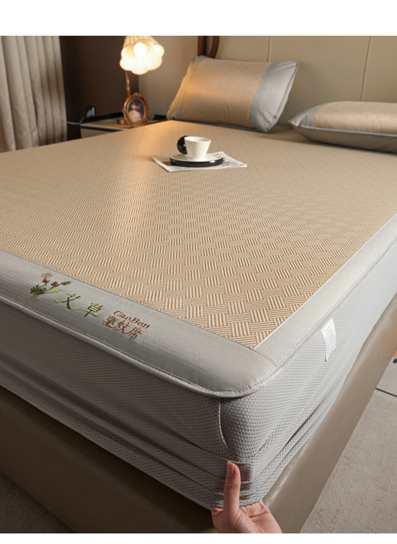• 91家纺网 家纺一手货源 找家纺 航途席业 2026新款刺绣可水洗碳光冰丝席宽包边无纺布冰丝席艾香系列 艾香冰丝床笠饼干-咖
