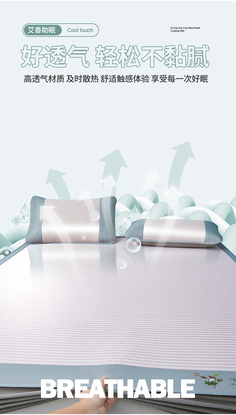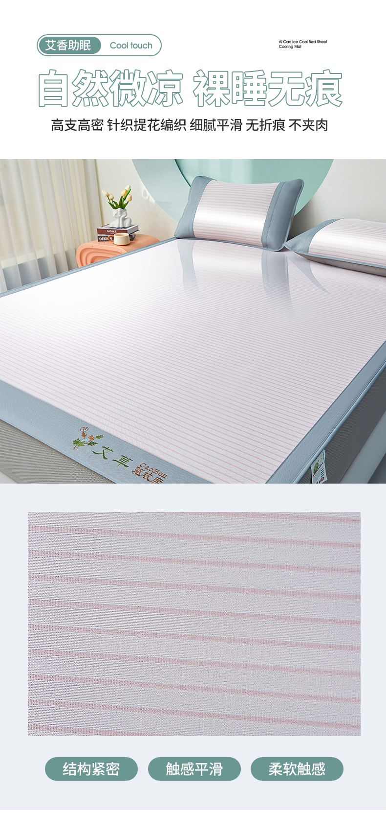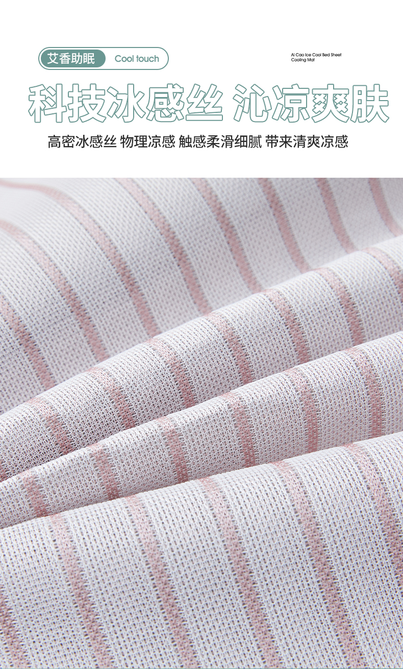 • 91家纺网 家纺一手货源 找家纺 航途席业 2026新款刺绣可水洗碳光冰丝席宽包边无纺布冰丝席艾香系列 艾香条纹床笠款树莓粉