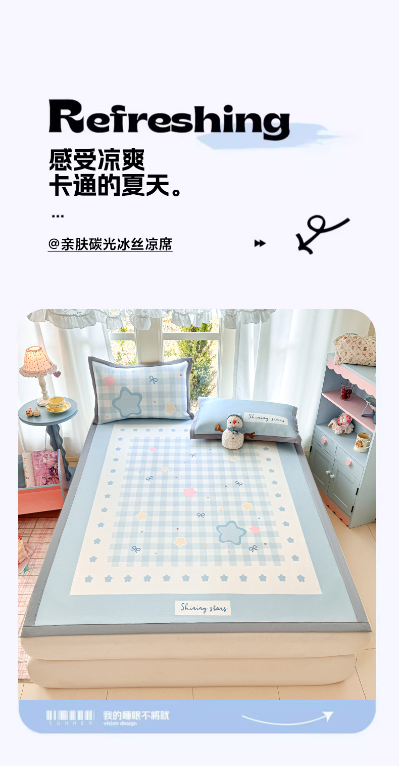 商品名称:川悦生活 2026新款碳光冰丝大阪卡通凉席 夏日甜星