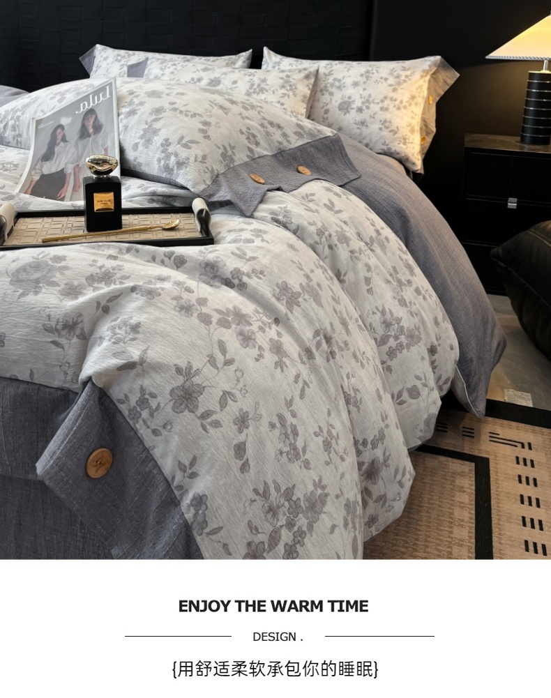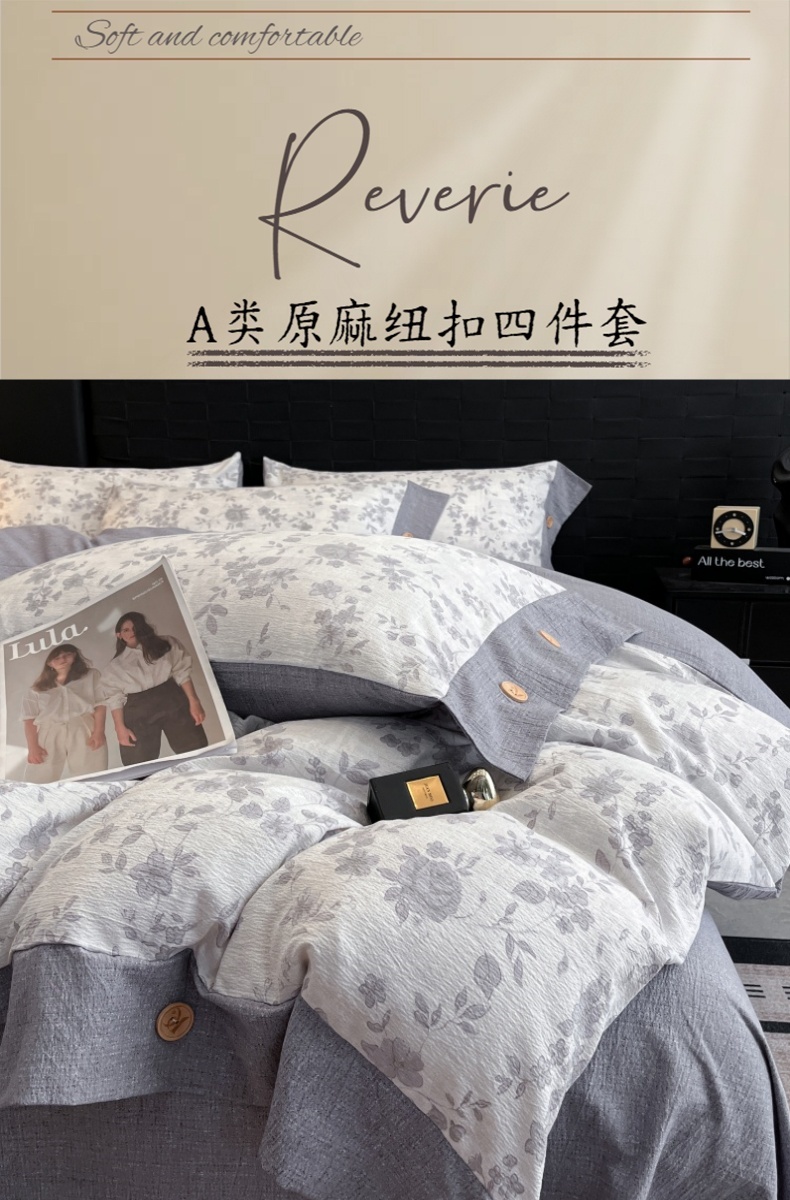 当前位置: 91家纺网 > 商品网购 > 床品套件 > 四件套 > 其它四件套 > 梦舒羽 2026春夏新款A类原麻纽扣四件套加厚被套床单宿舍双人床仿亚麻套件-最新款 花之舞