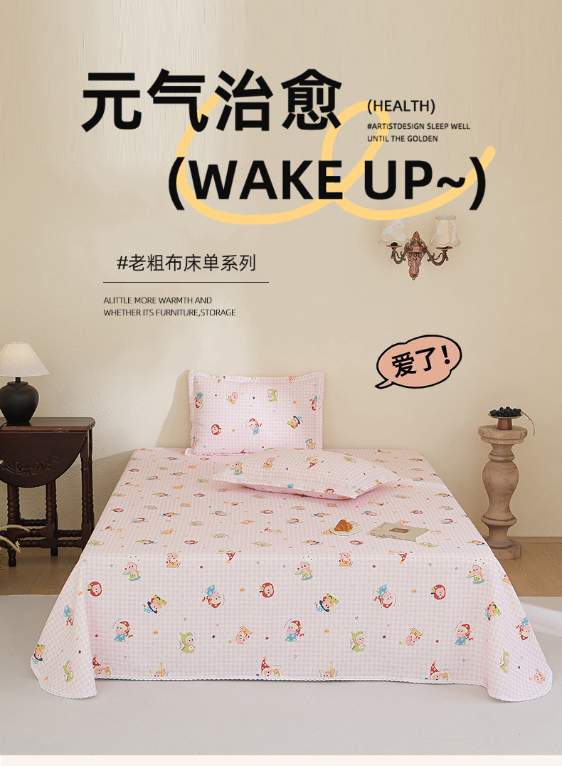 (总)慕绸家纺(原萌宝老粗布厂家) 2026新款原棉细纱工艺款亲肤柔软老粗布床单凉席席子春夏热门款-直播热卖圆角花边款,半夏,豹纹喵,大麦,多巴胺,红苹果乐园,花间熊猫,花漫里,花语萌宠,简约派,快乐星球,快乐鸭,浪漫花语,恋语,铃兰结,绿意,美式腊肠狗,面包小车,魔法星人,墨兰蝶,奶油大白,南瓜派,千禧马,秋日森林,甜橙日记,甜格派对,甜品小熊,晚安熊,香可儿,小花熊,尤米,紫鸢,KT蛋糕,组合