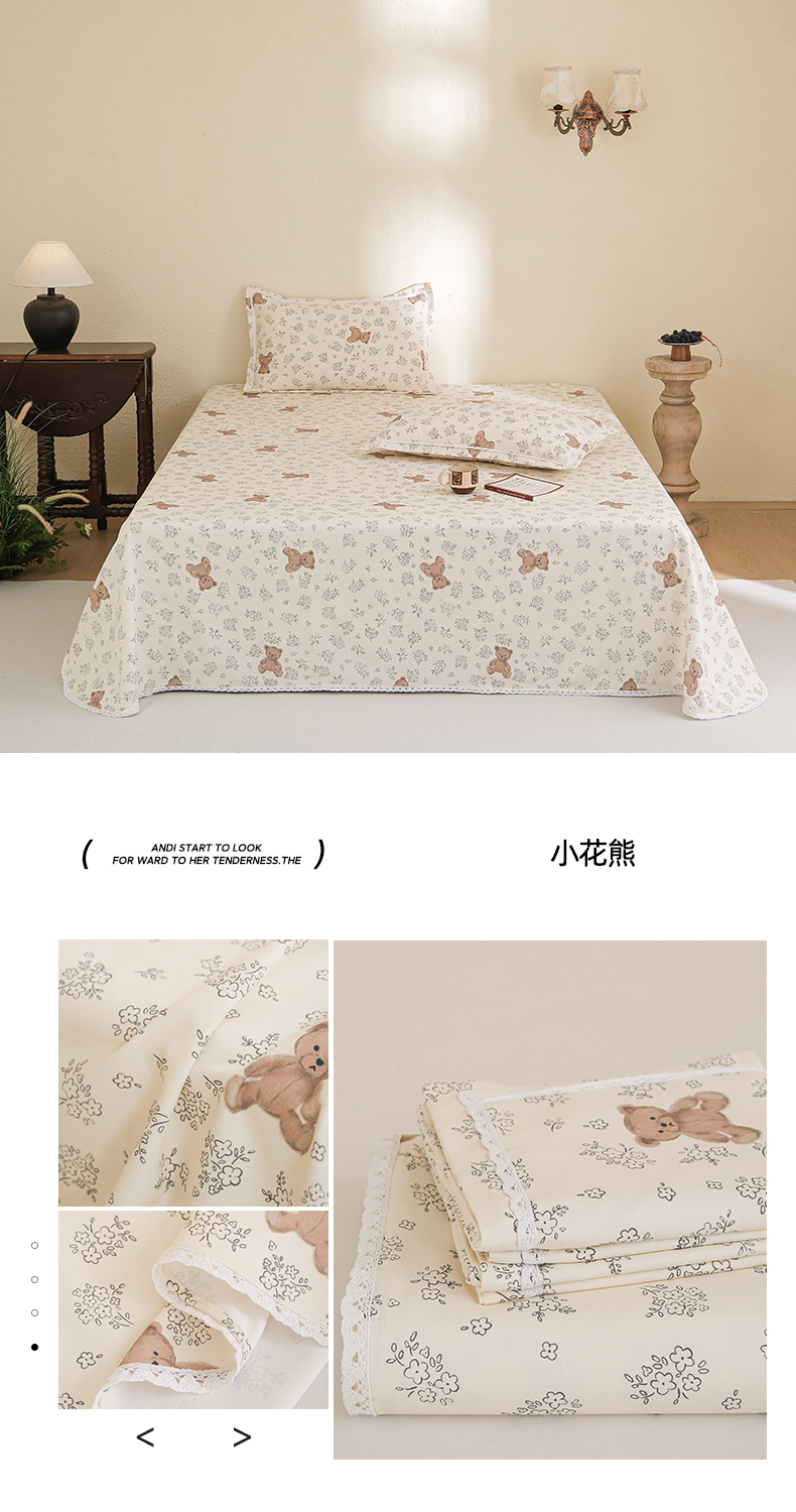 (总)萌宝老粗布2023纯棉印花老粗布床单凉席套件花边款三件套,摩登包包