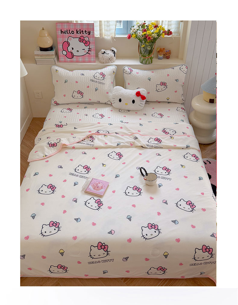 • 91家纺网 家纺一手货源 找家纺 桃子家居 2026新款A类三丽鸥高品质可组合凉感丝乳胶席牛奶丝针织棉软糯夏被四件套 三丽鸥夏凉-甜甜KT
