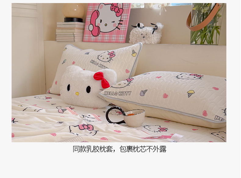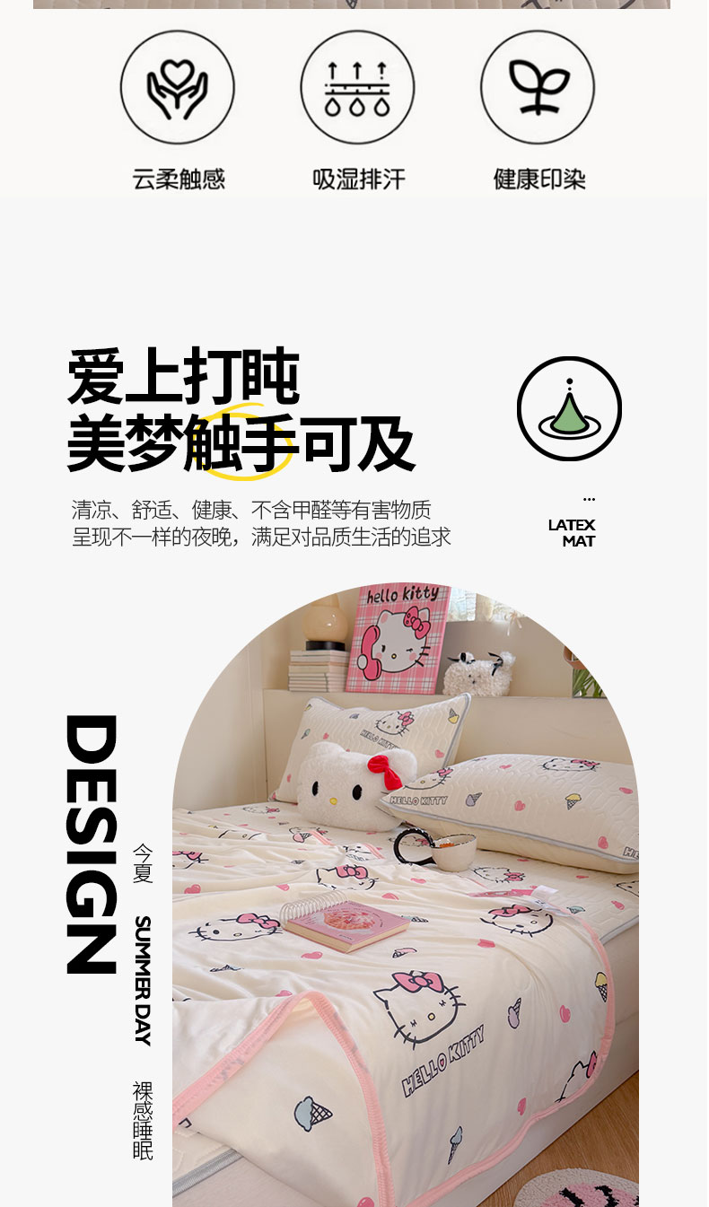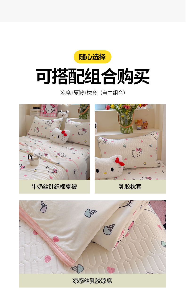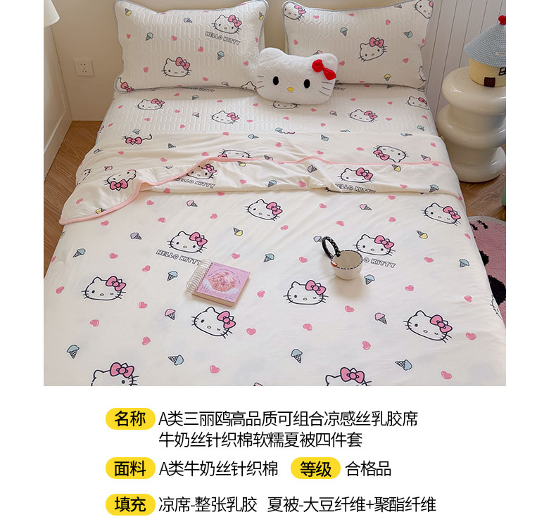 桃子家居 2026新款A类三丽鸥高品质可组合凉感丝乳胶席牛奶丝针织棉软糯夏被四件套 三丽鸥夏凉-甜甜KT
