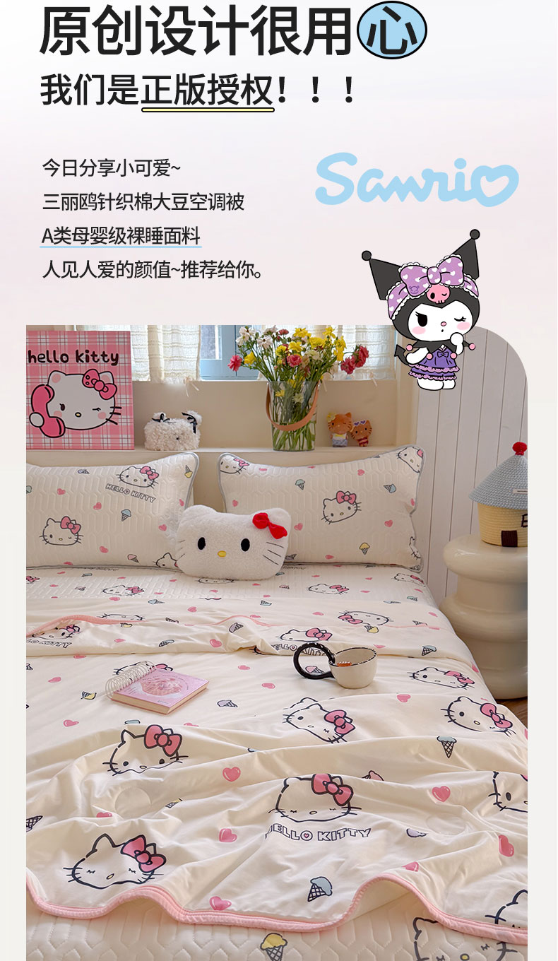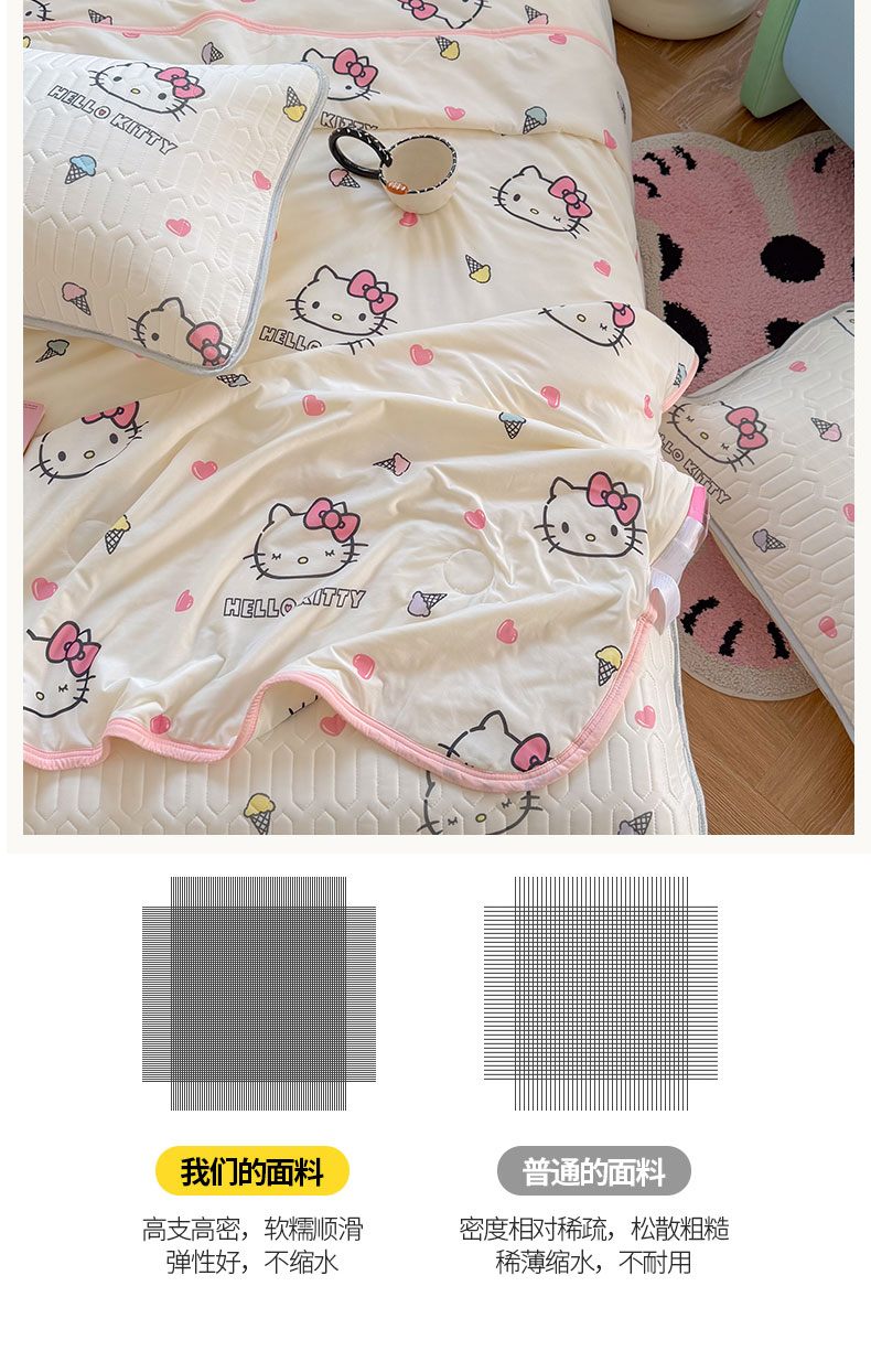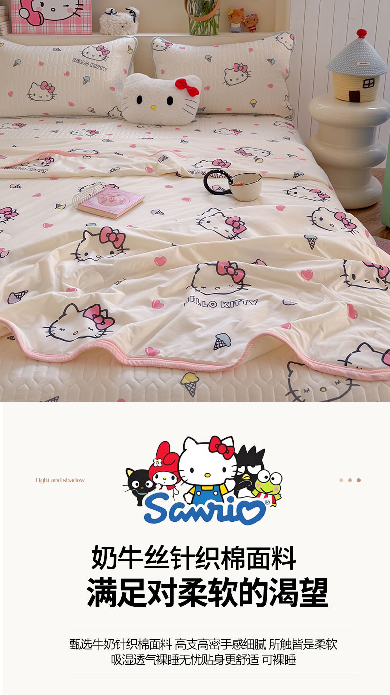 当前位置: 91家纺网 > 商品网购 > 被子 > 夏被 > 桃子家居 2026新款A类三丽鸥高品质可组合凉感丝乳胶席牛奶丝针织棉软糯夏被四件套 三丽鸥夏凉-甜甜KT