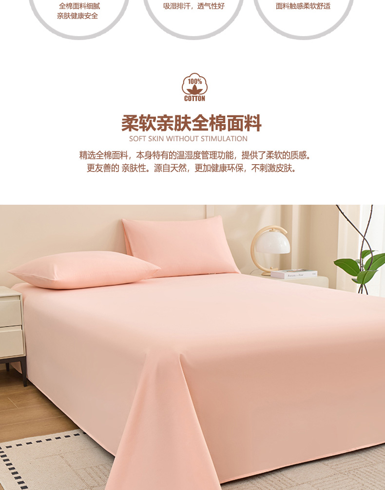 (总)居美良品 2026新款新疆长绒棉100%全棉纯色A类纯棉床单,淡玉,米白,抹茶绿,浅粉,天蓝,叠拍组合图仅展示