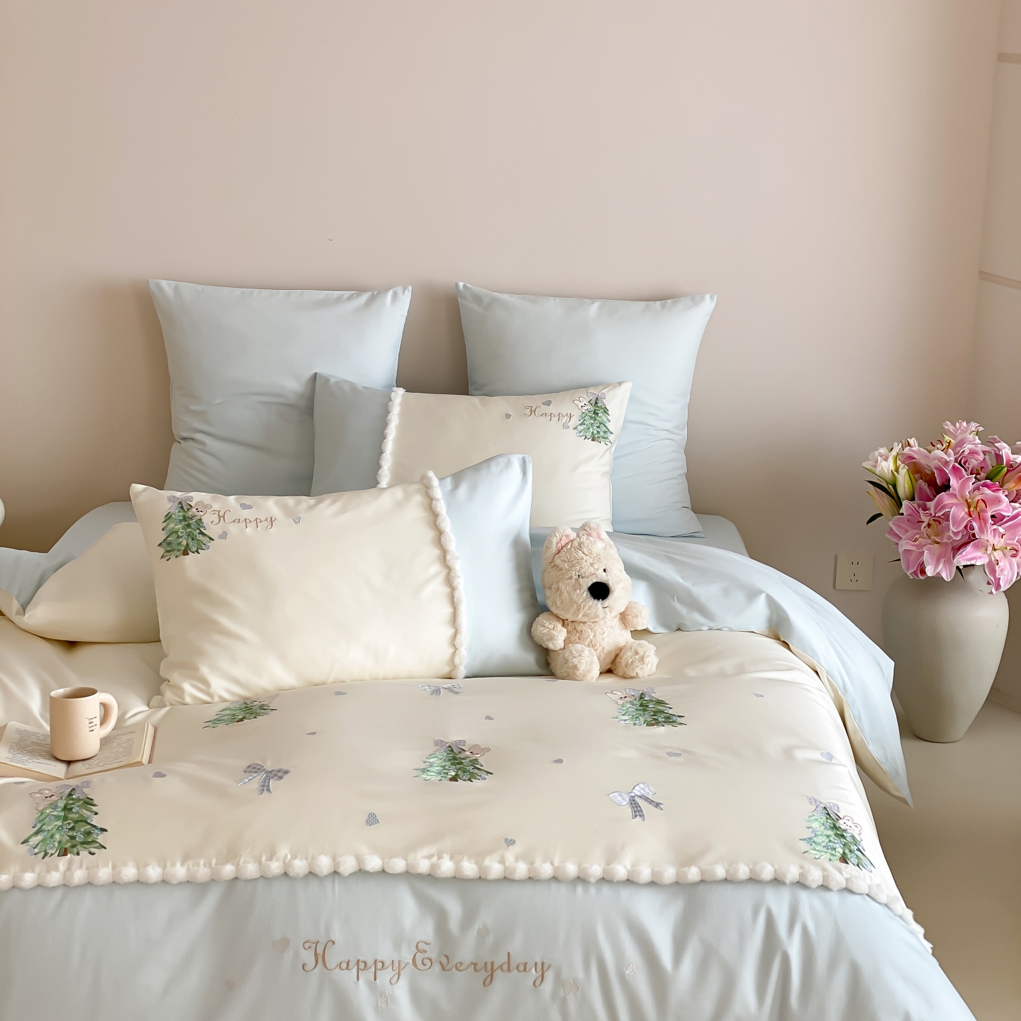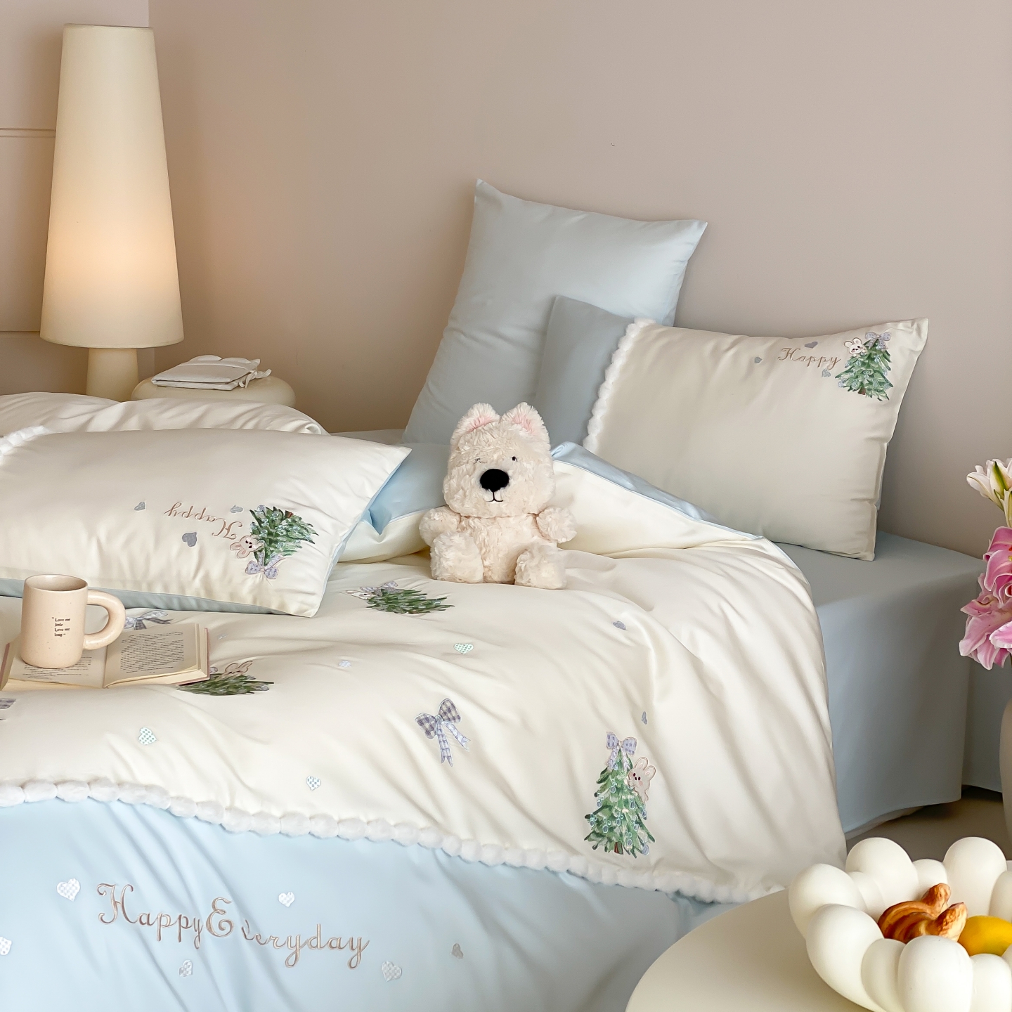 (总)莎臣豹 2026新款莱赛尔天丝贴布绣四件套樱花树下,樱花树下