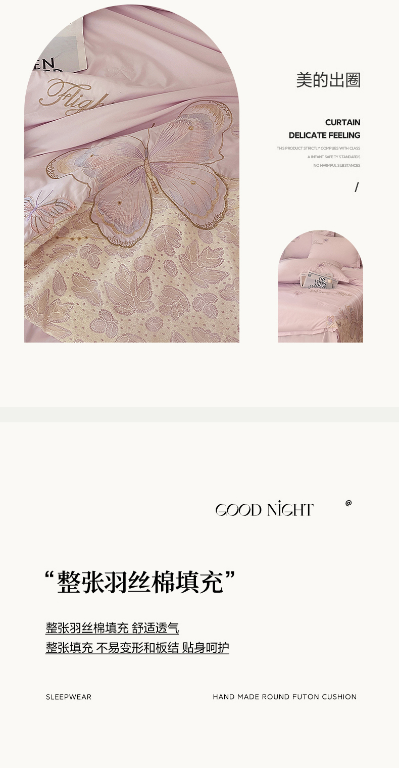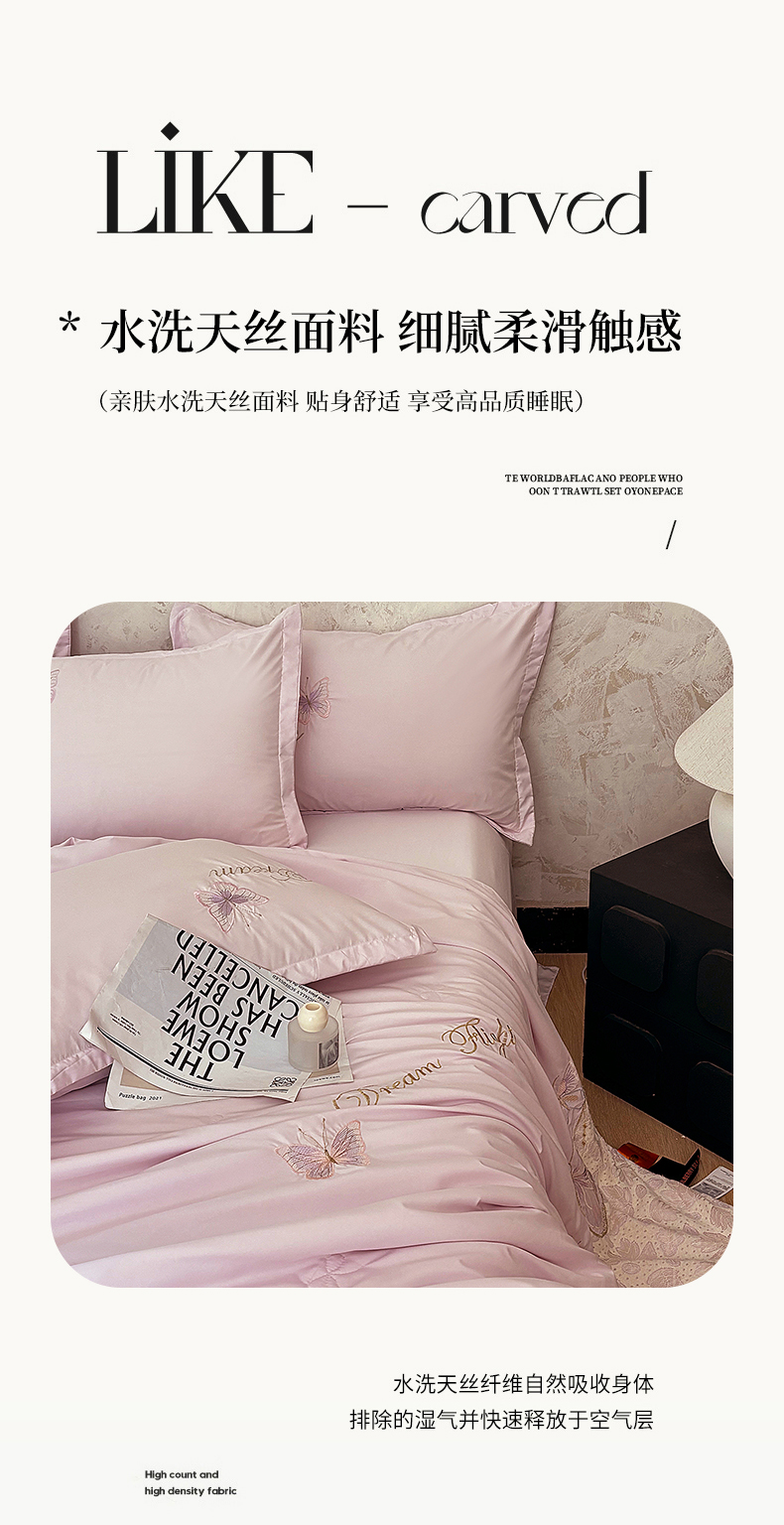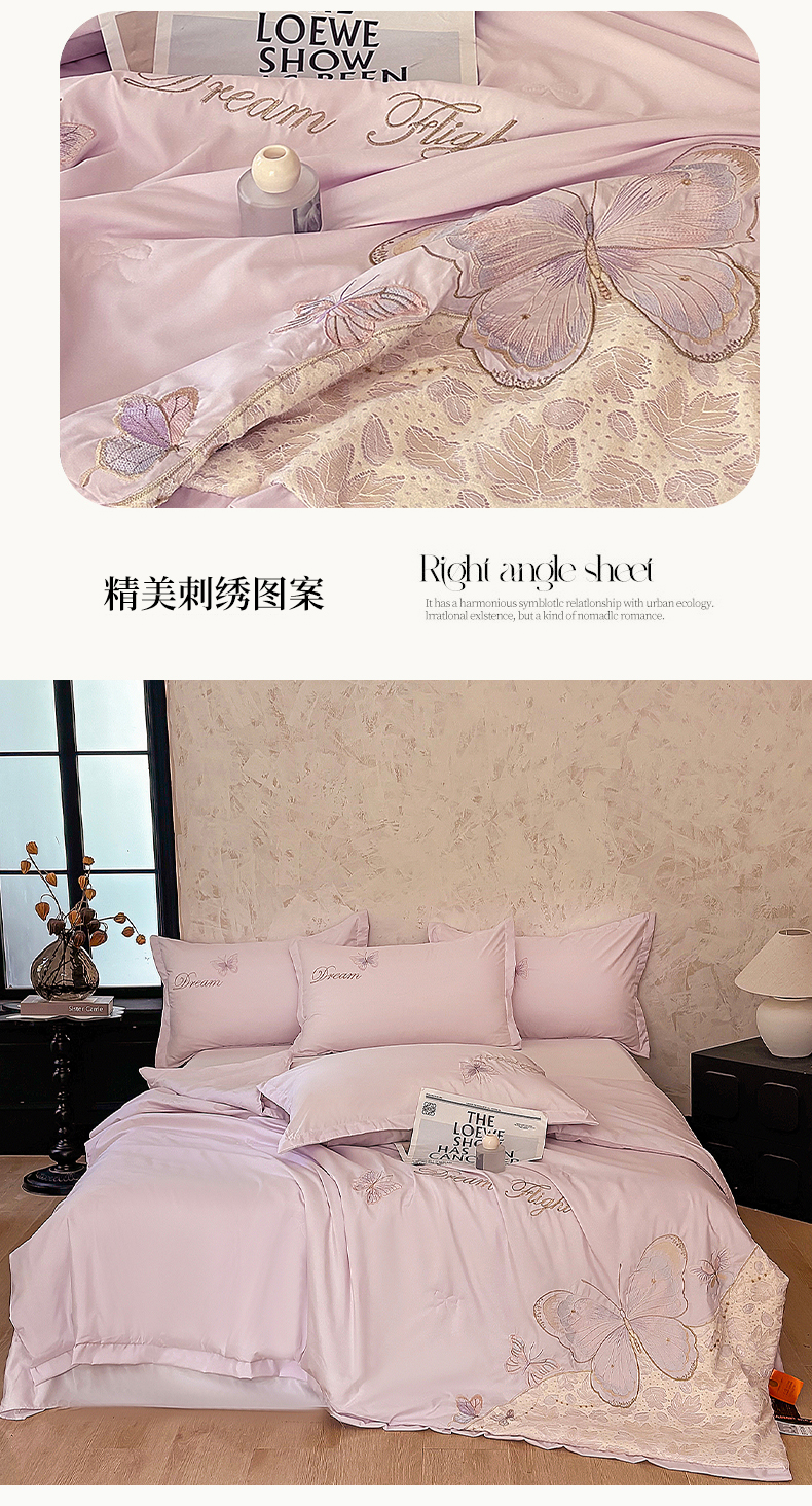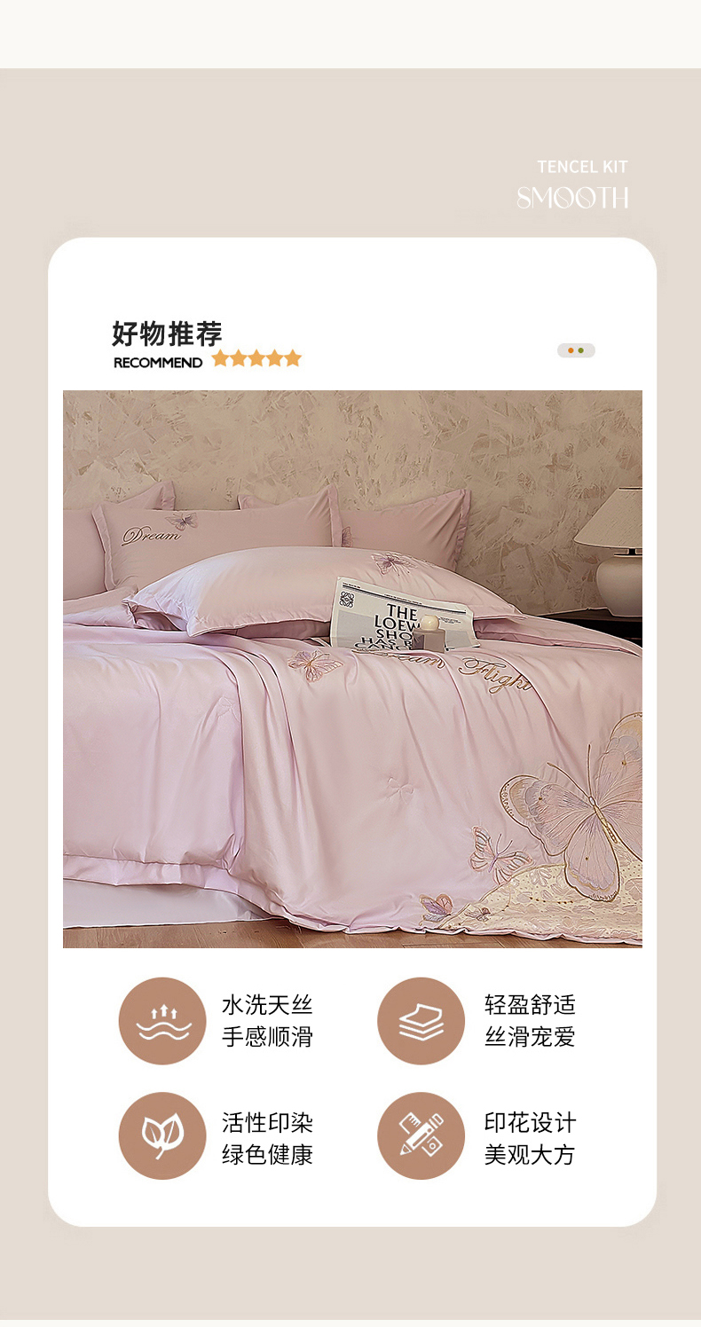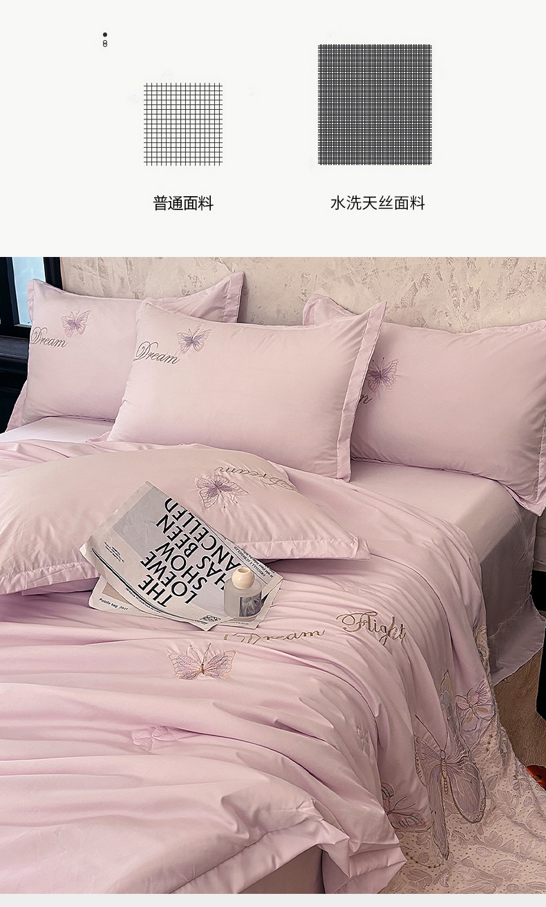 (总)宅家居 2026新款蚕蛹蛋白刺绣A类水光天丝贴纱绣夏被四件套-蝶舞花语,蝶舞花语-粉色,蝶舞花语-水绿,蝶舞花语-香槟,蝶舞花语-紫色