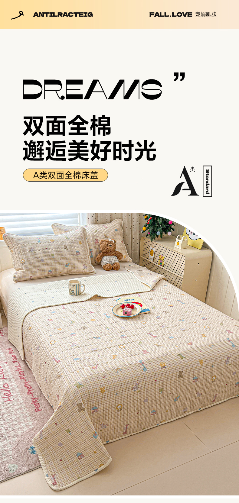 (总)舒居家纺 2026春夏新款双面全棉单床盖 床盖单件,半暖时光,比利小熊,马到成功,兔兔宝贝,花季少女,奔跑小狗,洛琳-粉,花开无声-咖,俏皮狗,兔兔乐园,小汽车,樱桃格子,组合图仅供展示不可下单