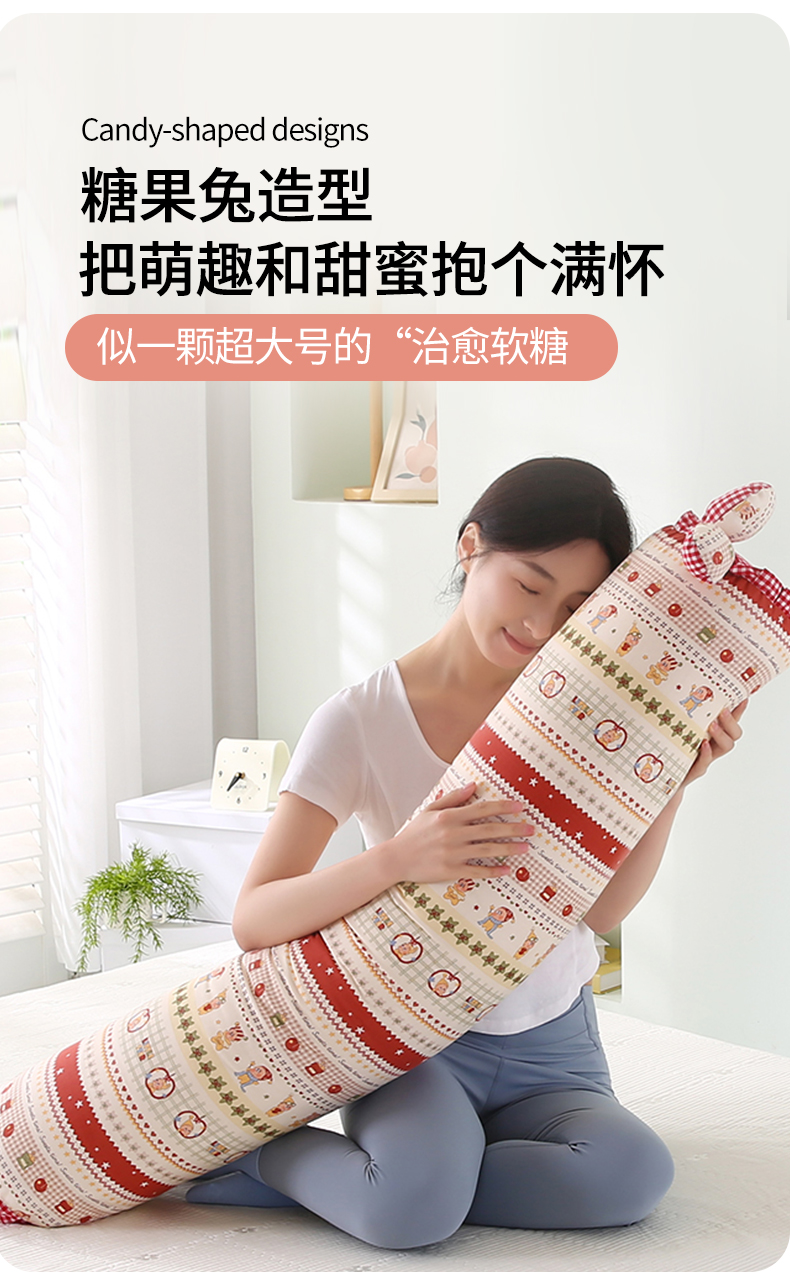 商品名称:蔻眠 全棉印花双层纱长抱枕夹腿抱枕长枕芯儿童学生成人枕头 主图