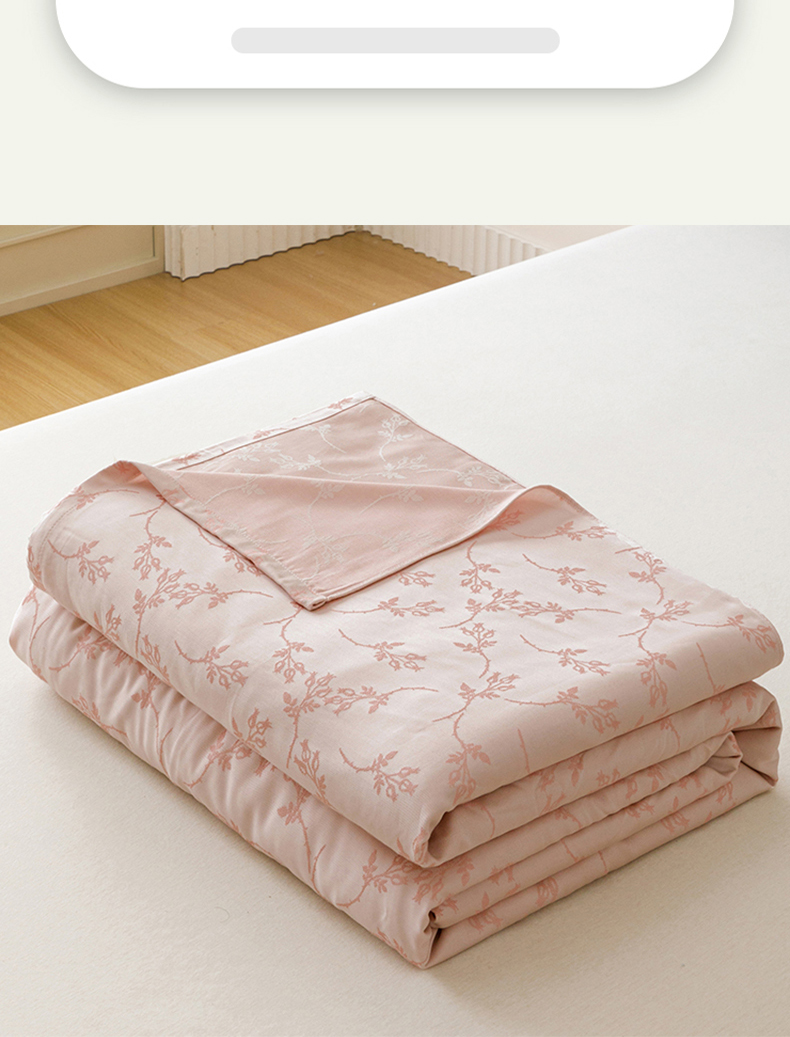 商品名称:悦然毛巾被 2026新款竹纤维冷感毯盖毯再生素纤维休闲夏被毛巾被夏凉被空调被 竹韵叶梦粉