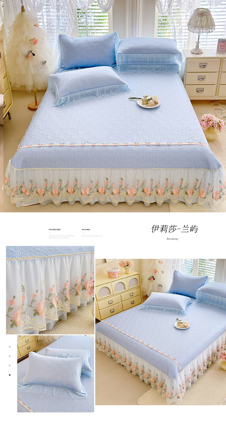 (总)苏米娜家纺SUMINA 2026春夏新款PE高分子双层蕾丝刺绣花边床裙款凉席三件套-伊莉莎系列,伊莉莎-粉黛,伊莉莎-兰屿,伊莉莎-清新绿,伊莉莎-星云紫