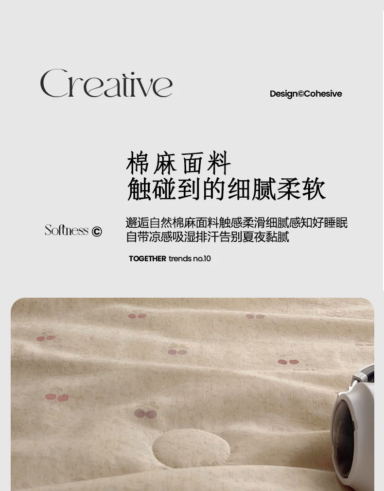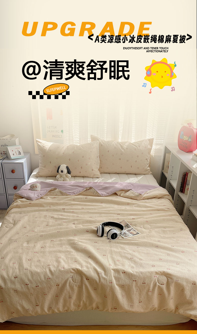 被子 > 夏被 > 桃子家居 2026新款A类原生态纯棉棉麻凉感小冰皮嵌绳工艺棉麻夏被夏凉被空调被 棉麻冰皮-奶芙樱桃