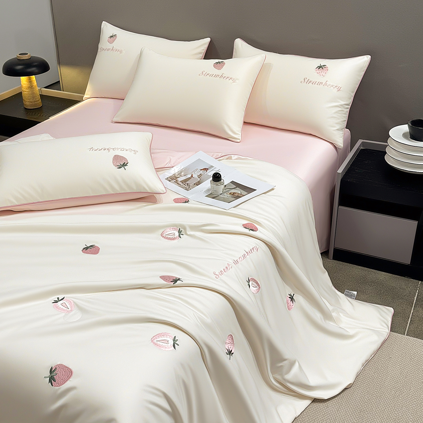 (总)梦舒羽 2026新款A类水洗冰丝满版夏凉被,草莓-奶白粉,樱桃-奶白粉,云朵-奶白蓝,郁金香-奶白绿,海豚-奶白蓝,云朵-粉玉蓝