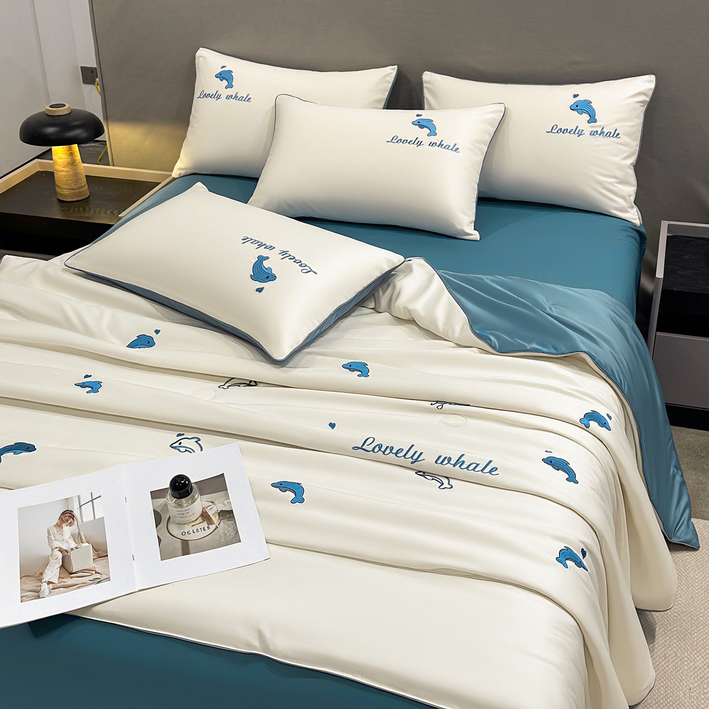 梦舒羽 2026新款A类水洗冰丝满版夏凉被 海豚-奶白蓝