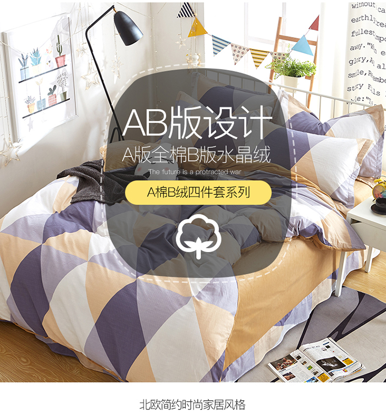 (总)盛馨家纺 加厚保暖棉加绒水晶绒四件套
