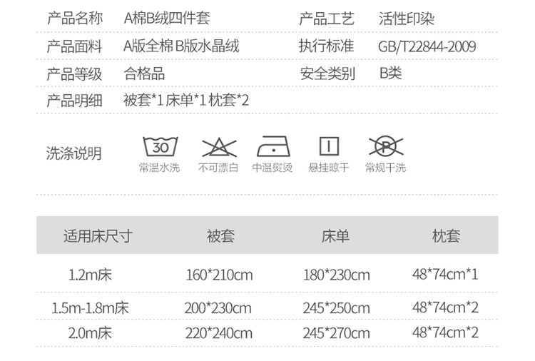 商品名称:(总)盛馨家纺 加厚保暖棉加绒水晶绒四件套
