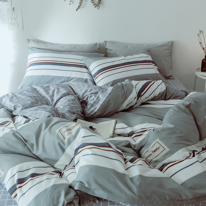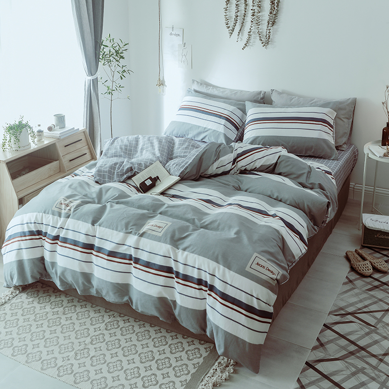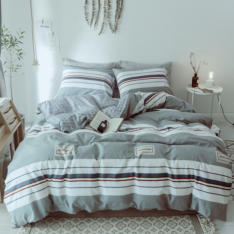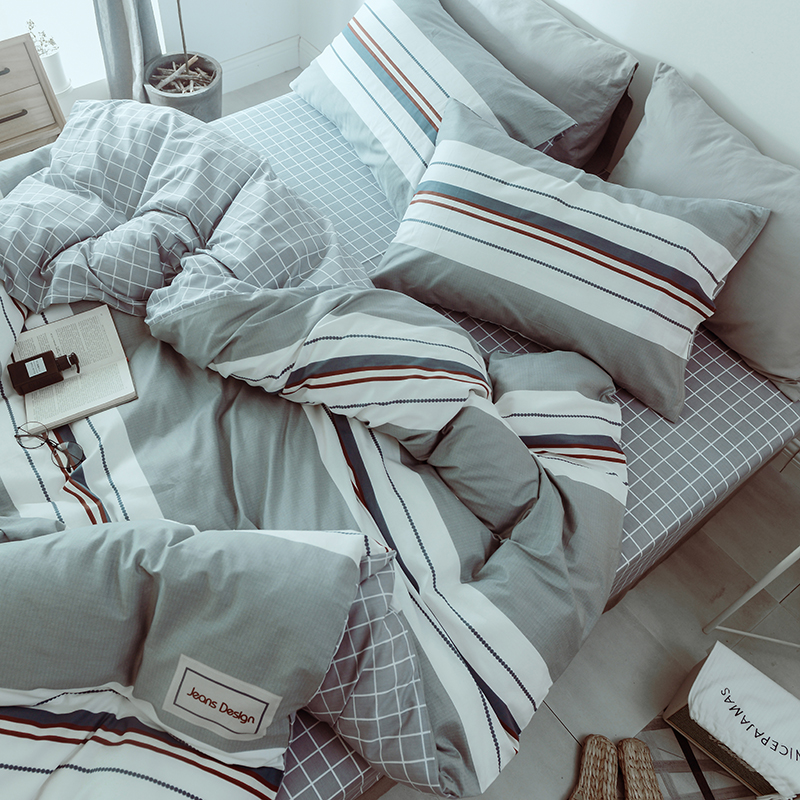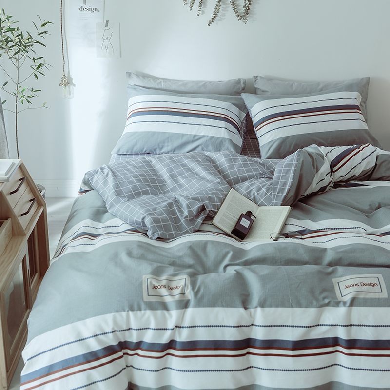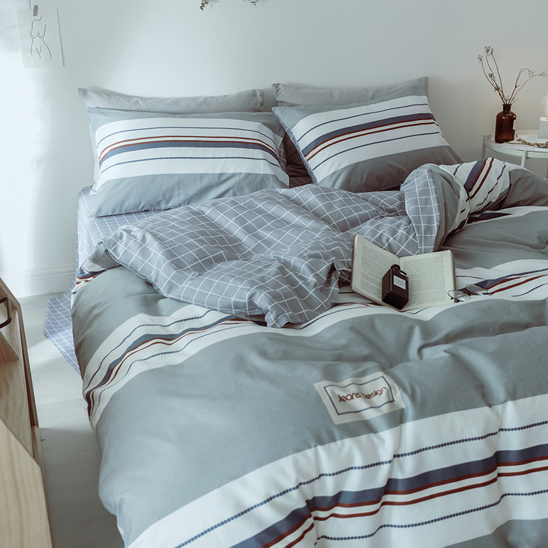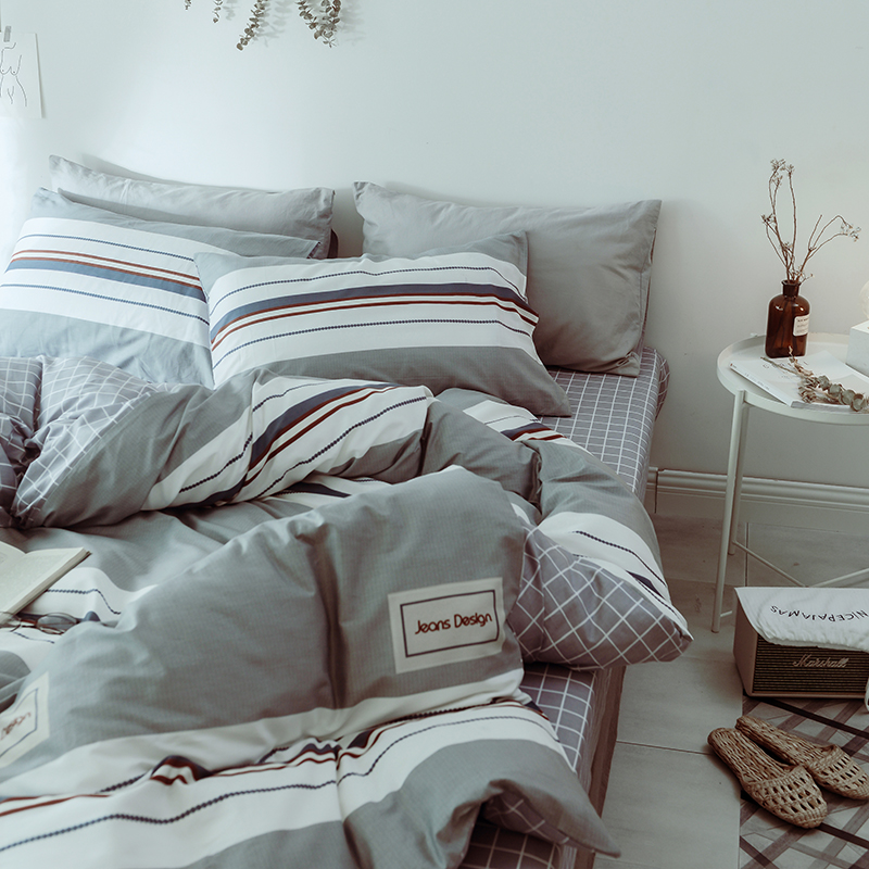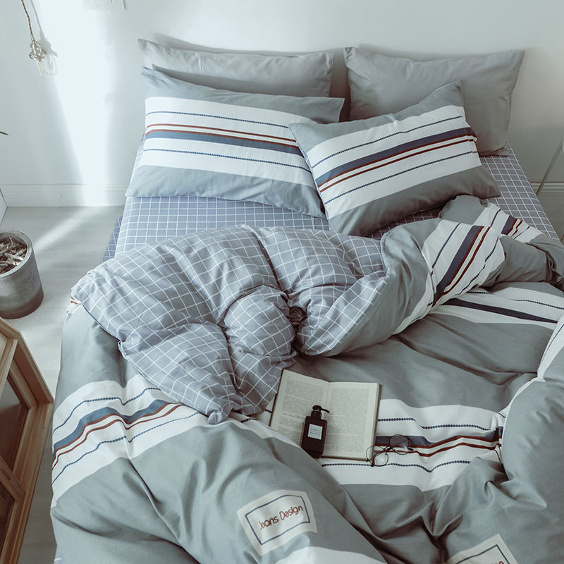 (总)一米阳光 2024新款小清新AB版全棉四件套,贝尔兰,饼干熊,粉黛,简约,卡通甜甜圈,萌萌宠,沁园-灰,沁园-卡其,沁园-紫,水果点点,月半点点