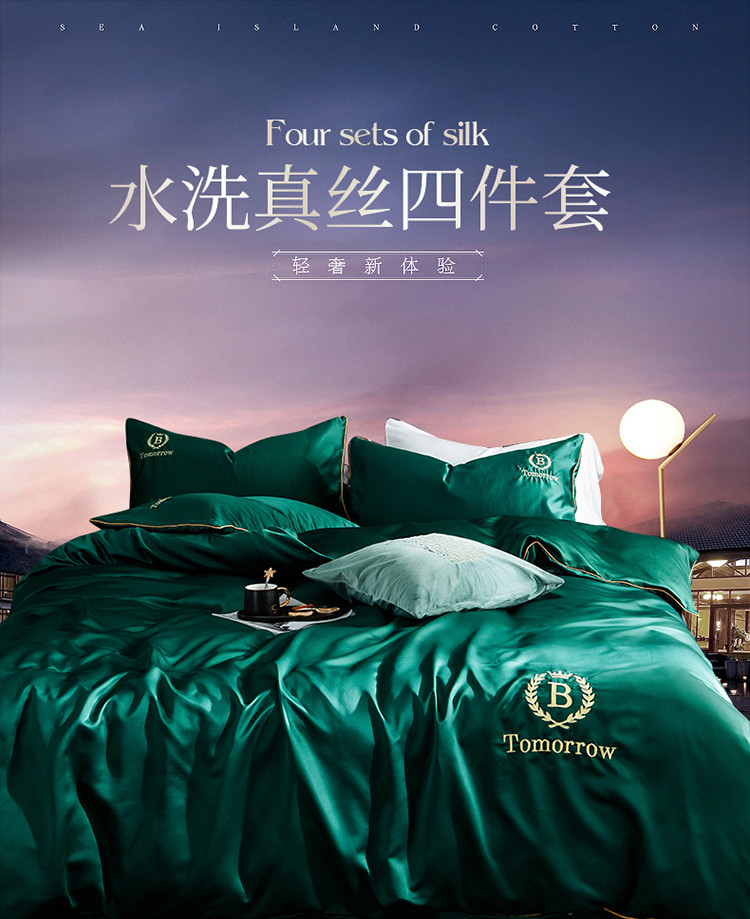 琪格格 2022新款水洗真丝刺绣四件套 都市-魅惑绿