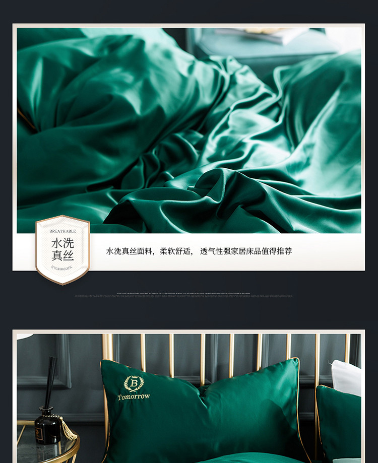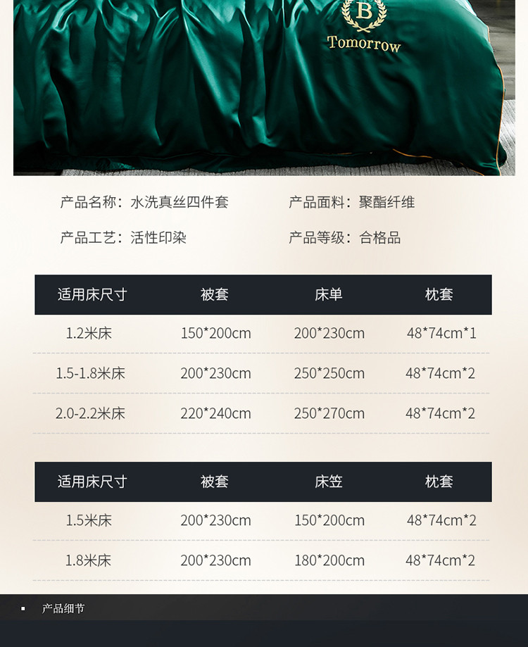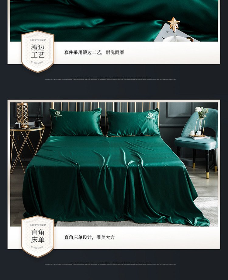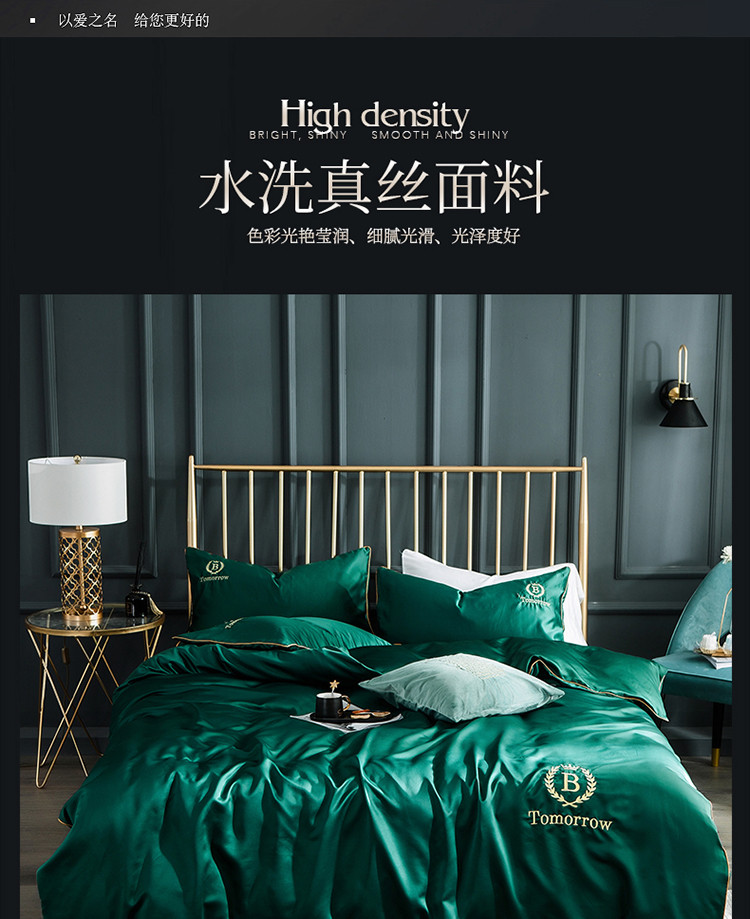 商品名称:琪格格 2022新款水洗真丝刺绣四件套 都市-魅惑绿