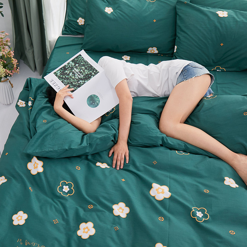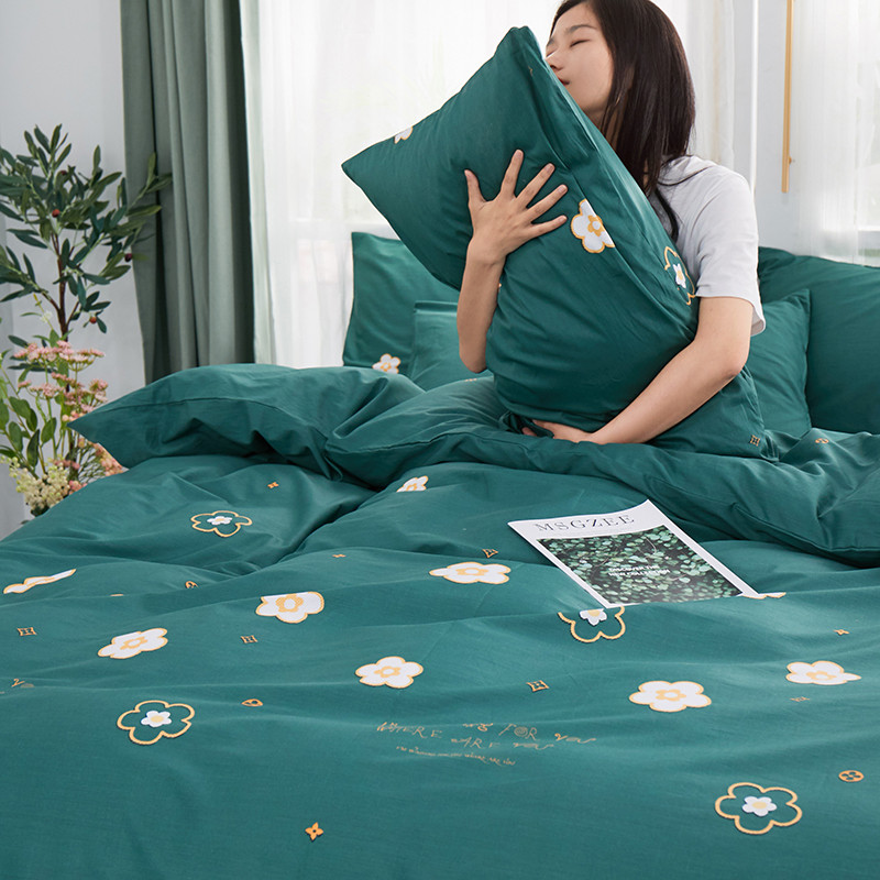 商品名称:一米阳光 2019新款泫雅风全棉13070四件套 恋曲-墨绿