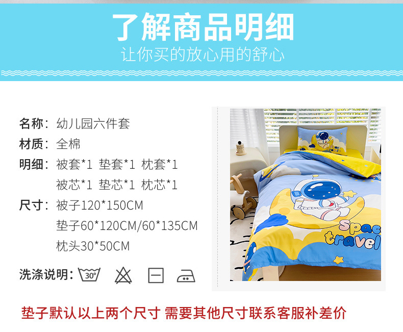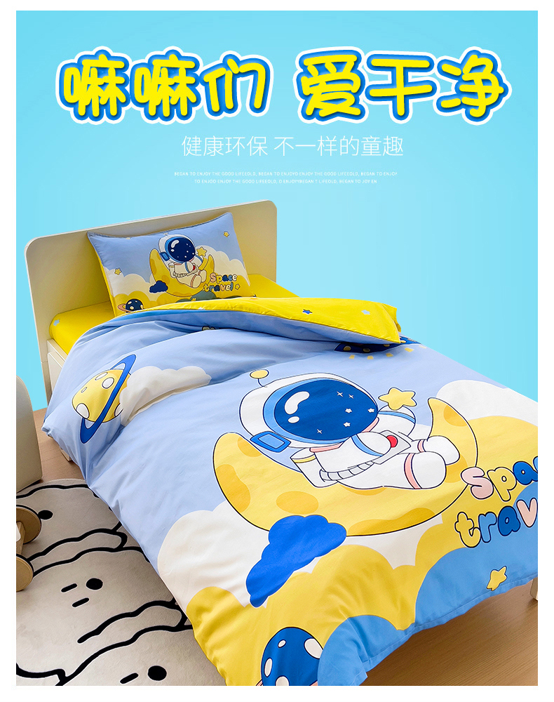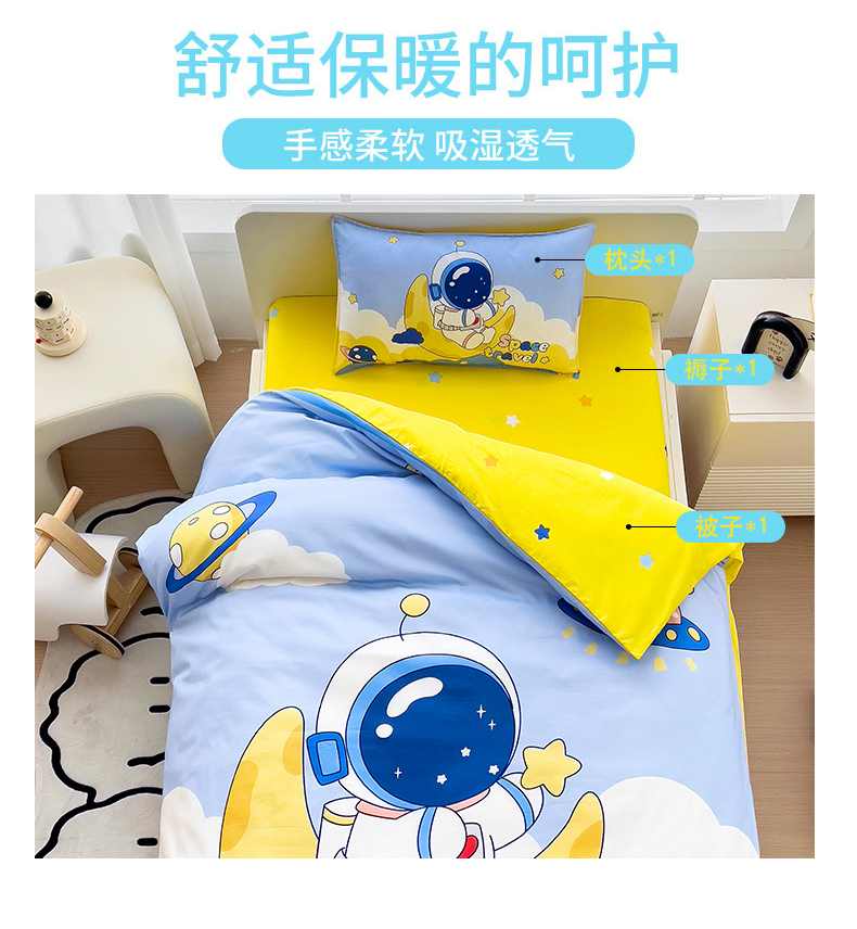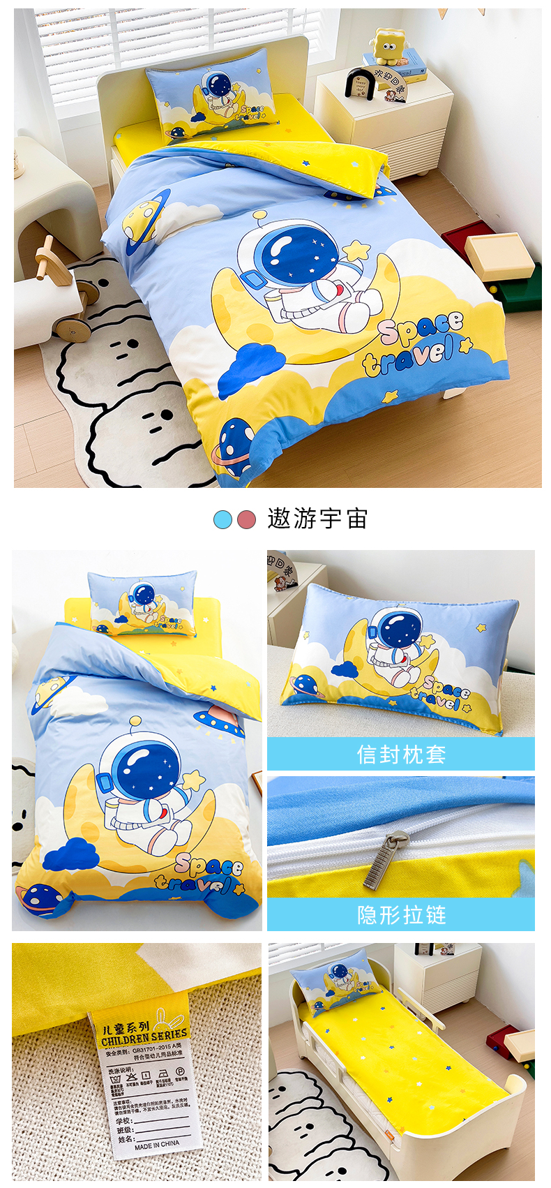 (总)吉咪兔家纺 2025新款全棉纯棉幼儿园三件套儿童被褥六件套宝宝午睡入园婴儿床床上用品,遨游太空,飞向太空,格子熊猫,恐龙家族,恐龙星球,邻家女孩,奶油草莓,奶油兔,太空旅行,玩趣森林,熊猫乐园