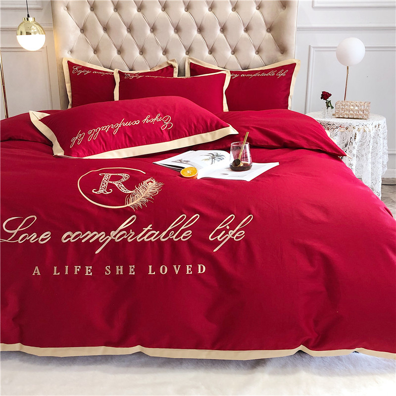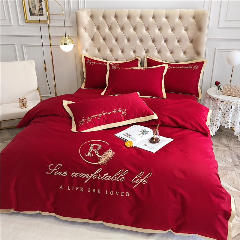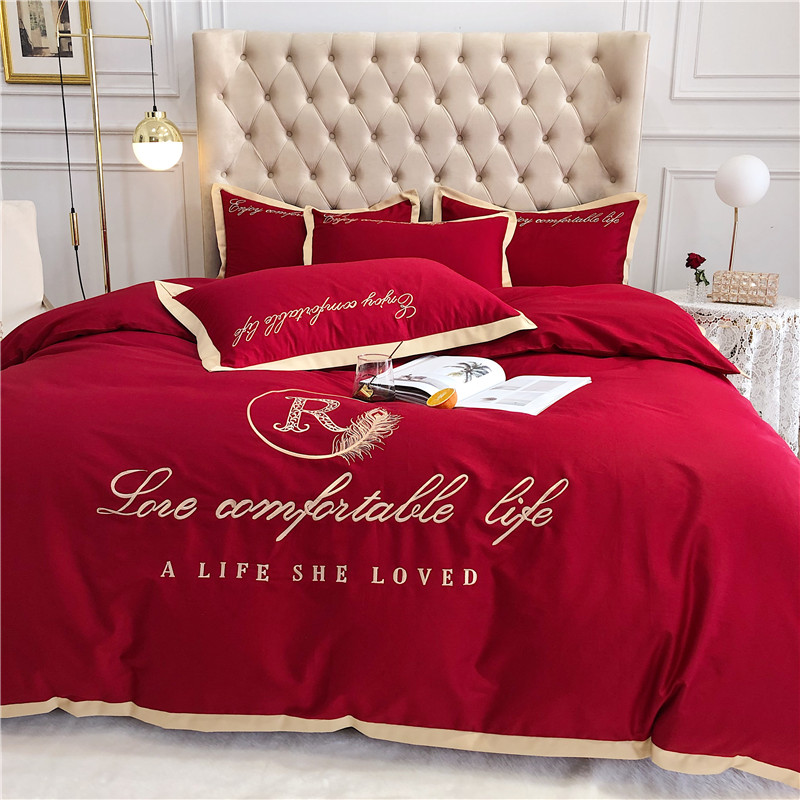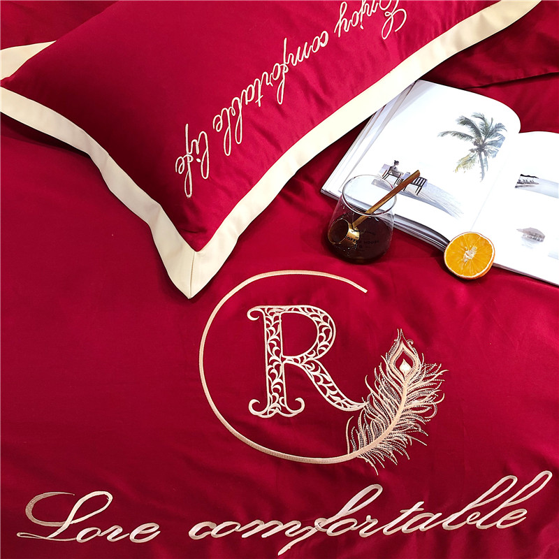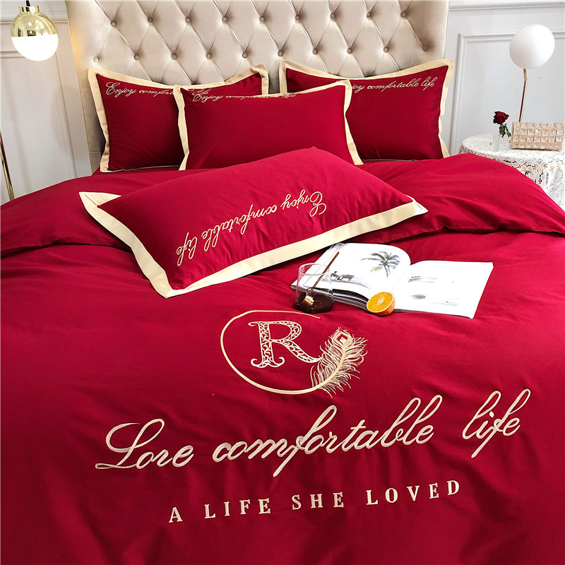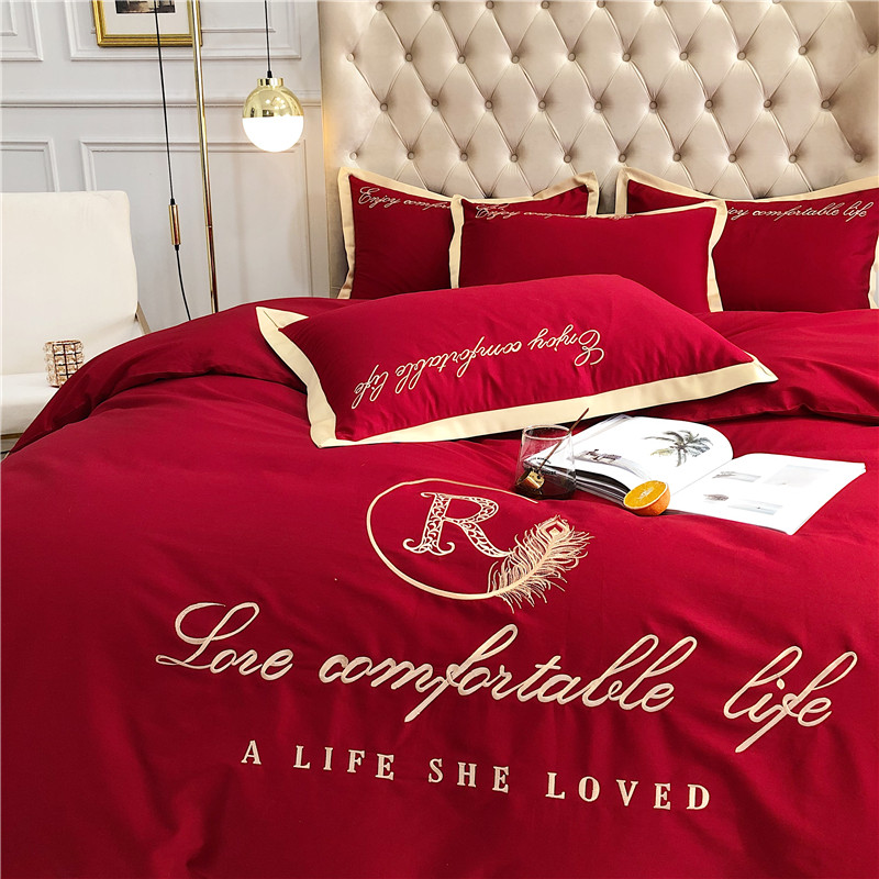 馨蕊家居 2021新款60长绒棉绣花四件套 简爱-温莎红