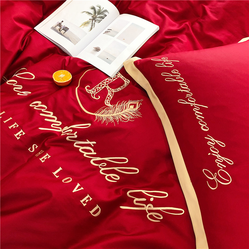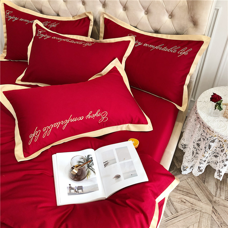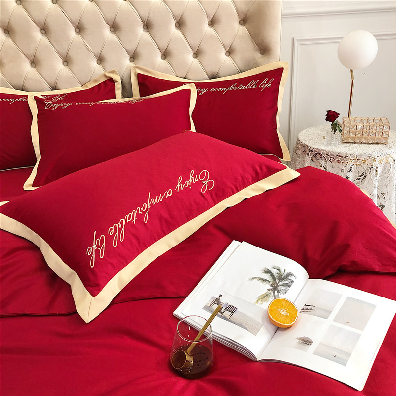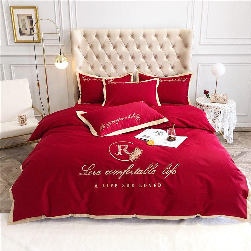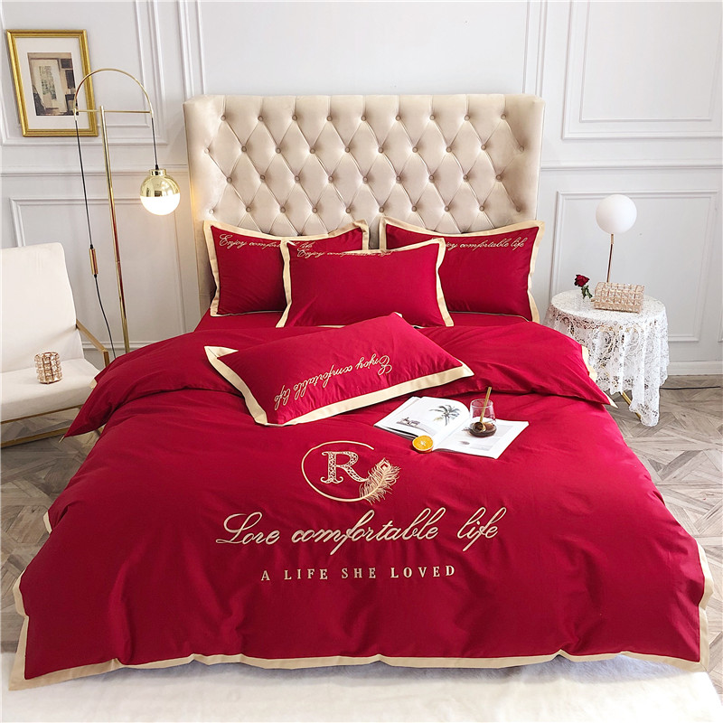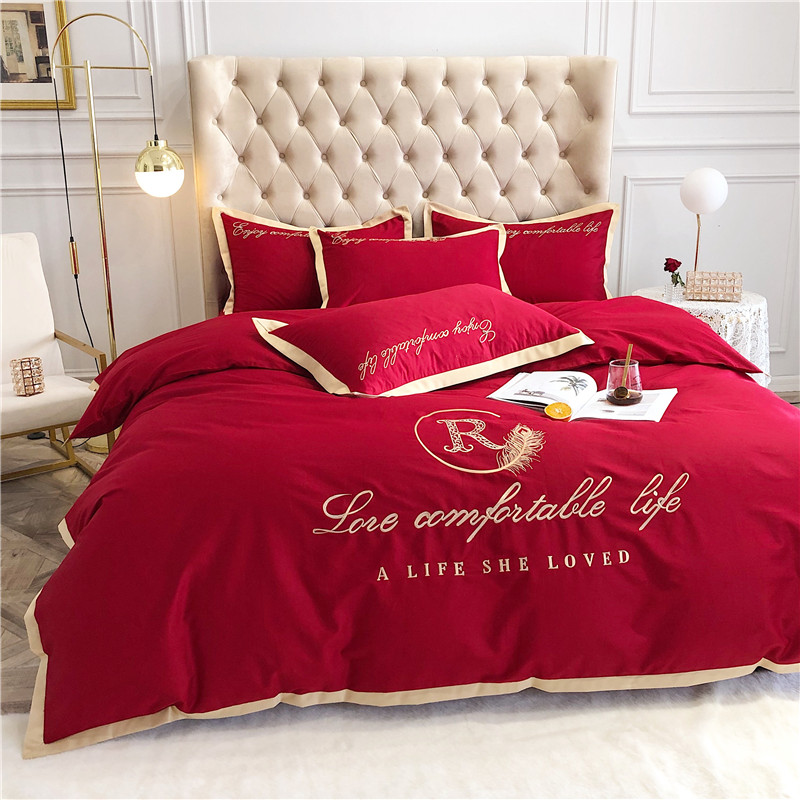 馨蕊家居 2021新款60长绒棉绣花四件套 简爱-温莎红