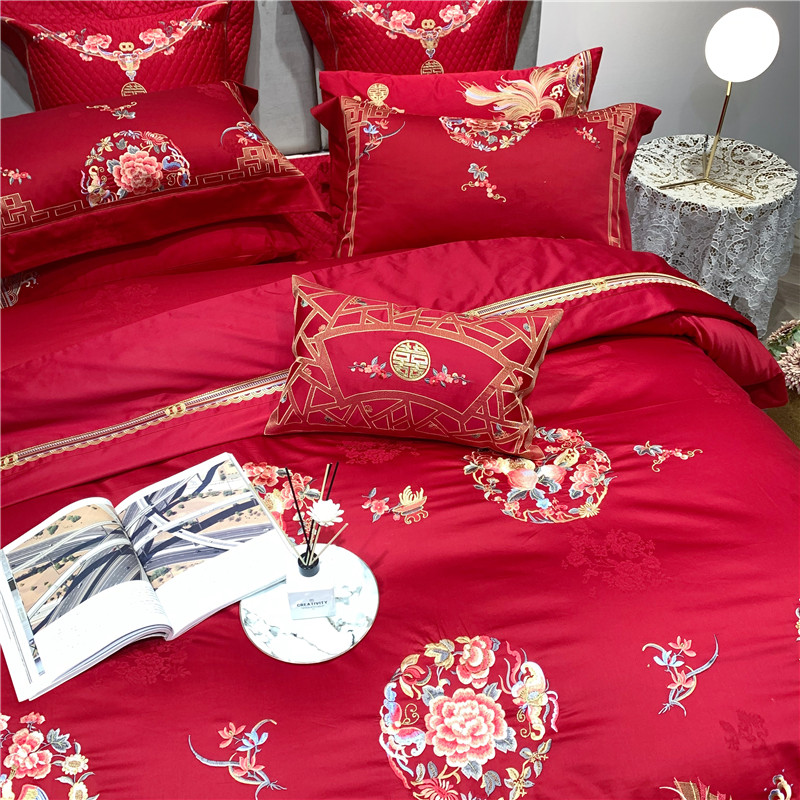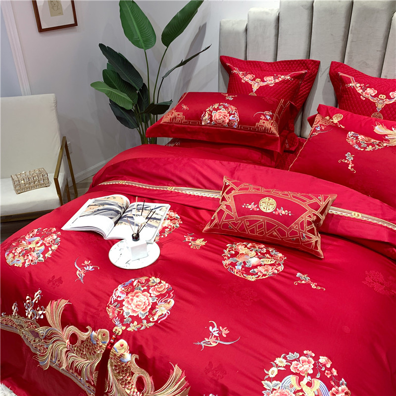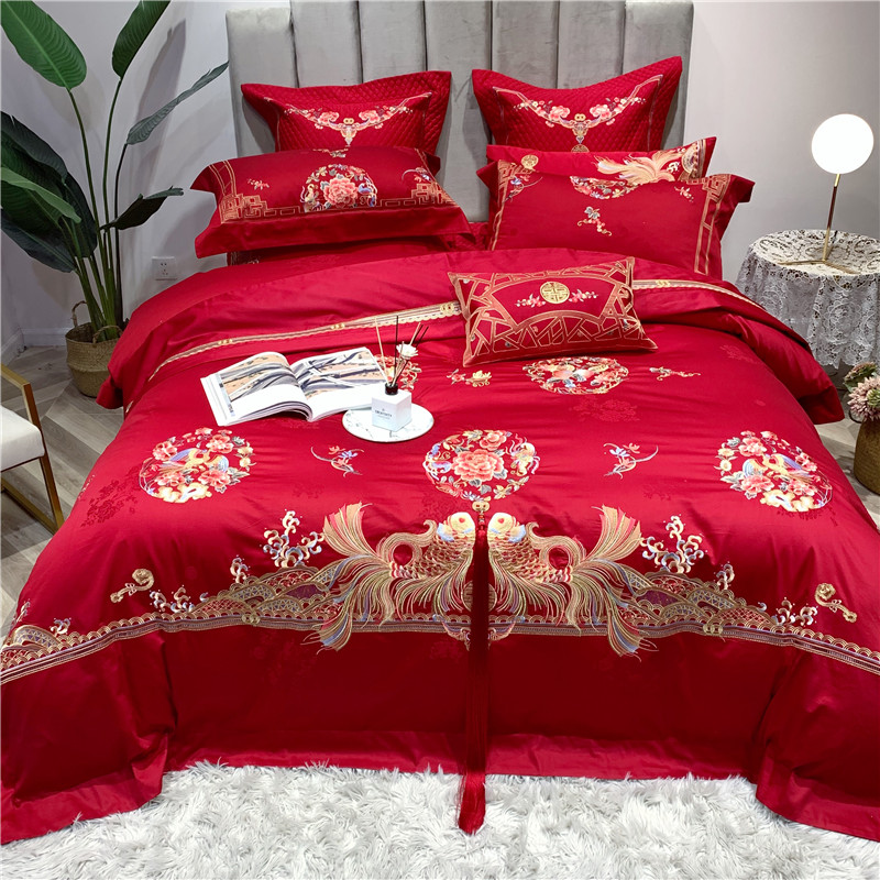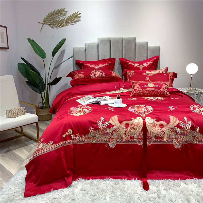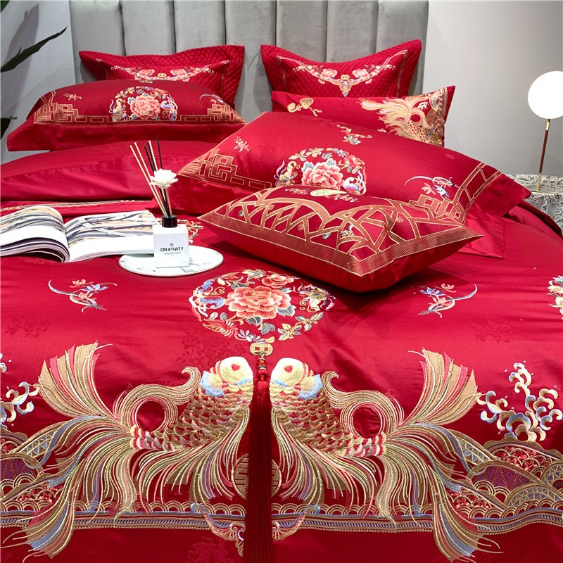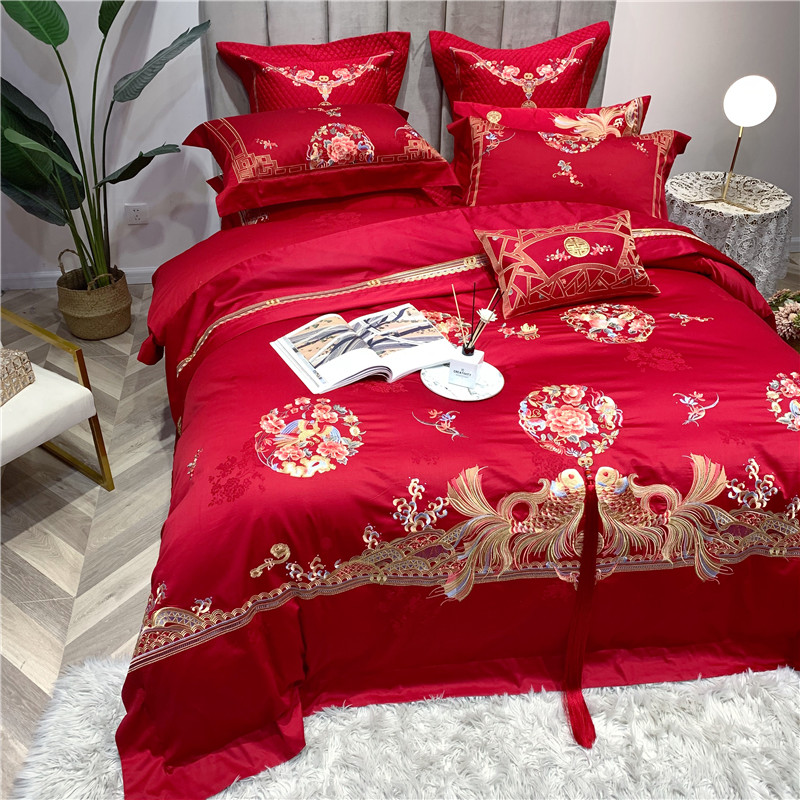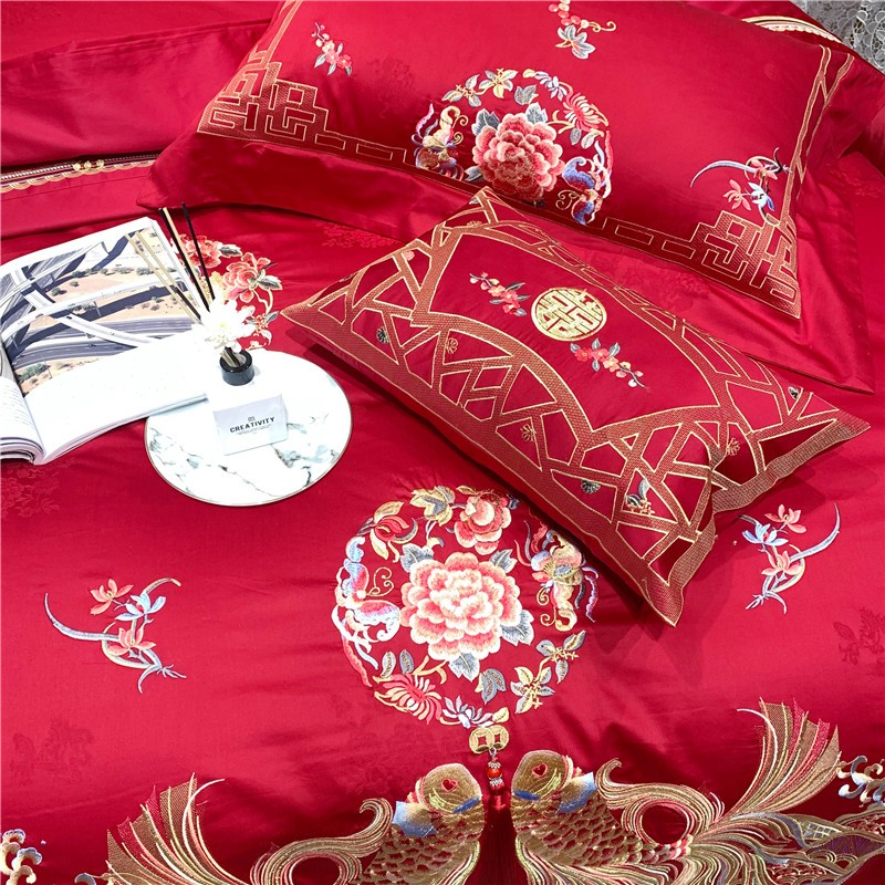当前位置: 91家纺网 > 商品网购 > 床品套件 > 四件套 > 全棉普通四件套 > 馨蕊家居 2021新款100支高端婚庆四件套 年年有余
