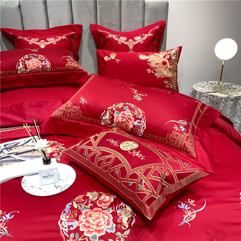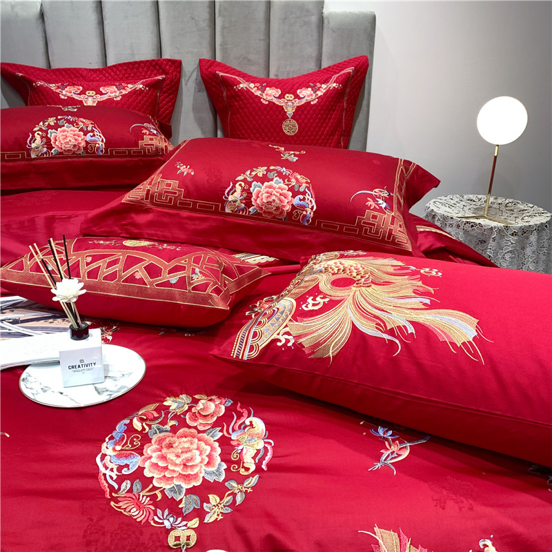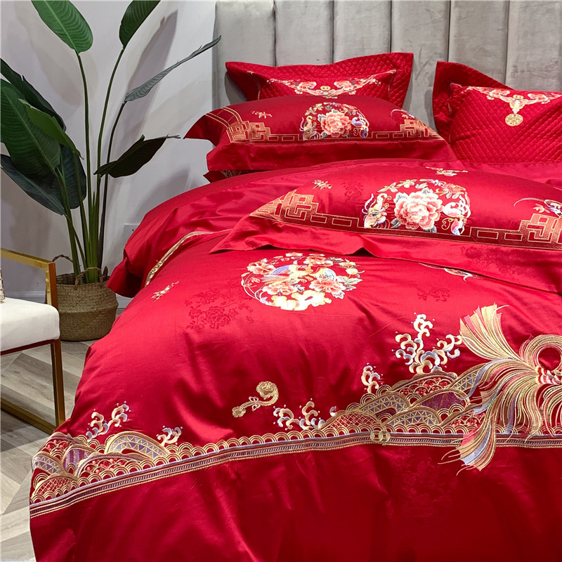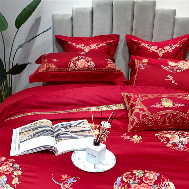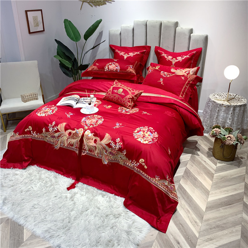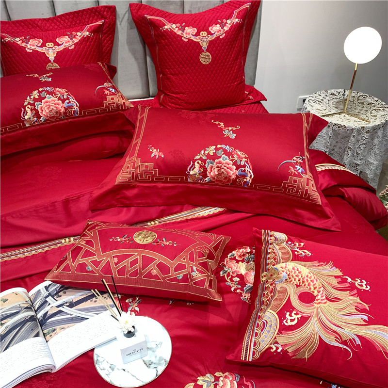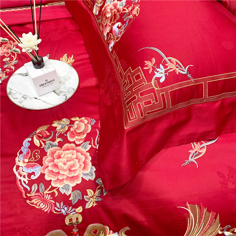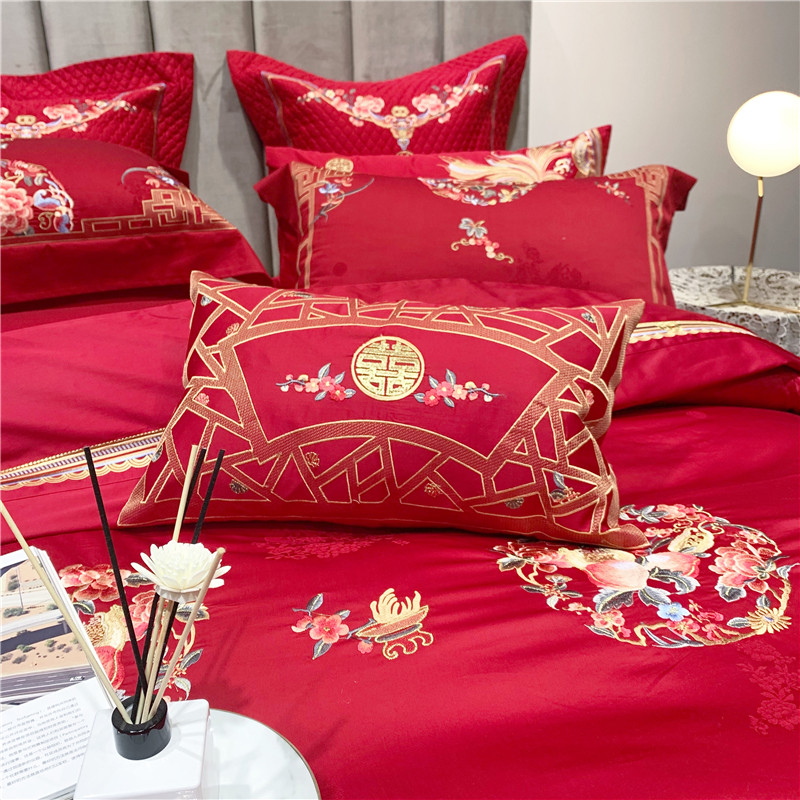 当前位置: 91家纺网 > 商品网购 > 床品套件 > 四件套 > 全棉普通四件套 > 馨蕊家居 2021新款100支高端婚庆四件套 年年有余