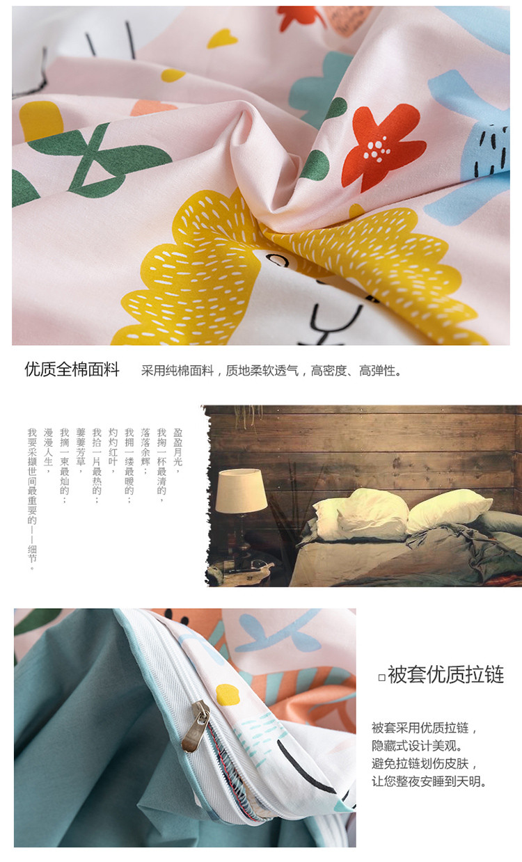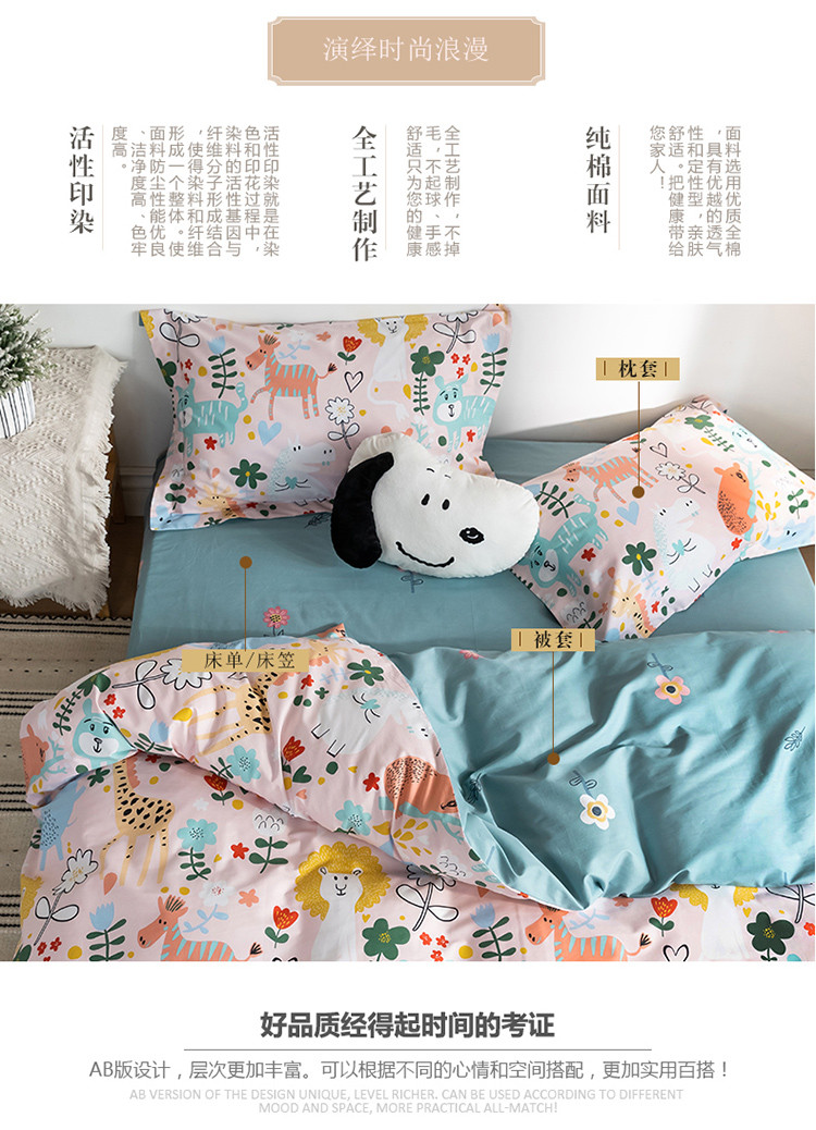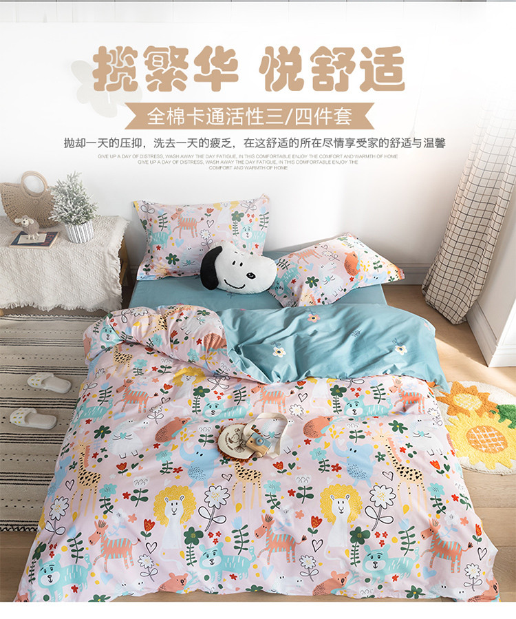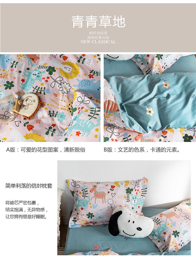 商品名称:窝米 2020春夏新品-萌系卡通风系列四件套 青青草地
