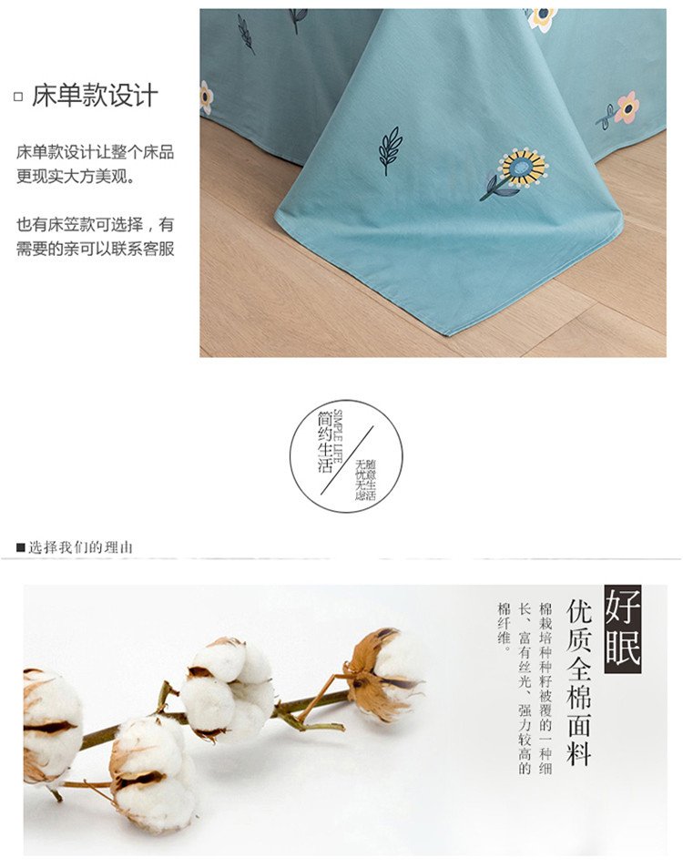 窝米 2020春夏新品全棉13372四件套小波西风系列小花花,小花花