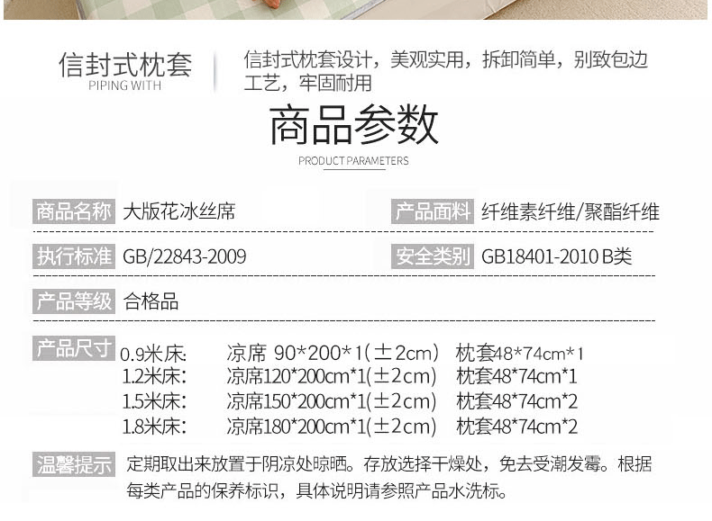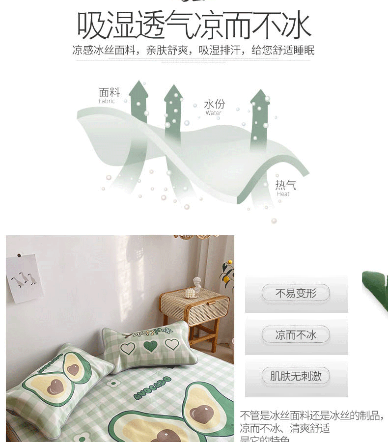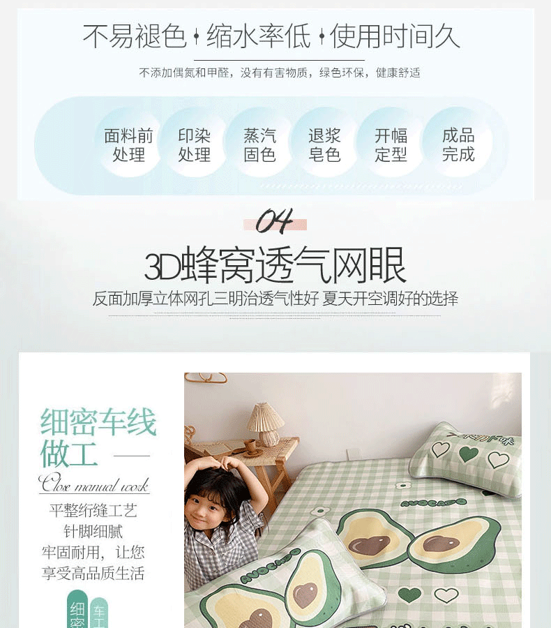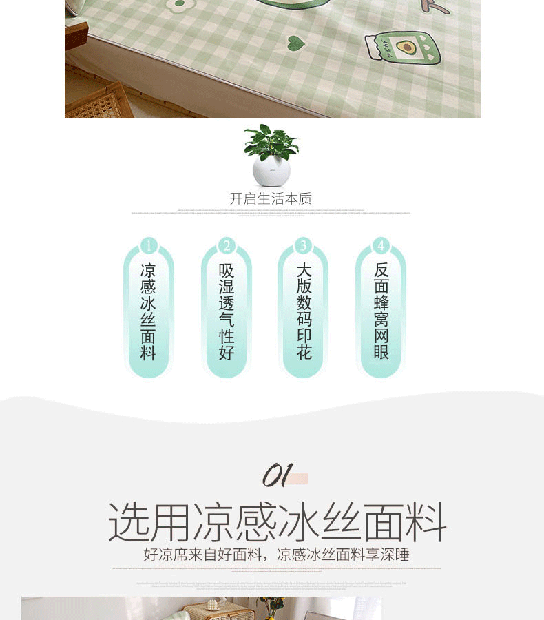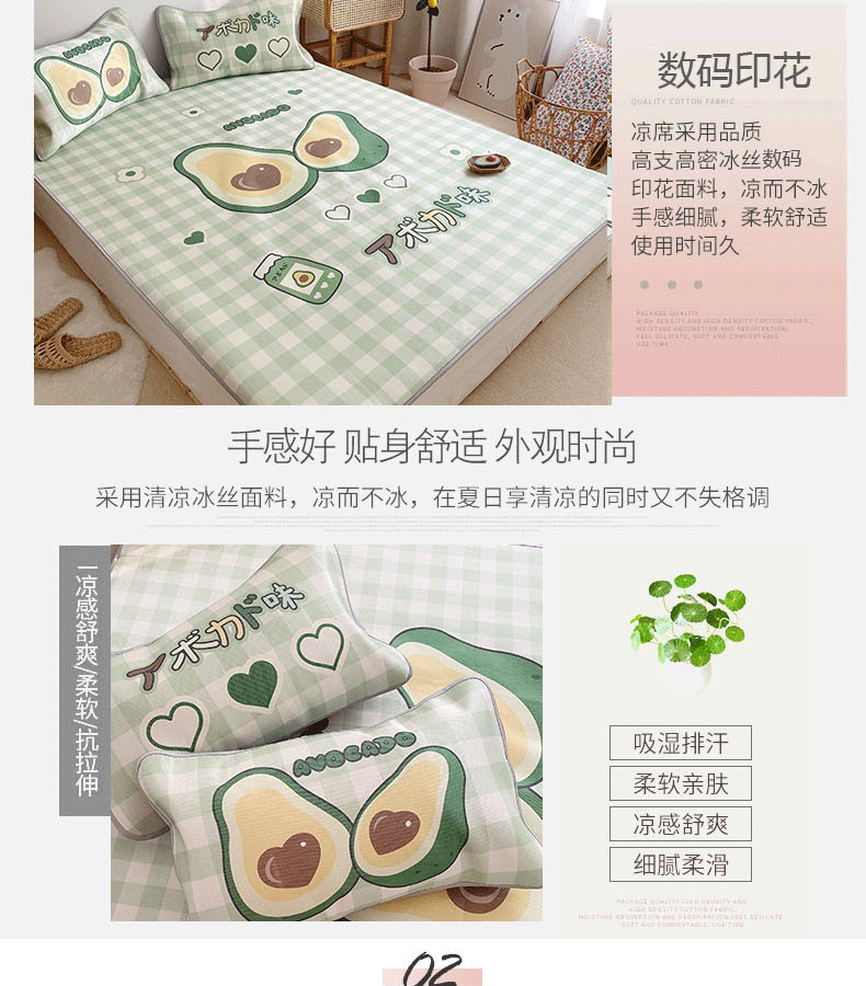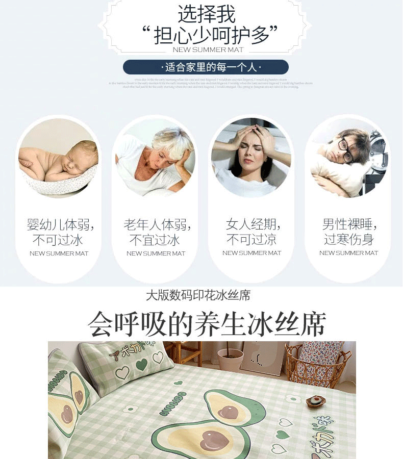 商品名称:川悦生活 2021直播供货新款大版冰丝凉席 日系牛油果