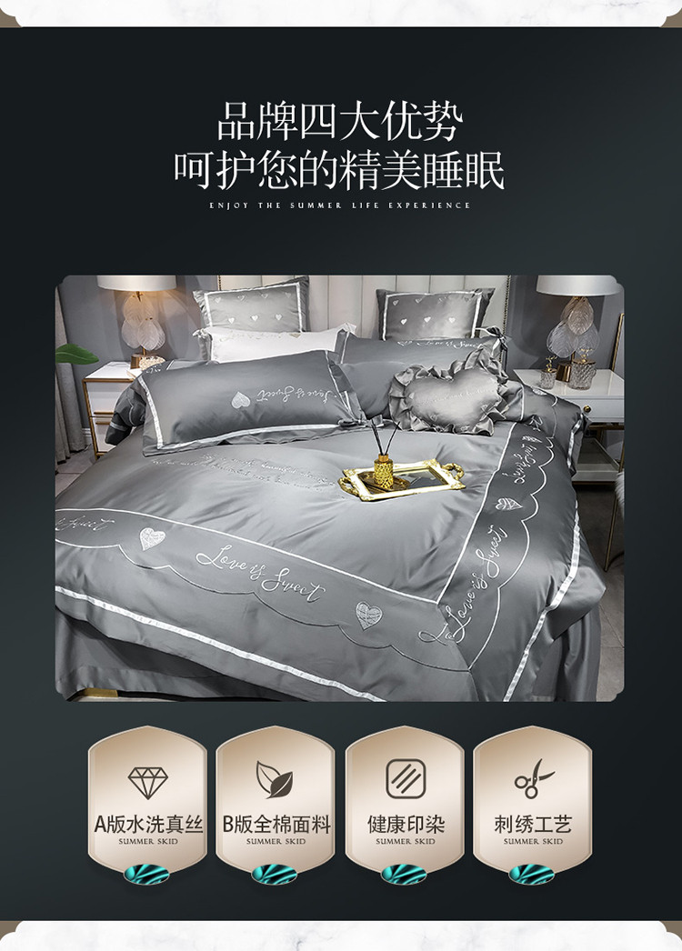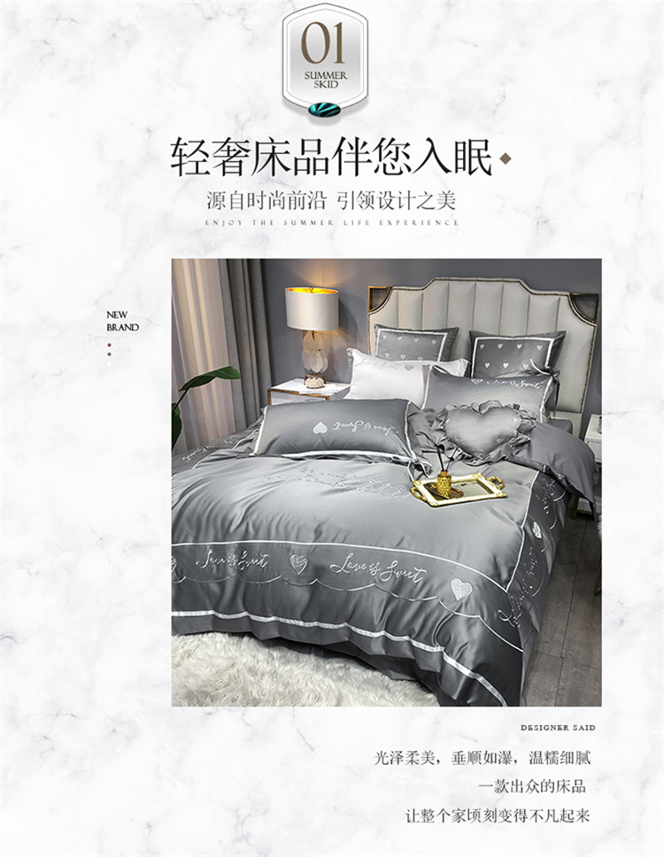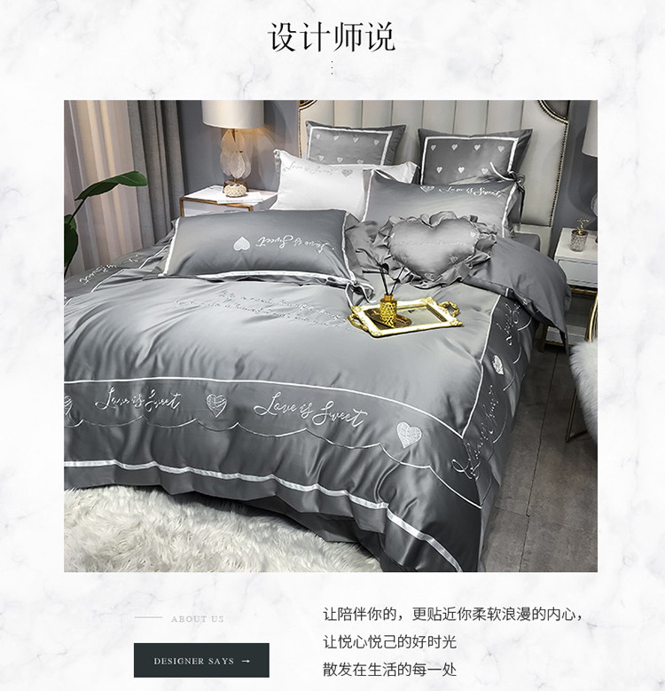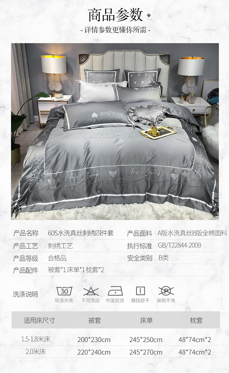 商品名称:眠帛家居 2020新款60水洗真丝刺绣心心相印四件套 灰色
