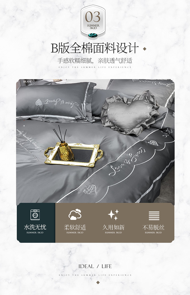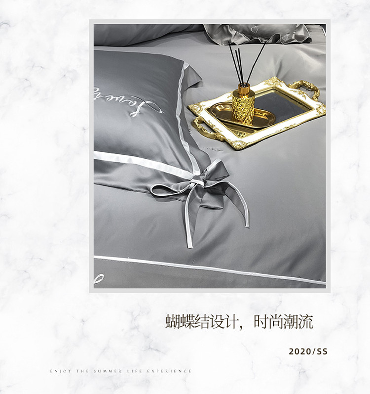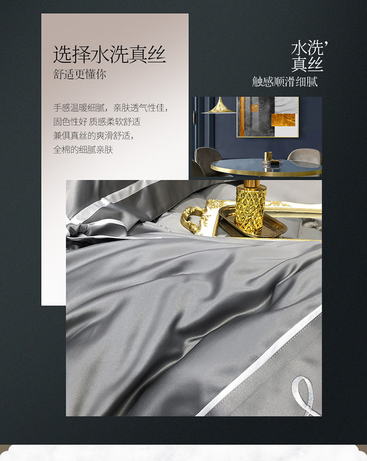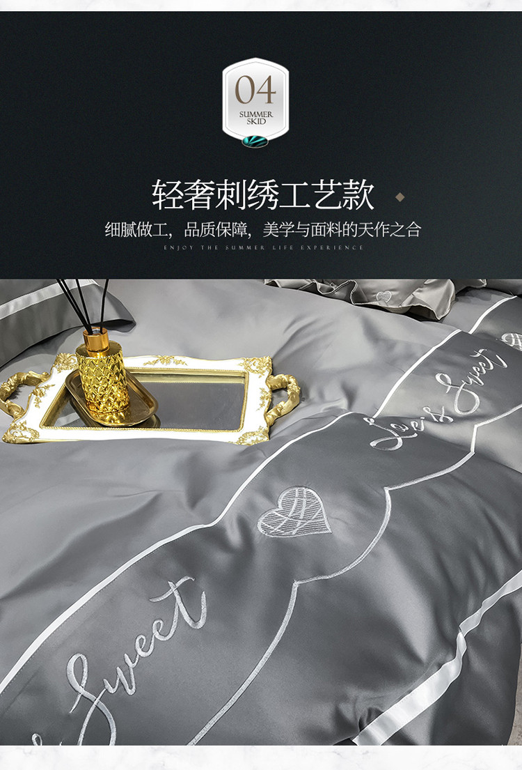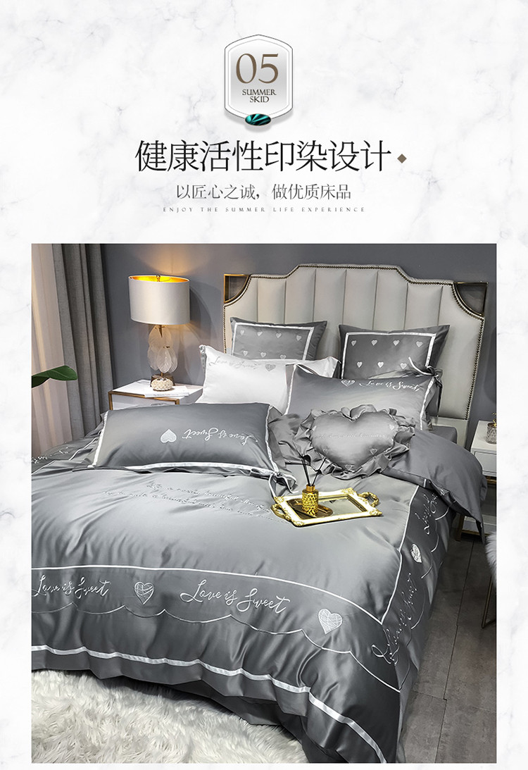 商品名称:眠帛家居 2020新款60水洗真丝刺绣心心相印四件套 灰色