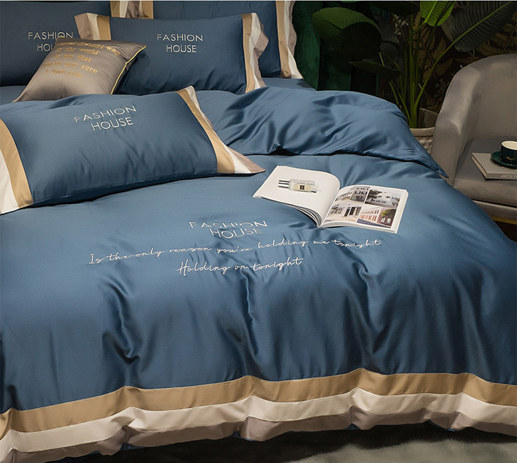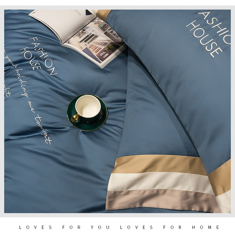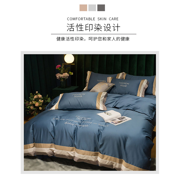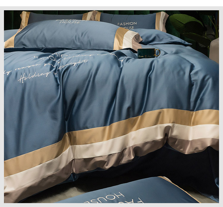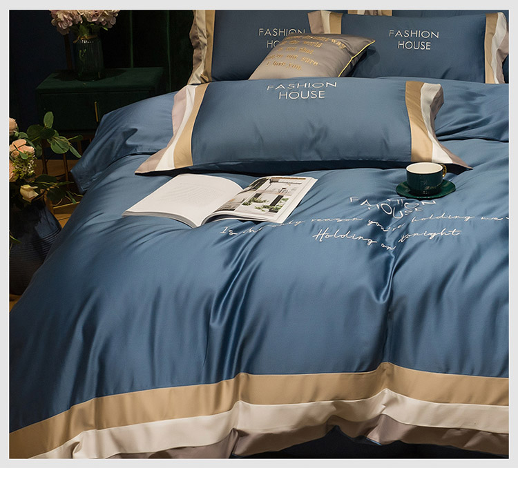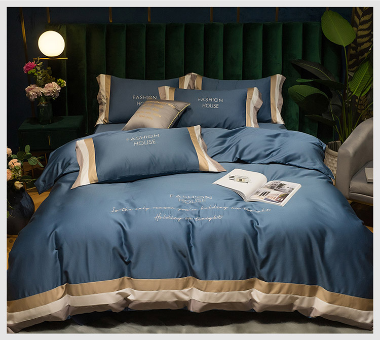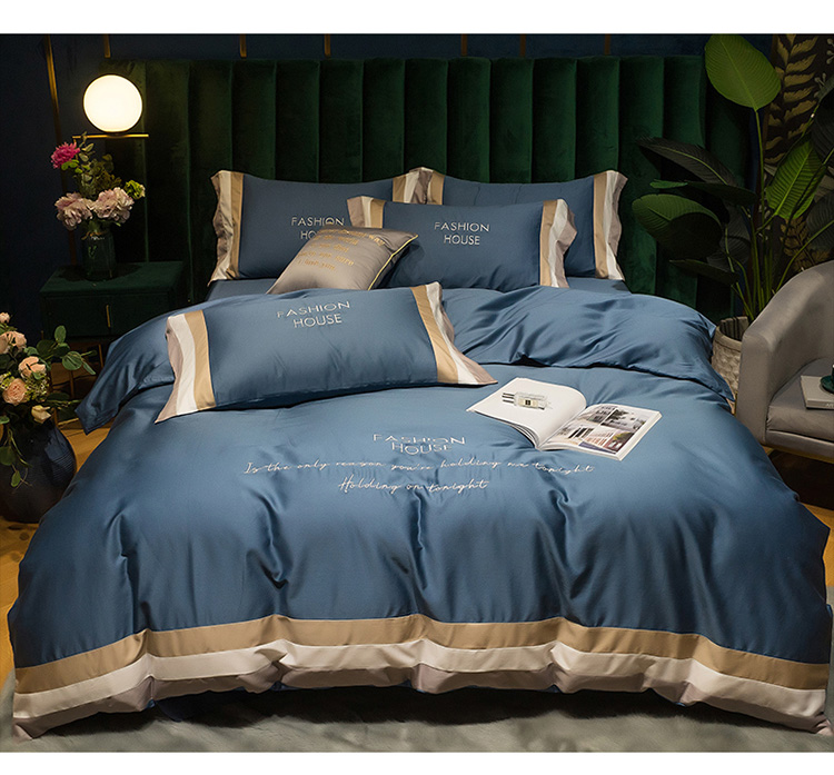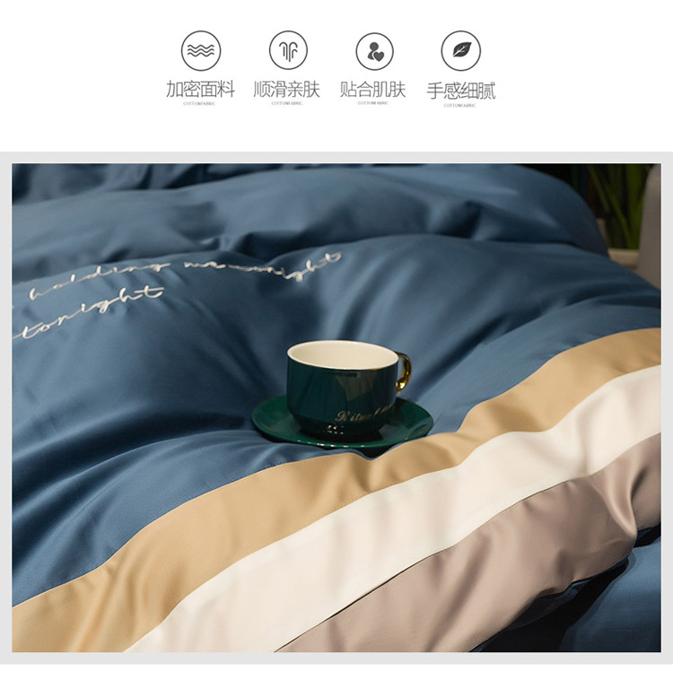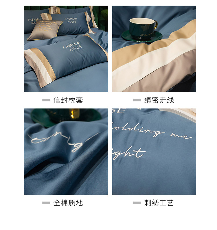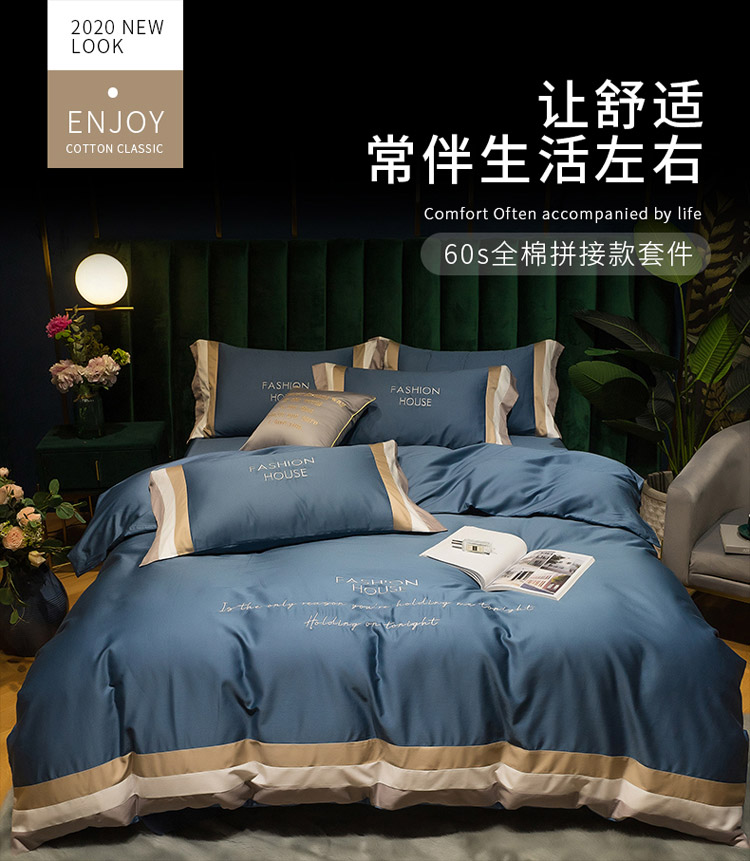 商品名称:爱缦 2020新款双面60S长绒棉绣花拼接款四件套 宾利蓝