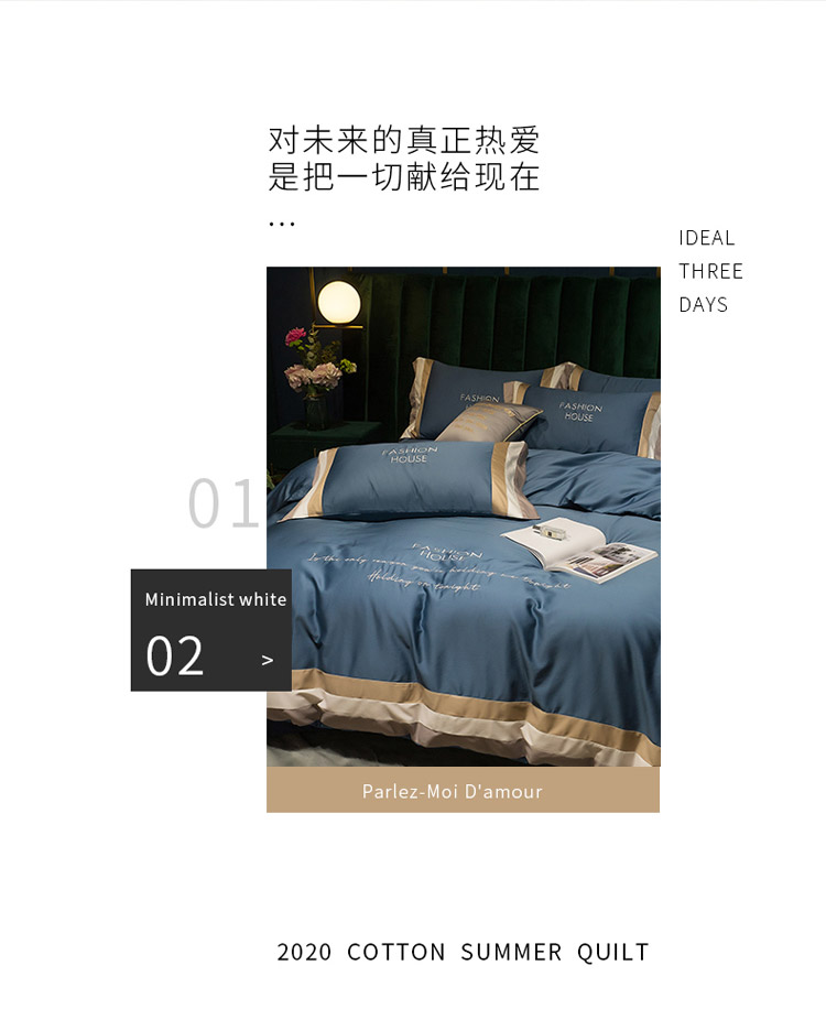 爱缦 2020新款双面60S长绒棉绣花拼接款四件套 宾利蓝