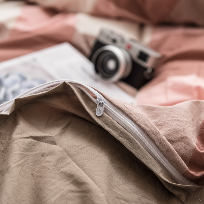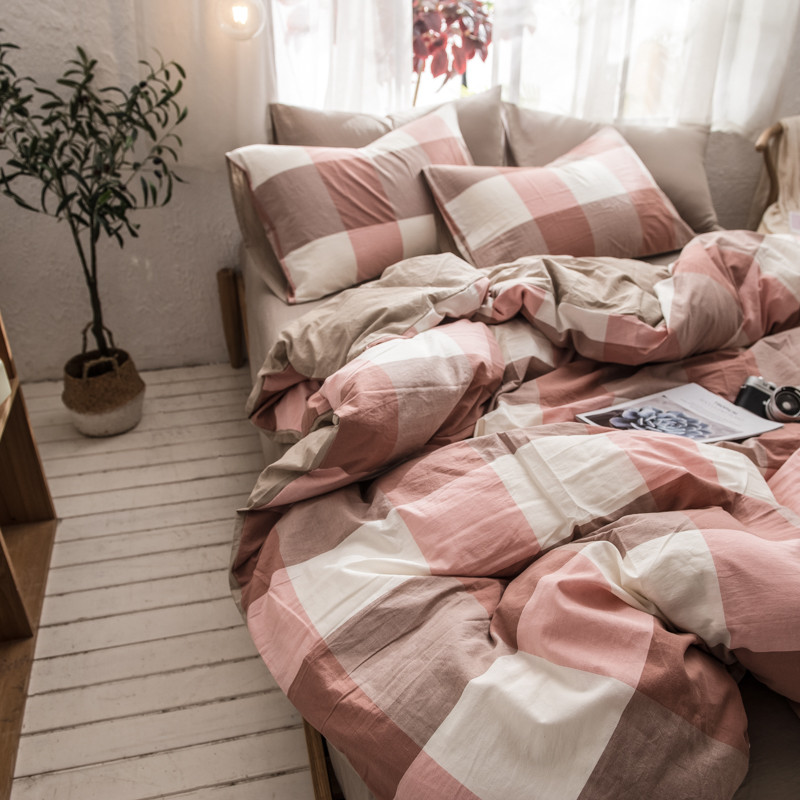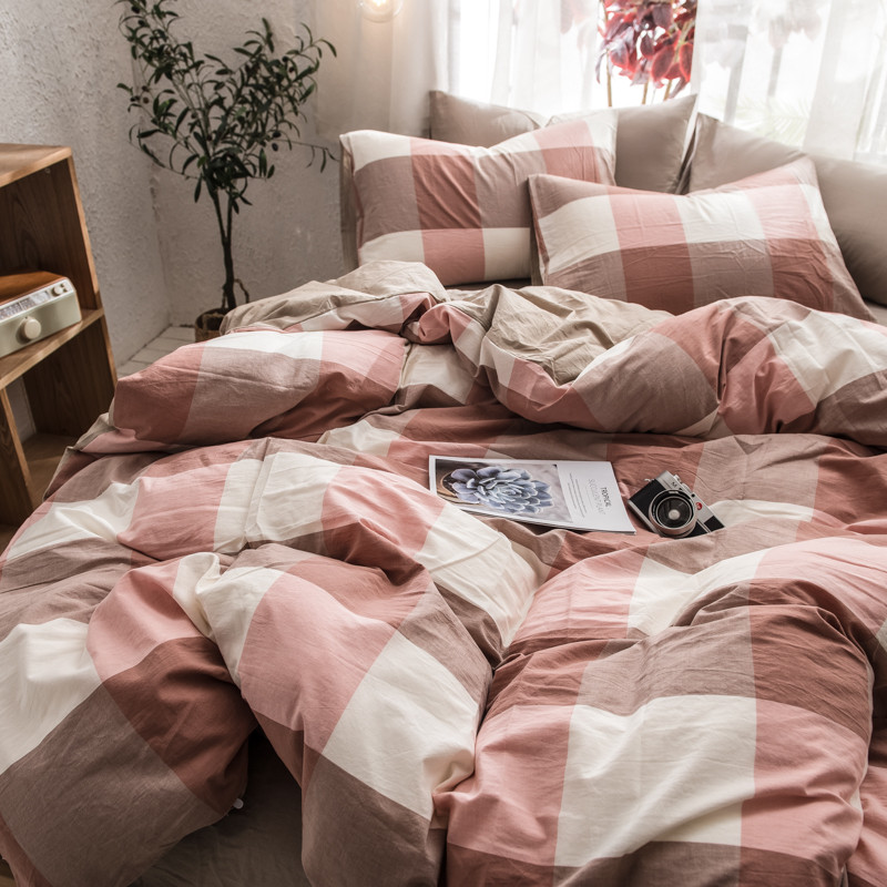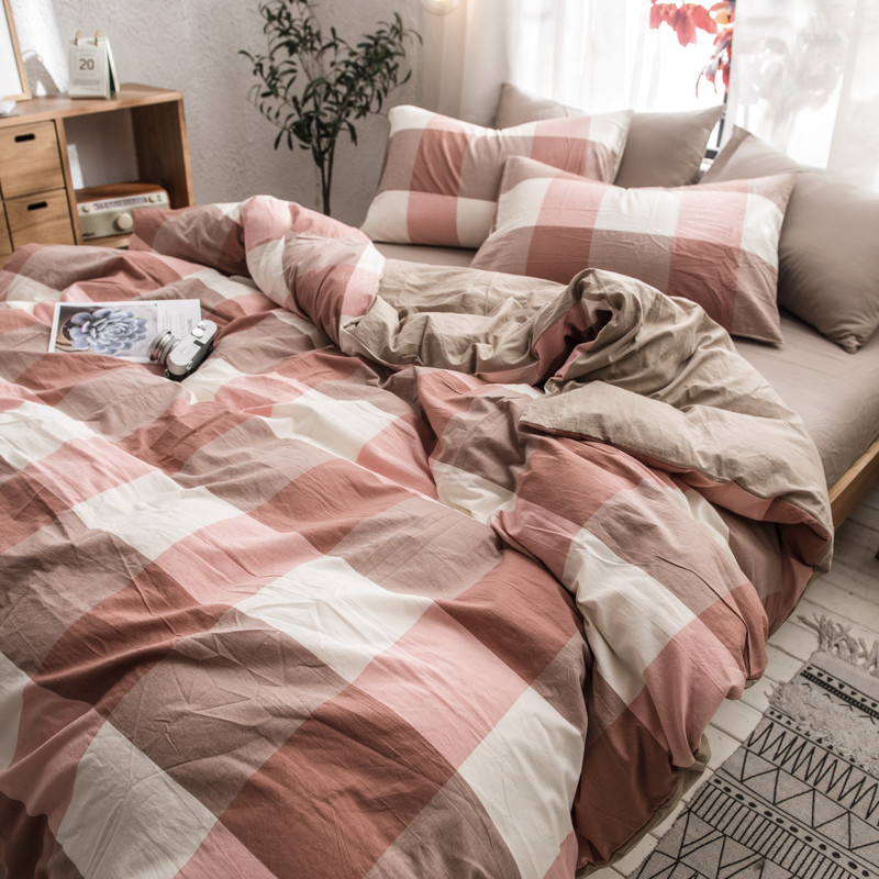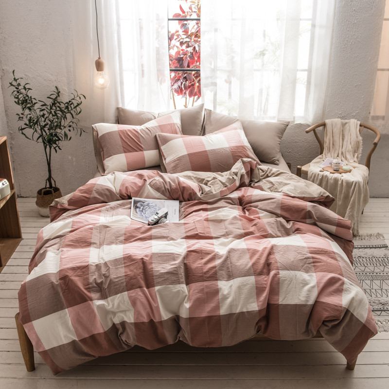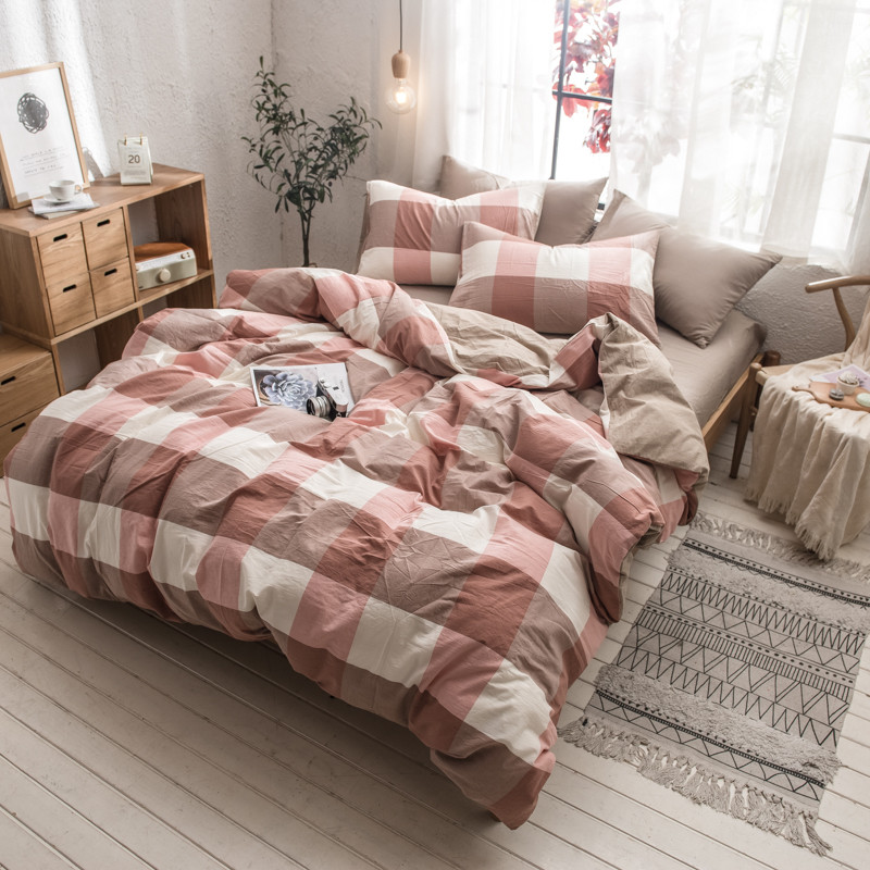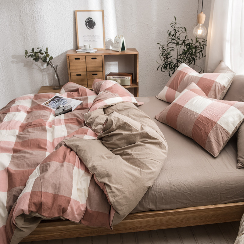 佳梦达 2020新款色织全棉水洗双拼单被套 蜜粉大格