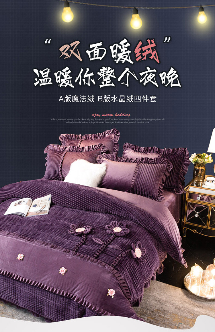 (总)兴美佳家纺 2024新款水晶绒全加棉床盖四件套-冬之恋,冬之恋-粉玉,冬之恋-豆沙,冬之恋-酒红,冬之恋-绿色,冬之恋-米黄,冬之恋-紫色,冬之恋-橘色
