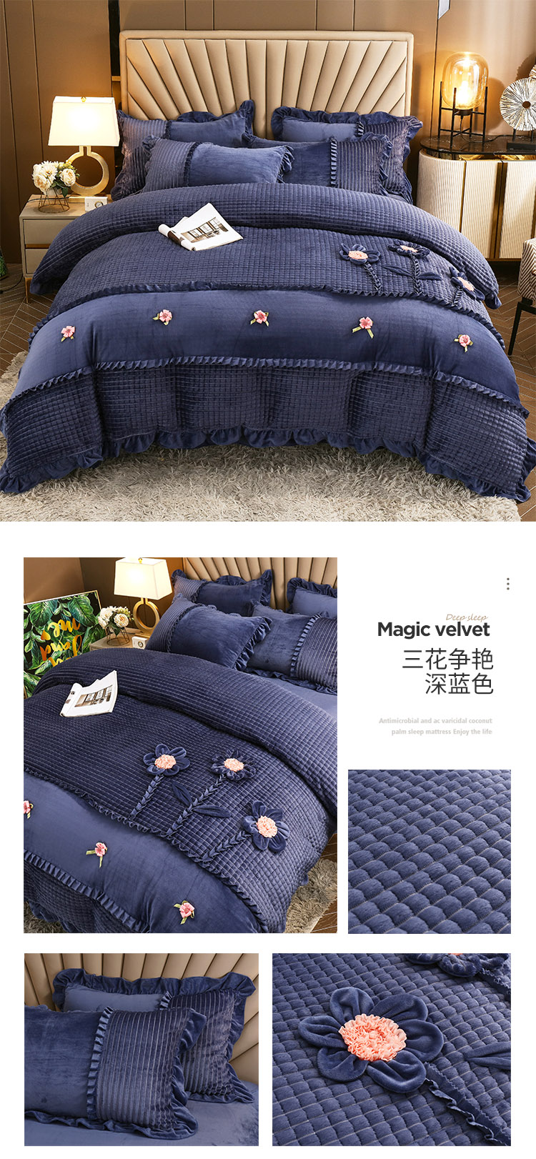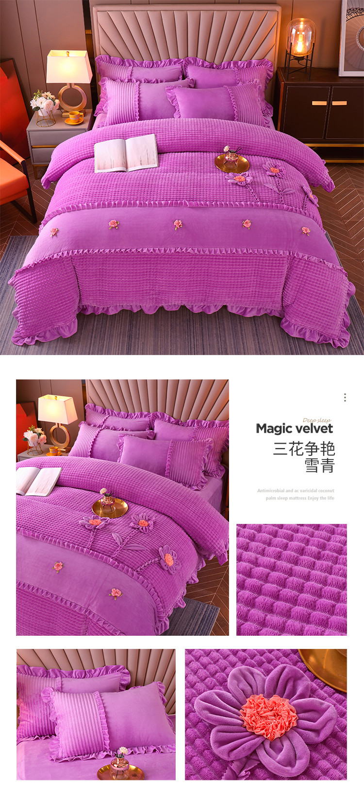 商品名称:兴美佳 魔法绒手工盘花四件套-三花争艳