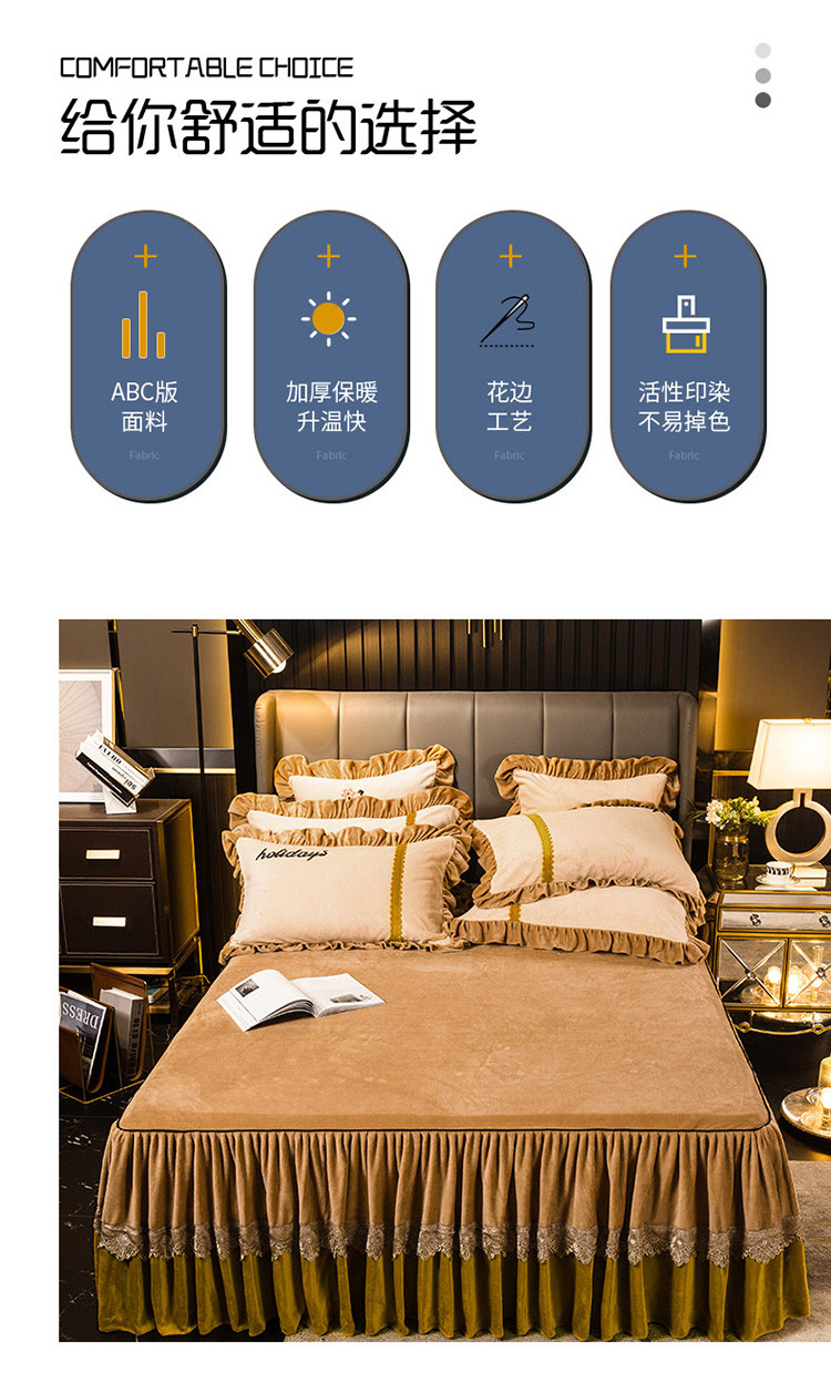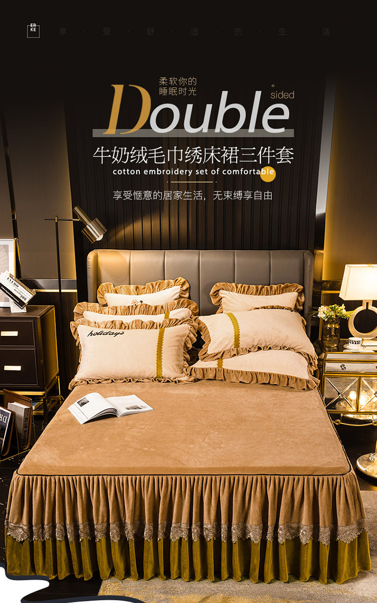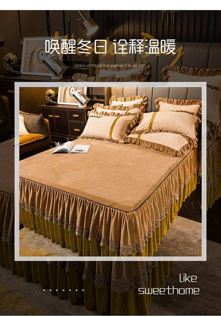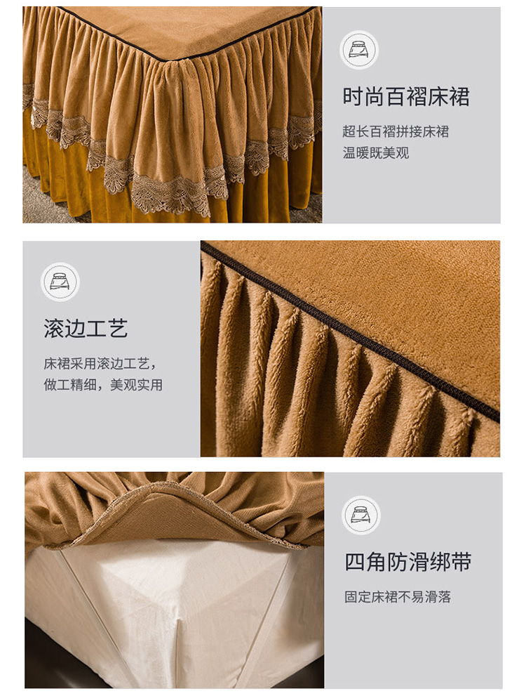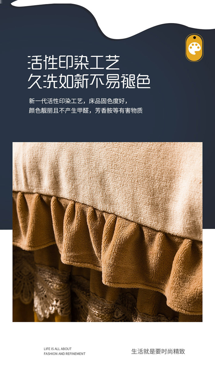 当前位置: 91家纺网 > 商品网购 > 床品套件 > 四件套 > 牛奶绒四件套 > 兴美佳 新款牛奶绒带蕾丝边床裙四件套 自由风 自由风-咖色