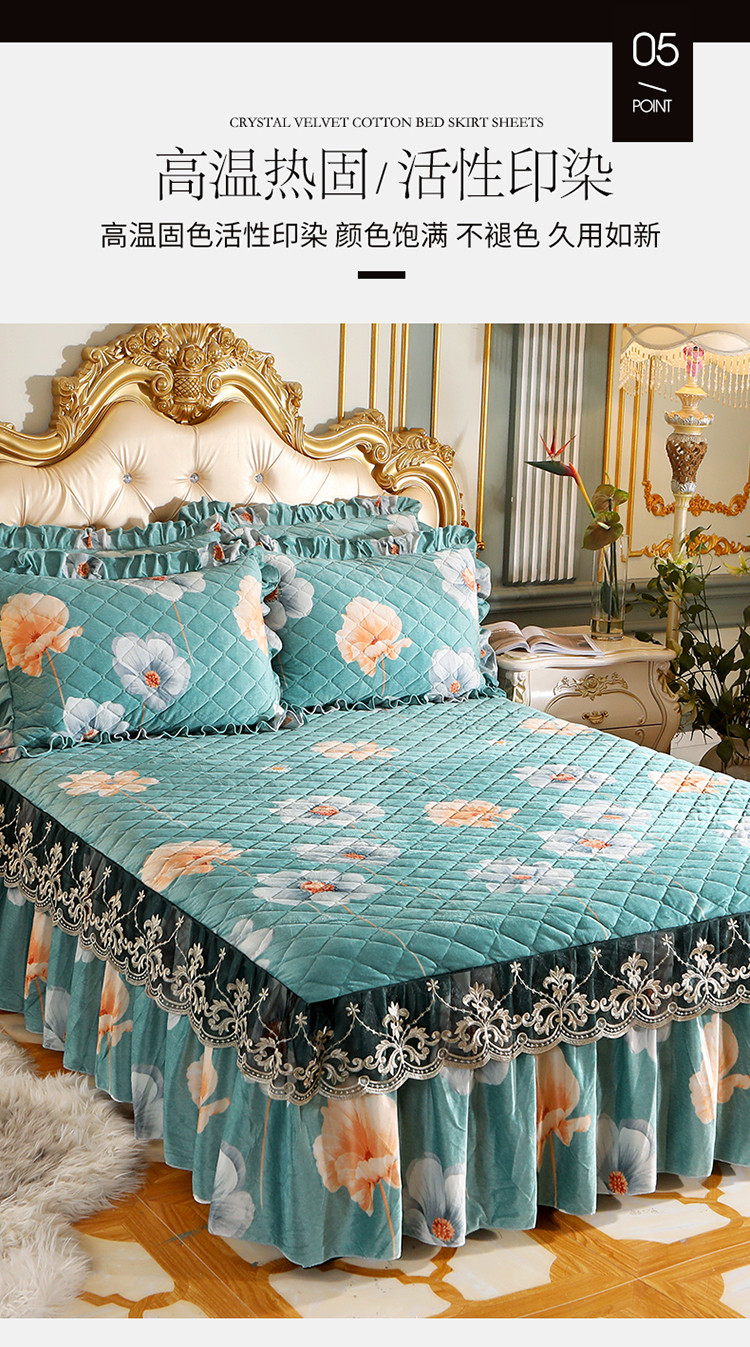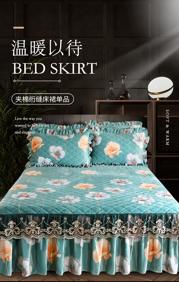 宜凡家纺 2021新款夹棉水晶绒单品床裙 情书
