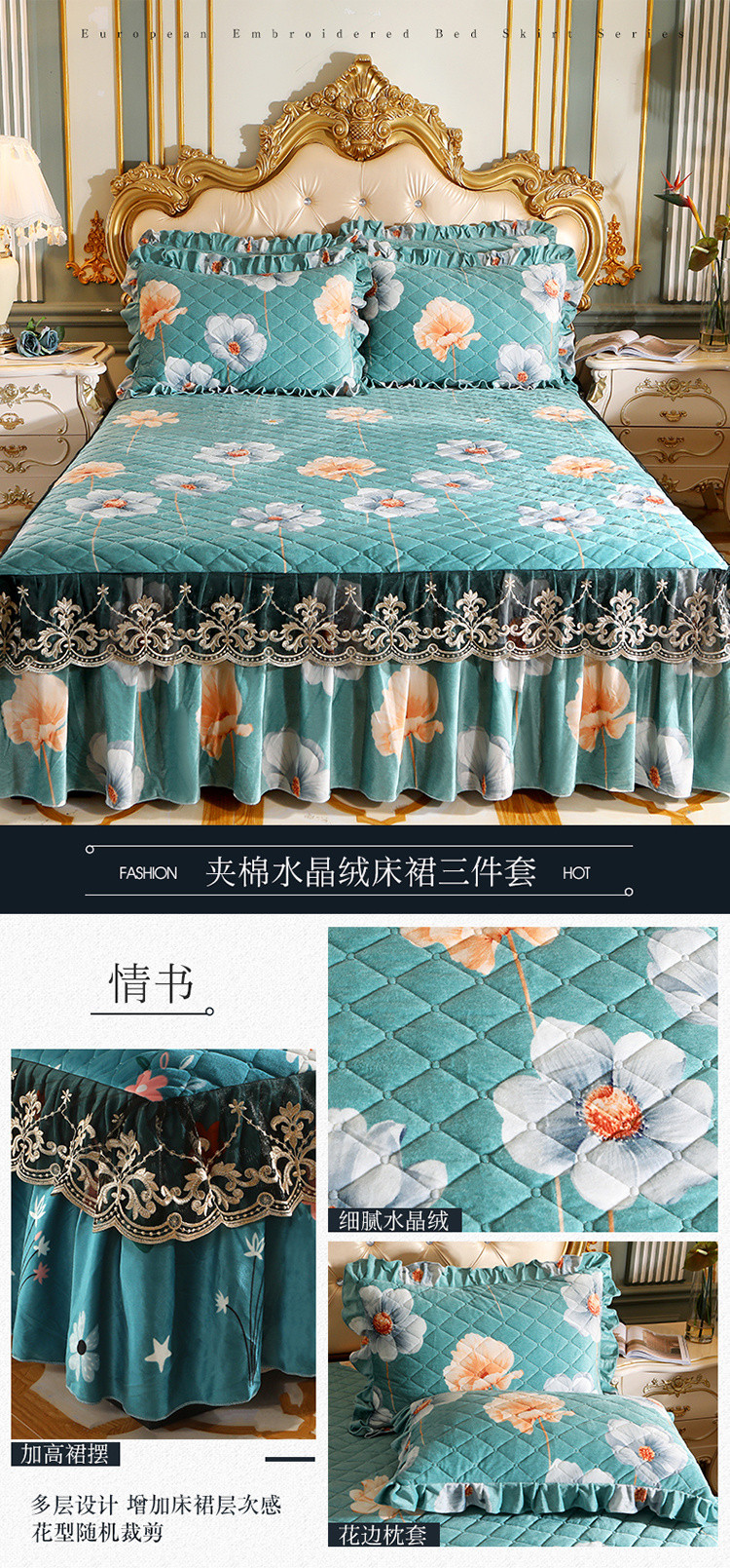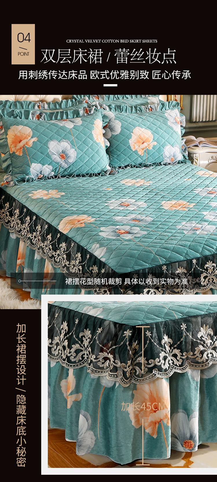 商品名称:宜凡家纺 2021新款夹棉水晶绒单品床裙 情书