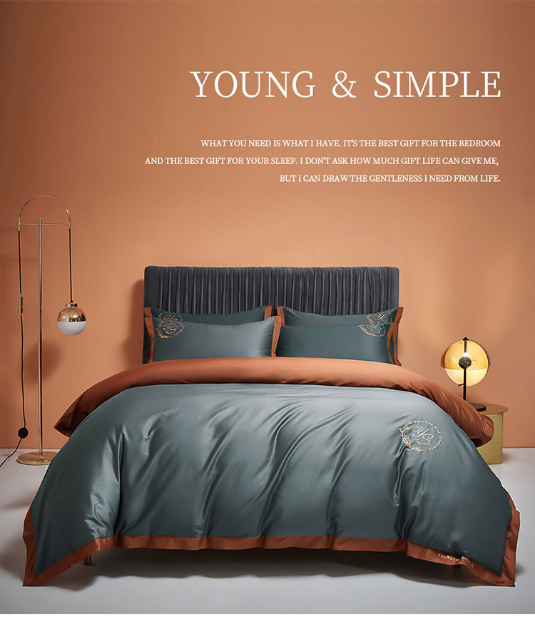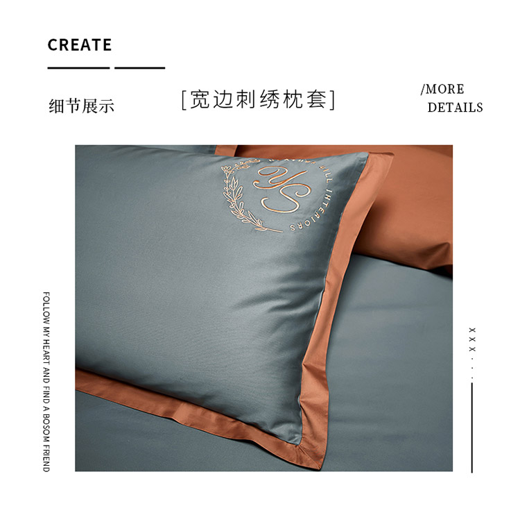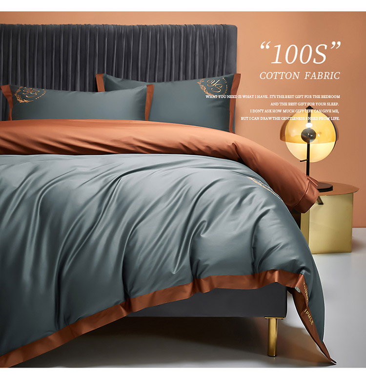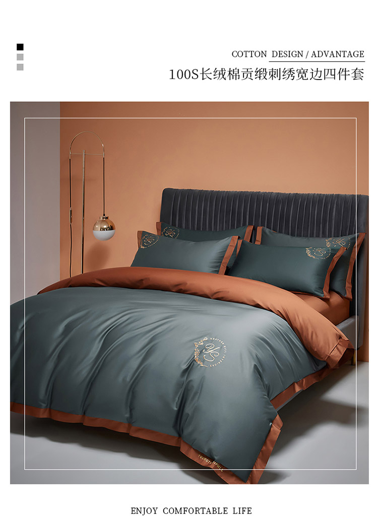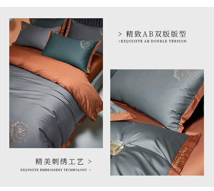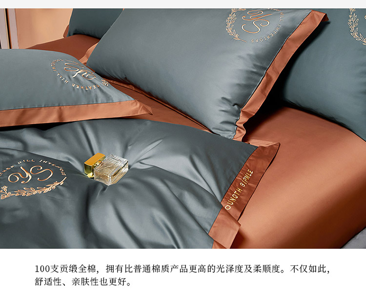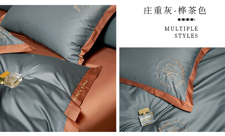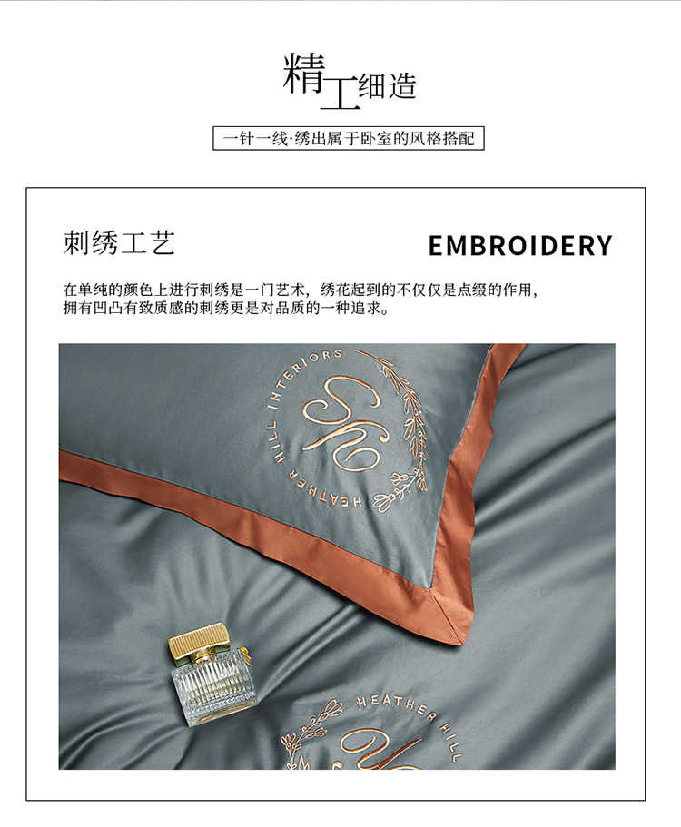 商品名称:爱缦2020澳棉100S长绒棉刺绣简四件套 庄重灰-桦茶色