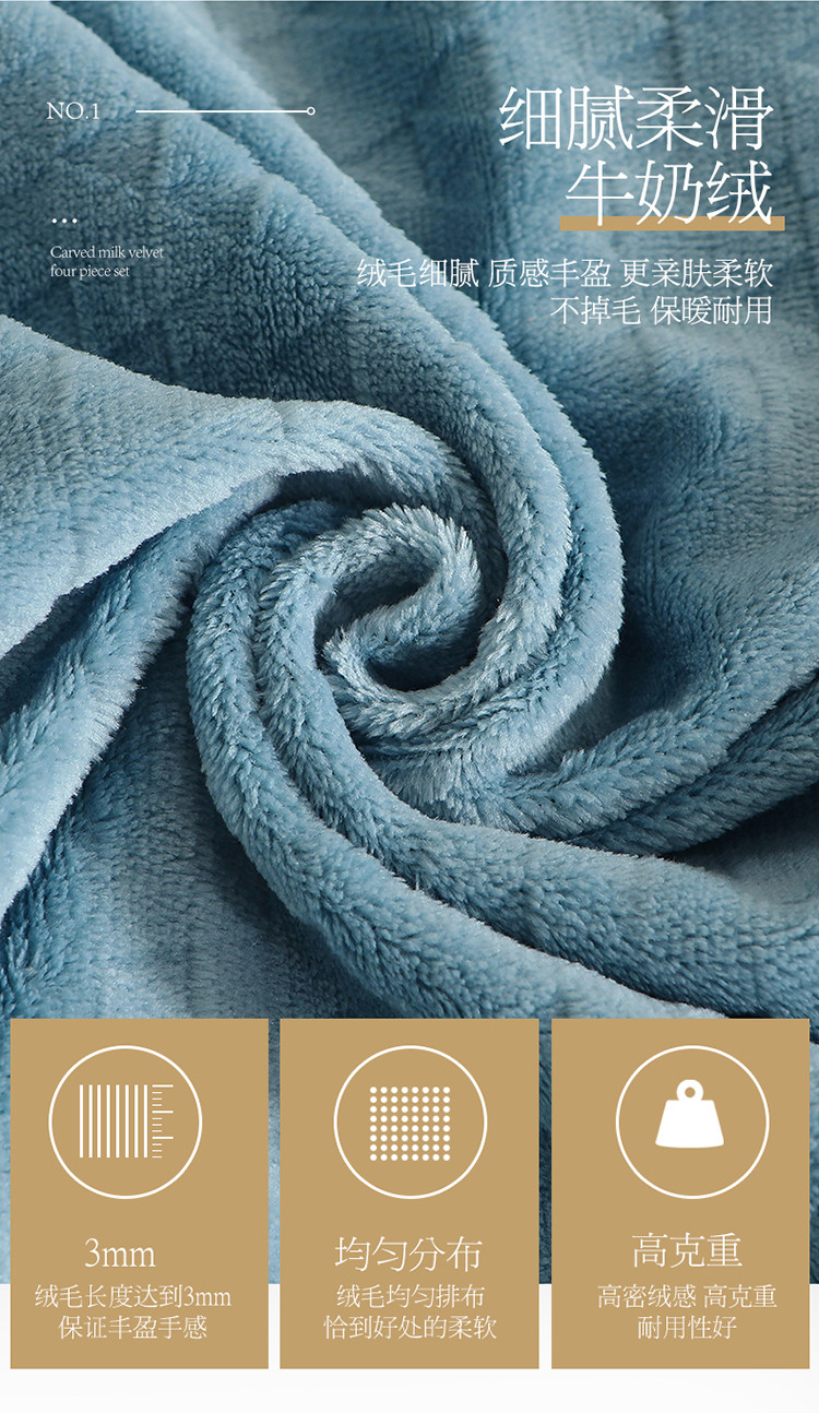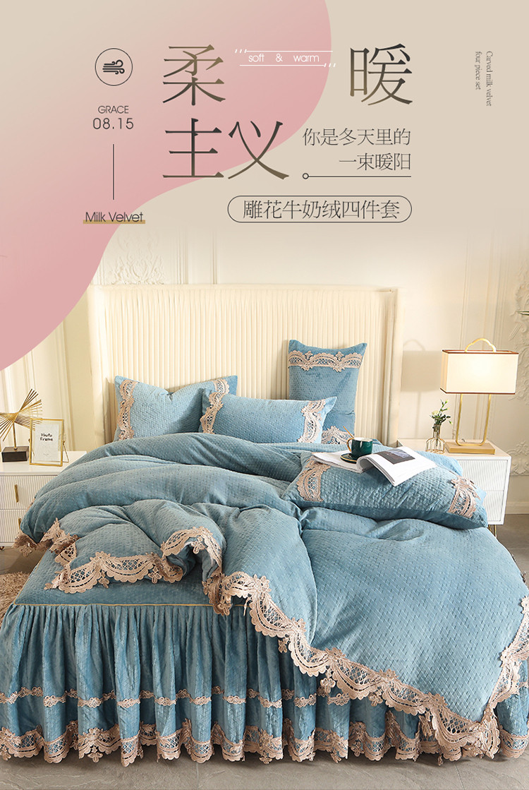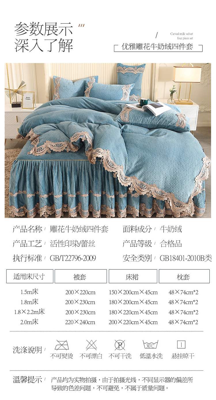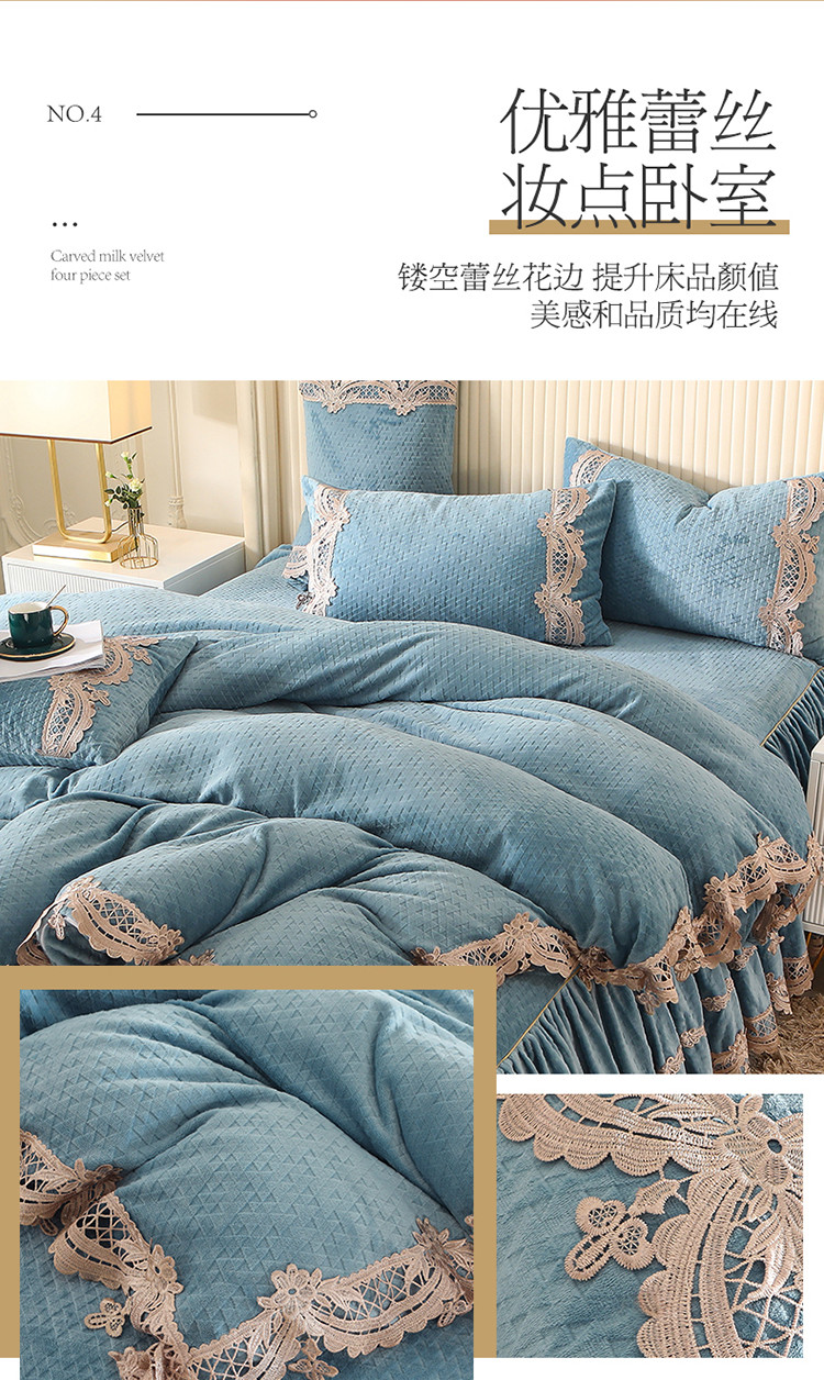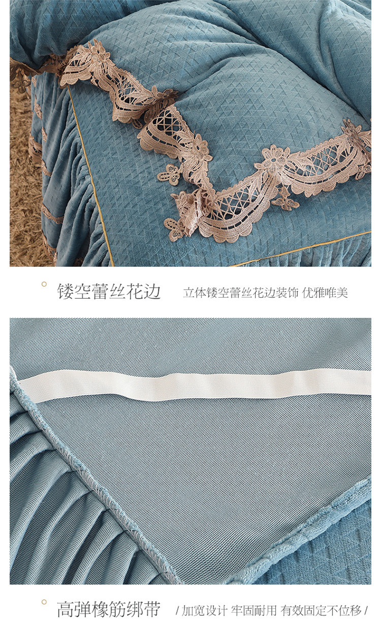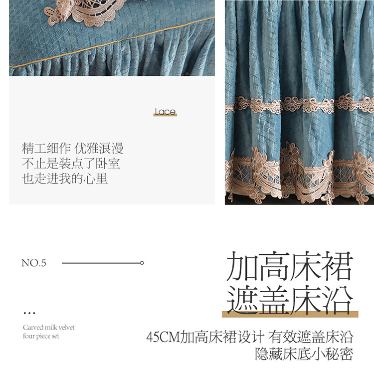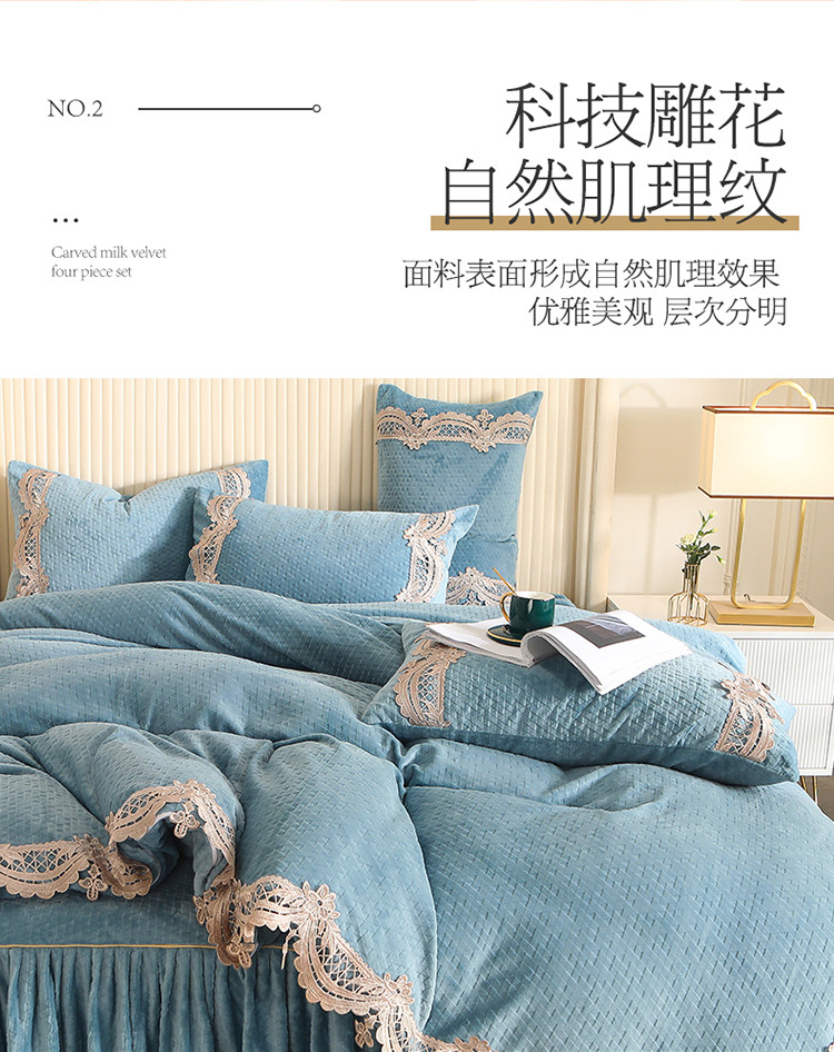 商品名称:网红馆 2025新款牛奶绒雕花床裙四件套 莫兰迪-苍兰
