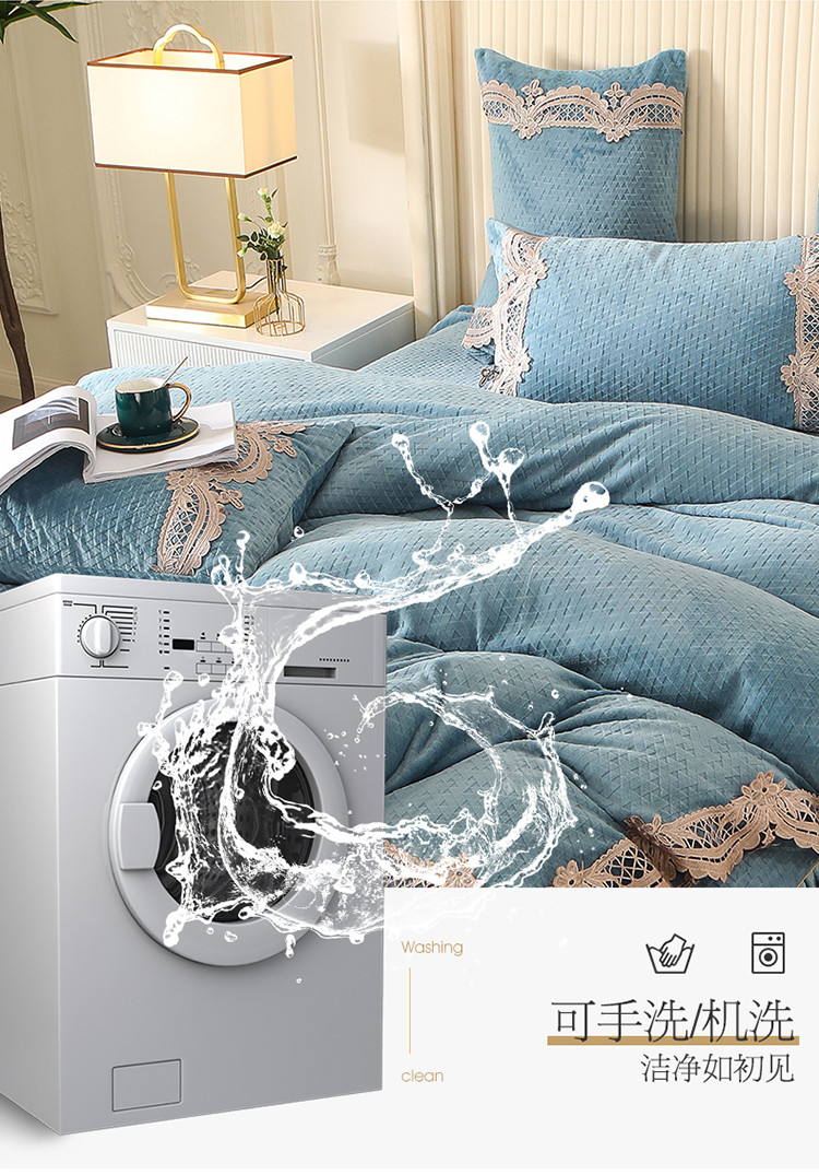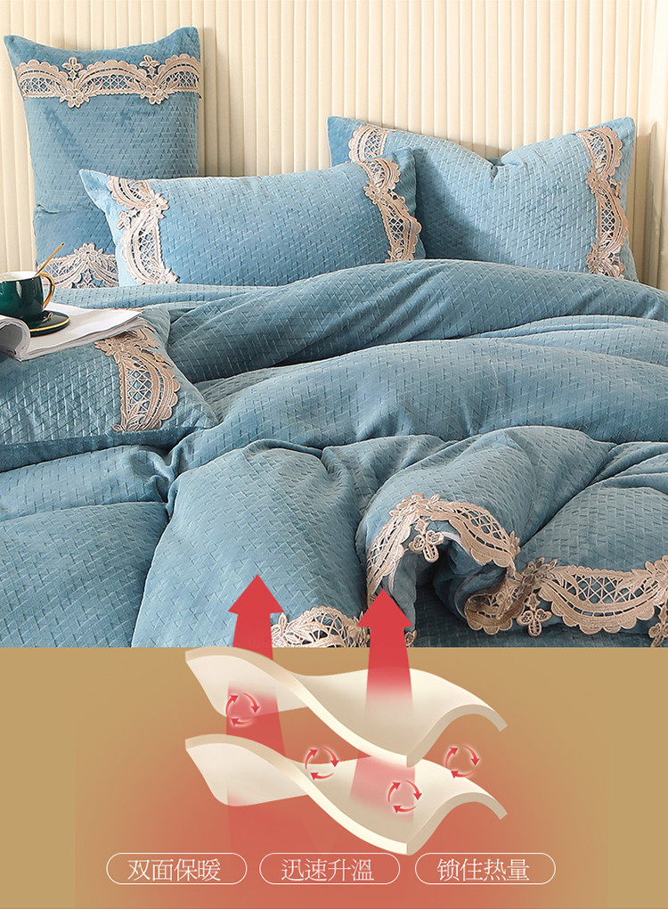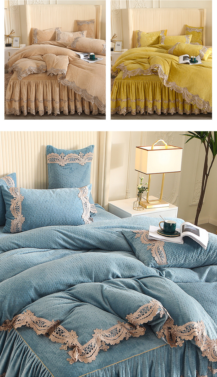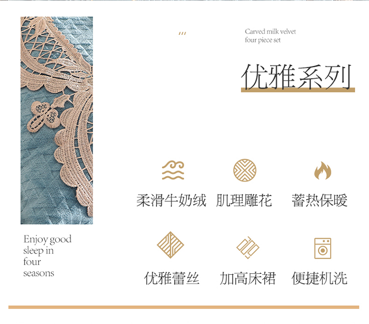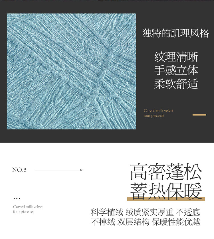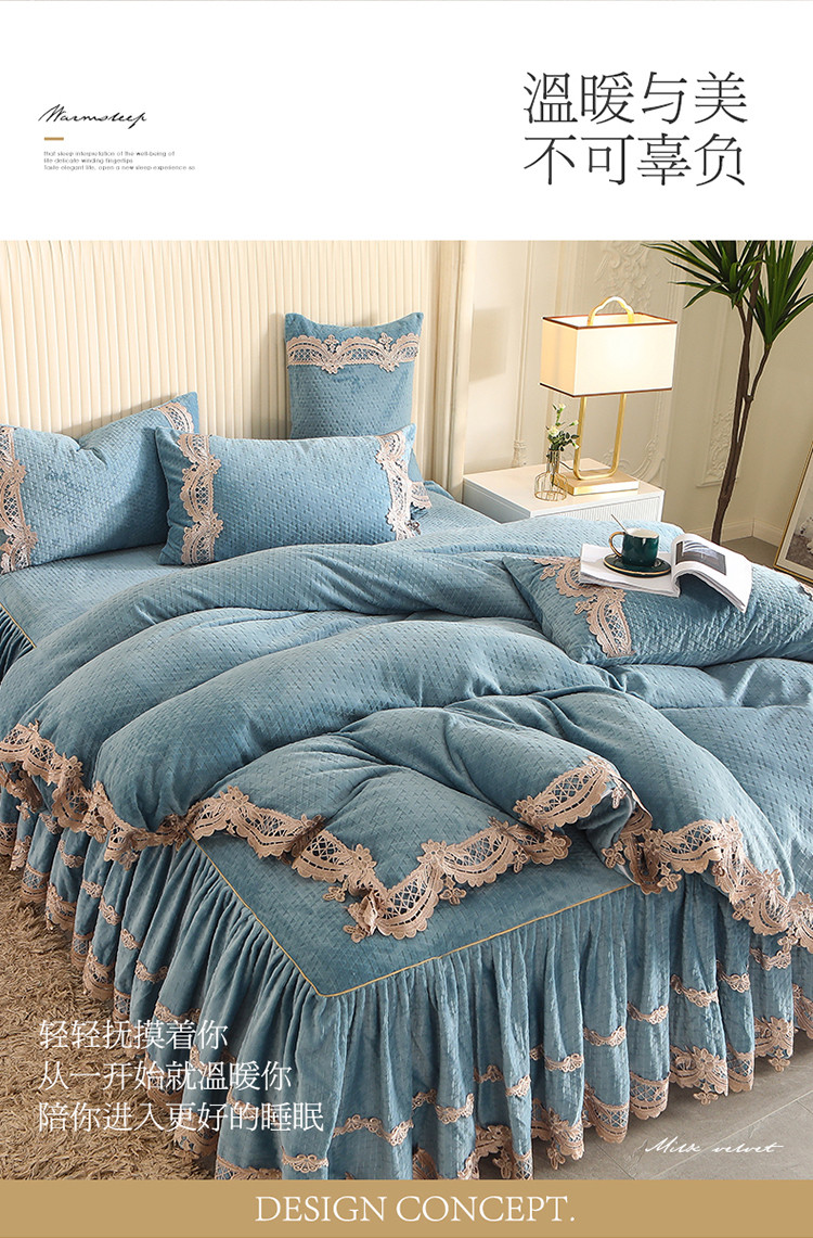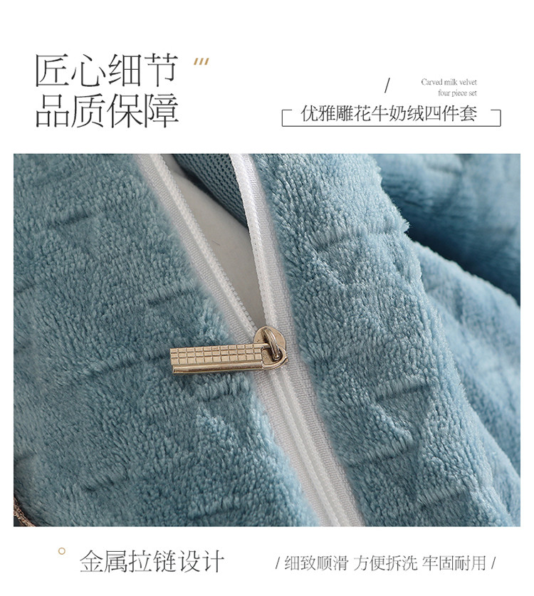 商品名称:网红馆 2025新款牛奶绒雕花床裙四件套 莫兰迪-苍兰