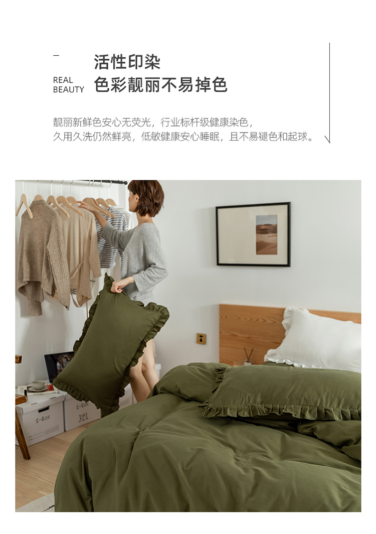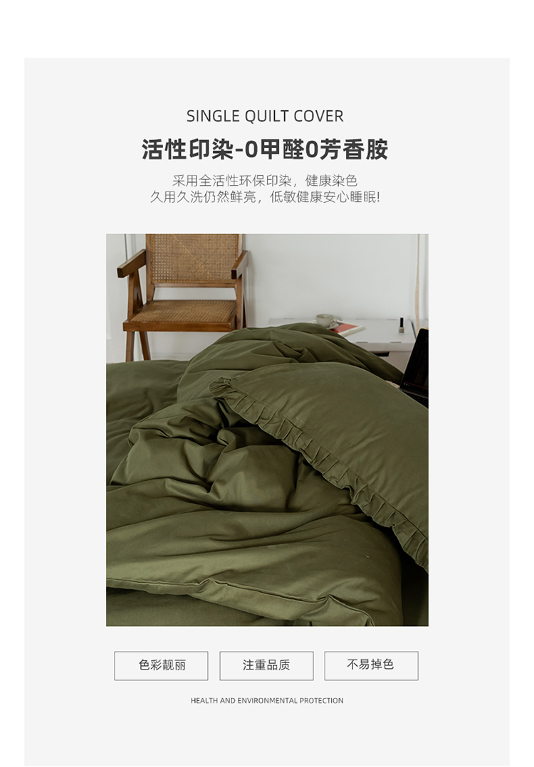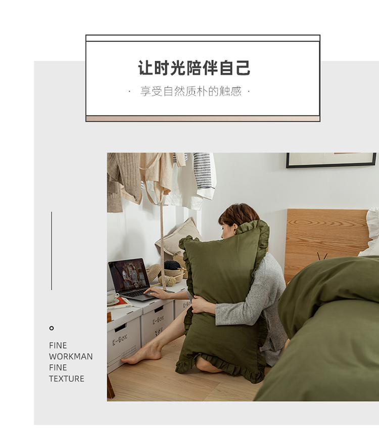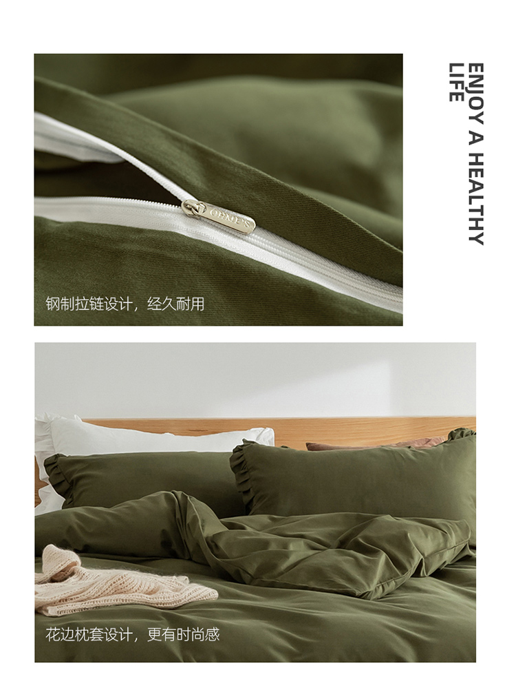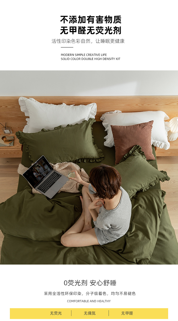 当前位置: 91家纺网 > 商品网购 > 床品套件 > 四件套 > 普通磨毛四件套 > 窝米 2020新款40s纯色磨毛四件套花边系列 墨绿